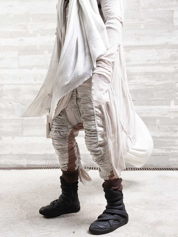 Asymmetrical Pleats Contrasting Washed Pants WN13968