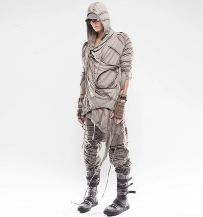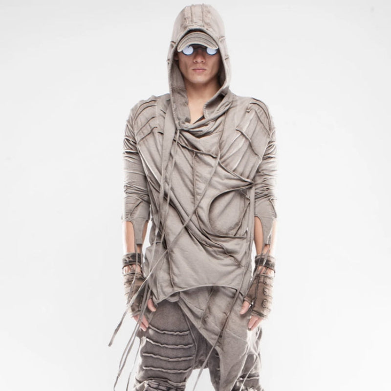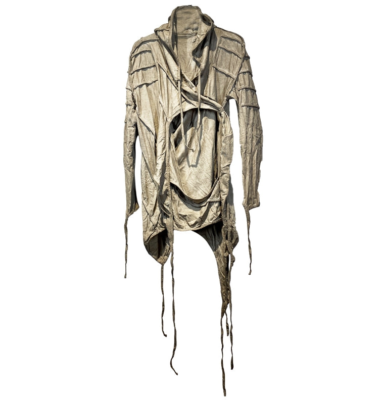 Asymmetrical Washed Hooded Drape Short Sleeve T-Shirt WN13985