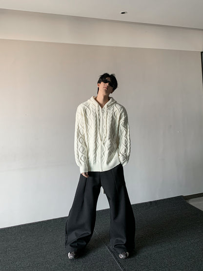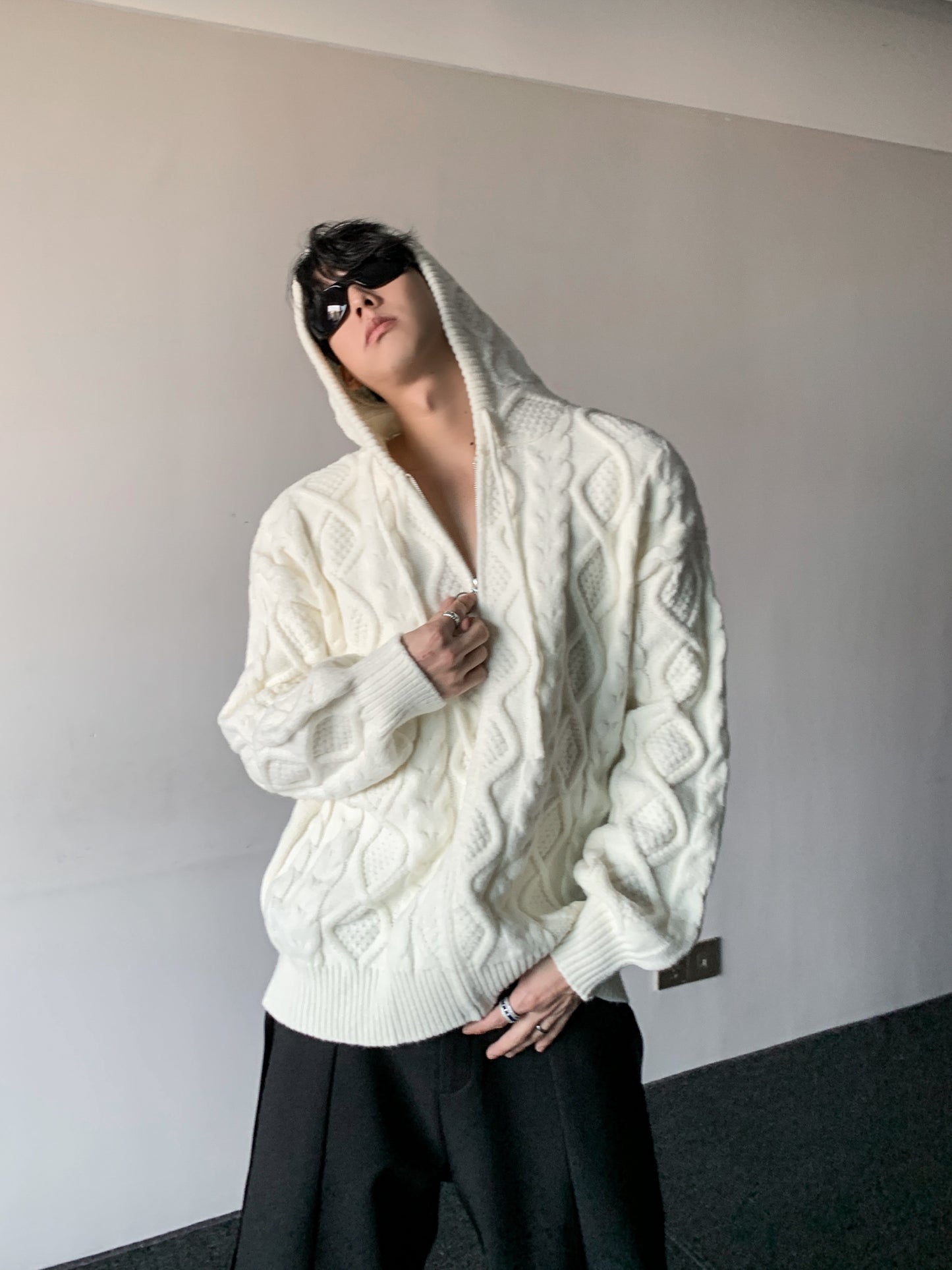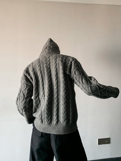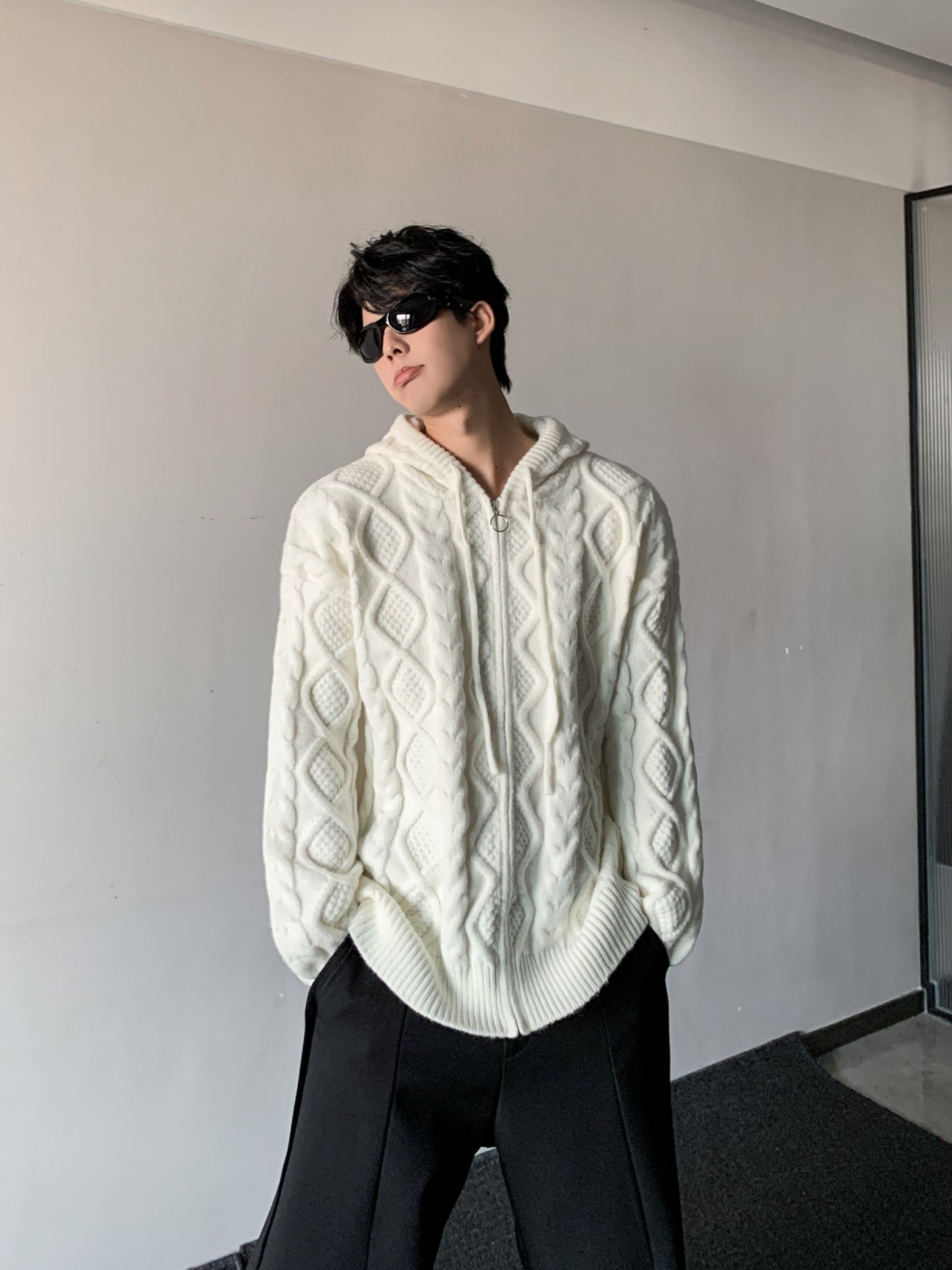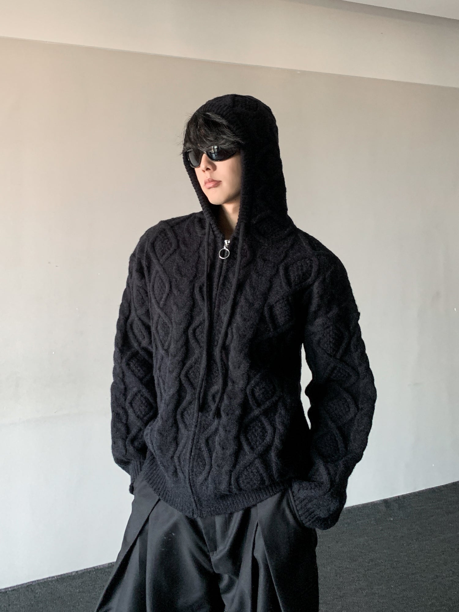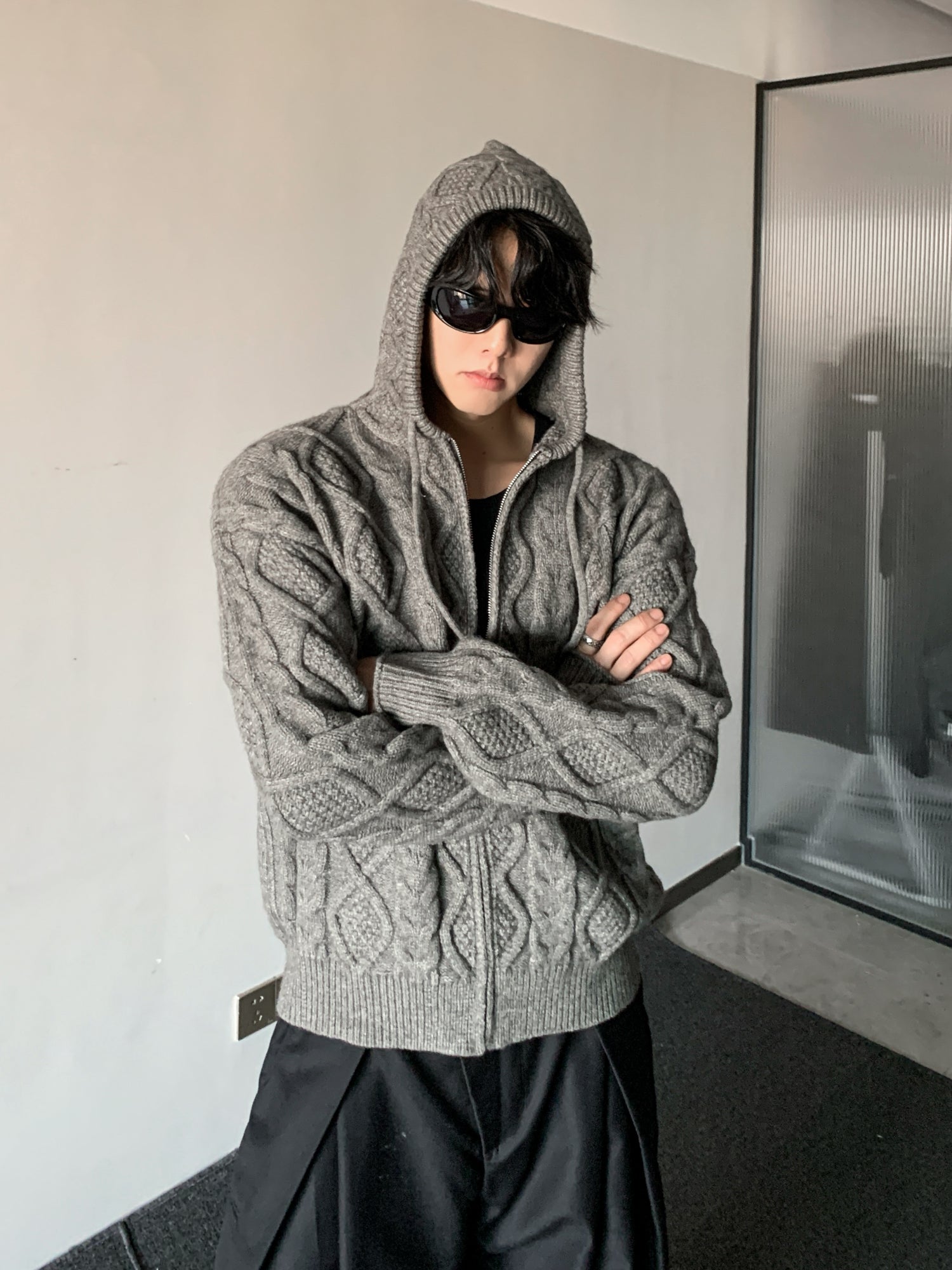Chunky Cable Design Hooded Knit Cardigan WN15375