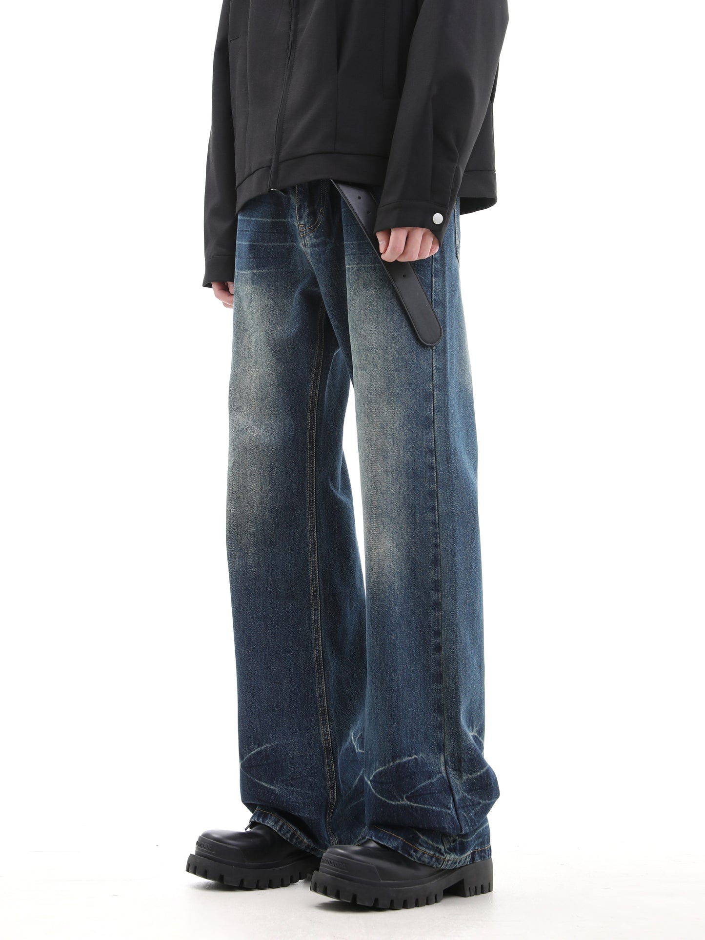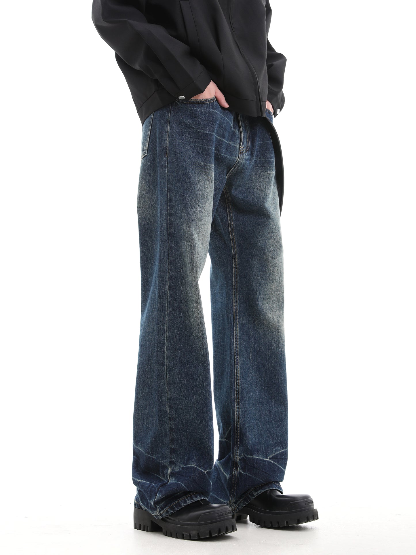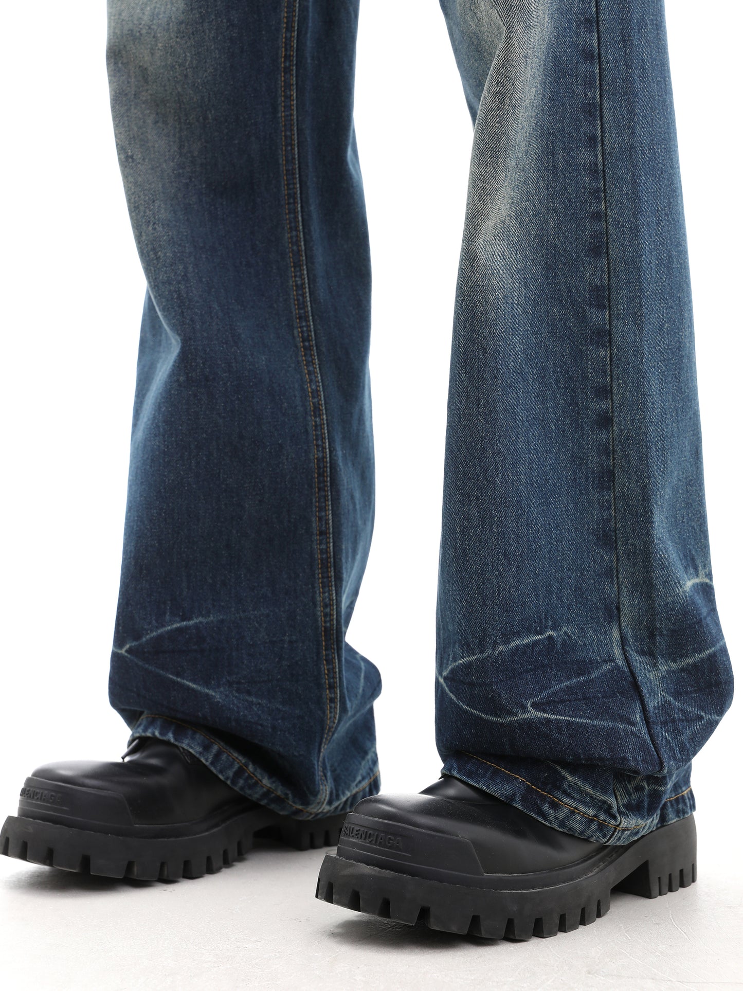 Washed Lightning Pattern Flare Denim Jeans WN15639