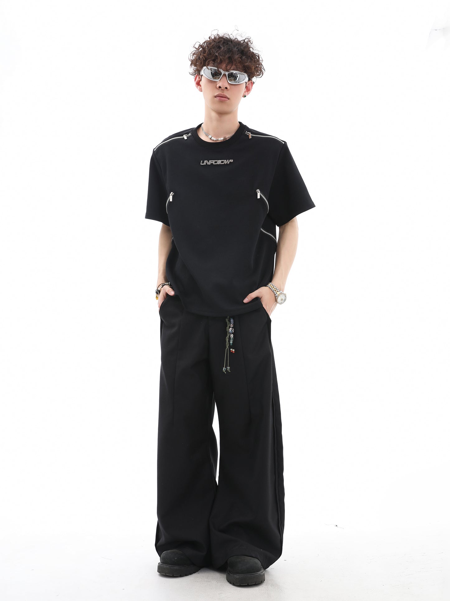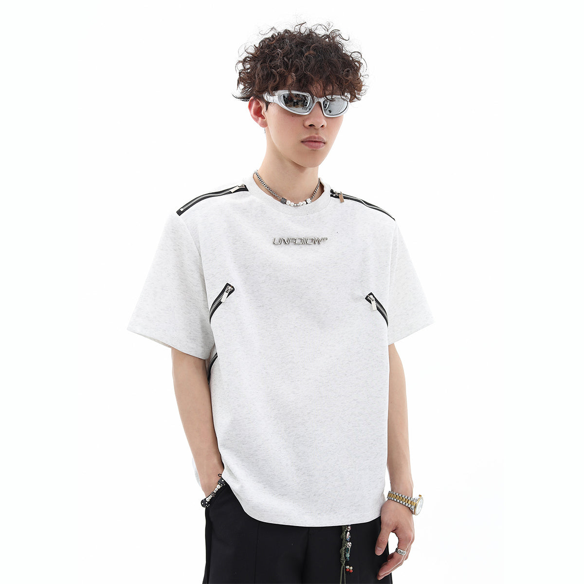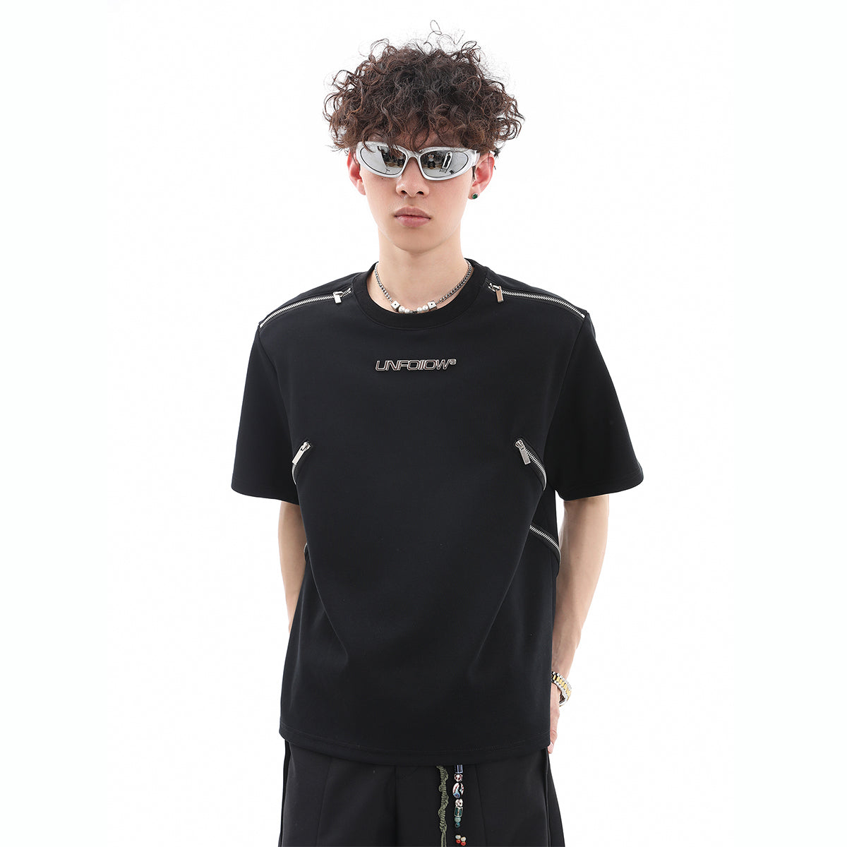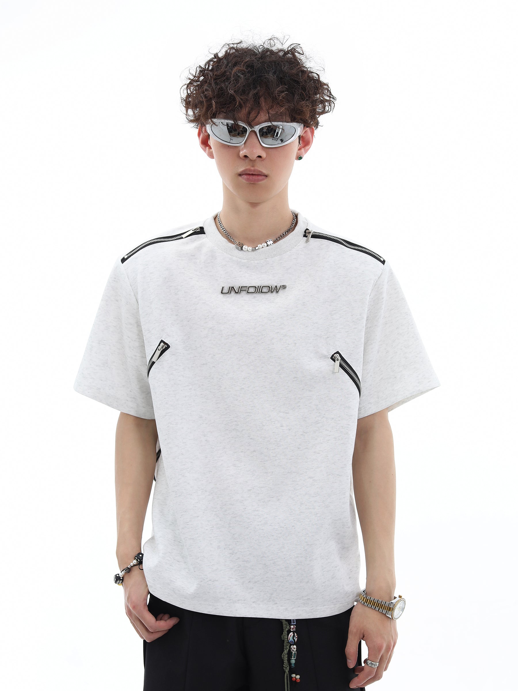Metal Logo Multi Zipper Design Short Sleeve T-Shirt WN15664