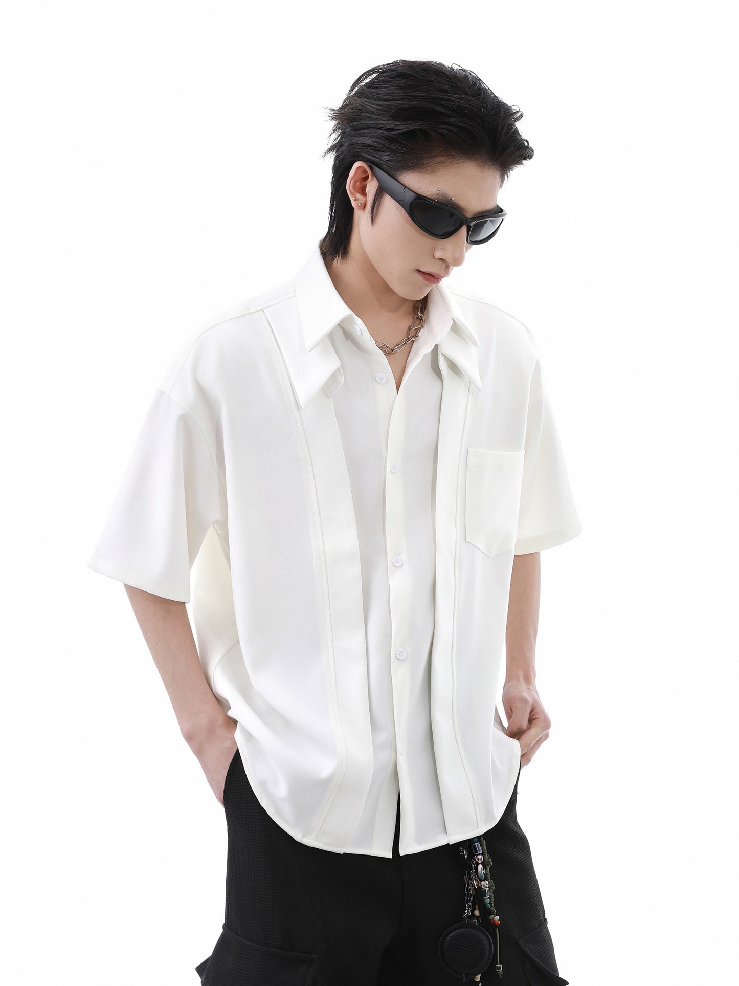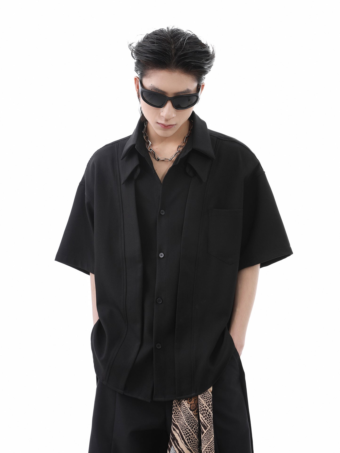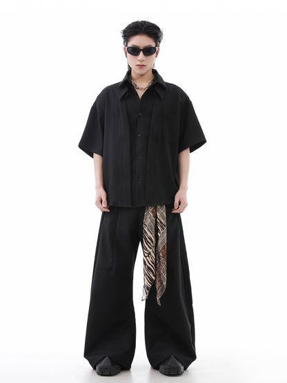 Patchwork Fake Layered Short Sleeve Shirt WN15677
