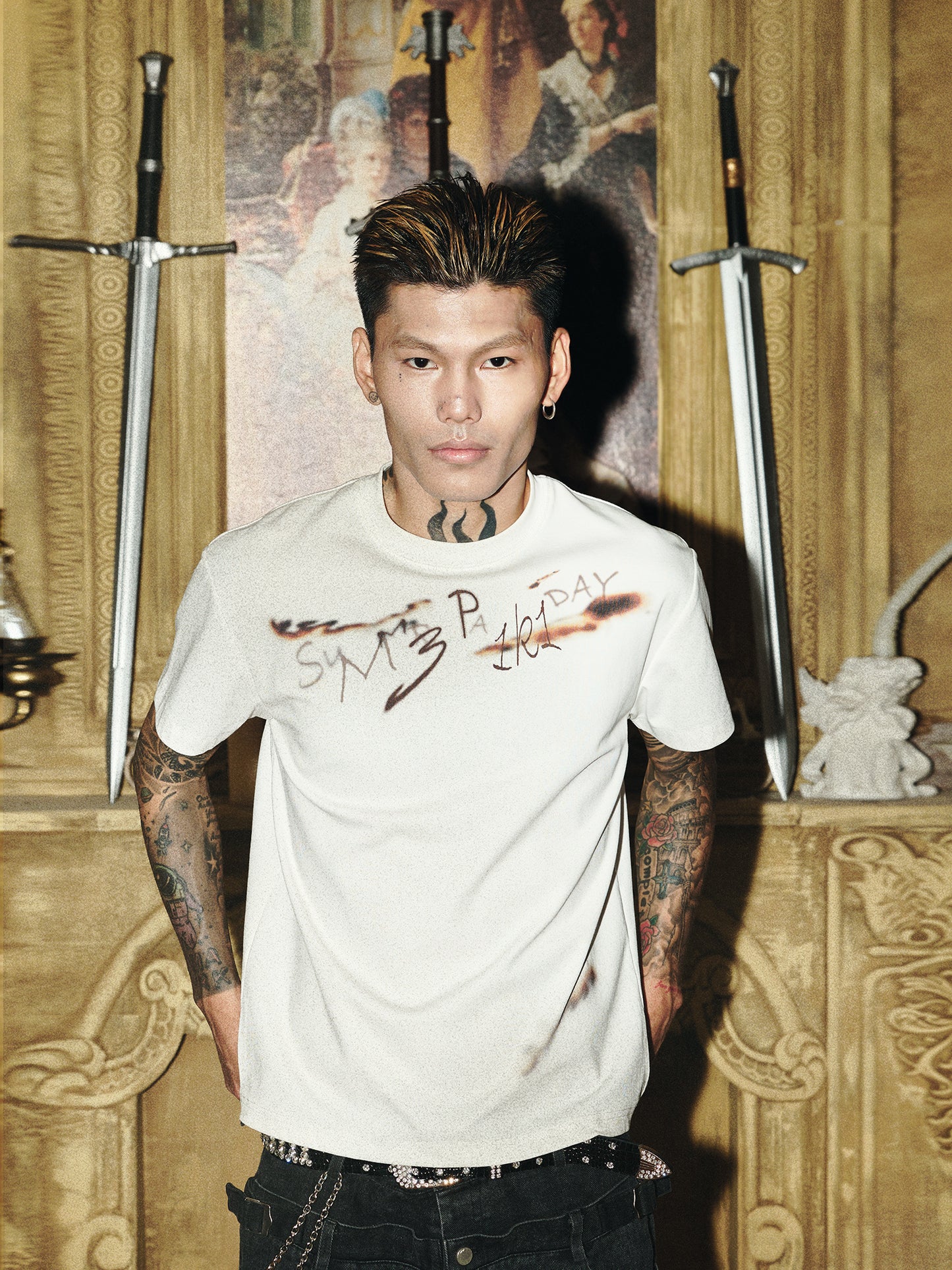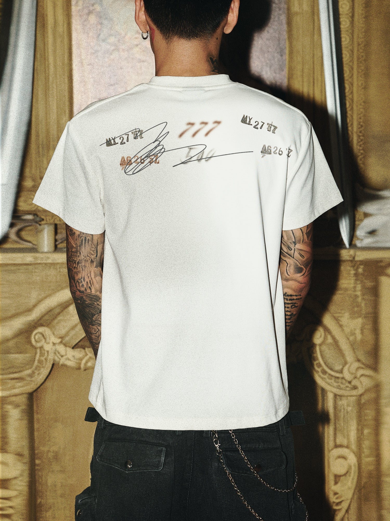Wash Damage Graphic Design Short Sleeve T-Shirt WN15842