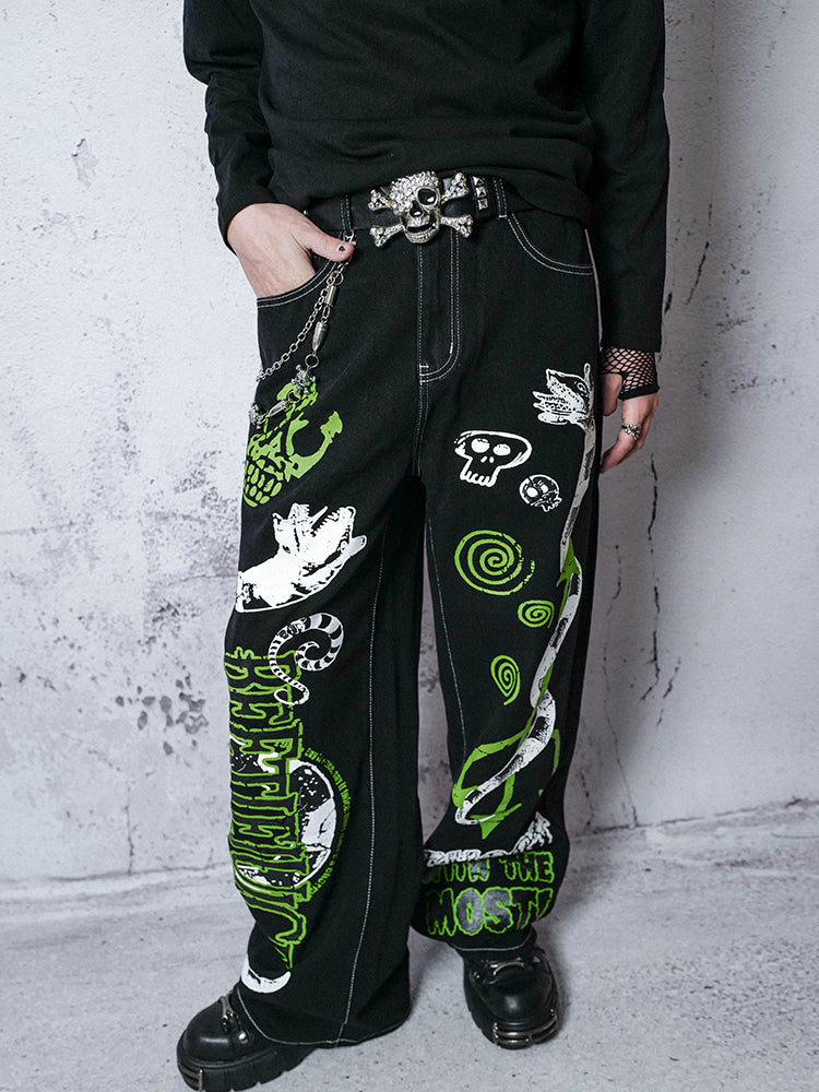 Graphic Design Wide-Leg Denim Jeans WN15876