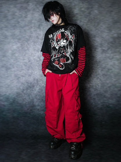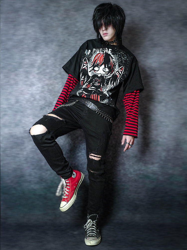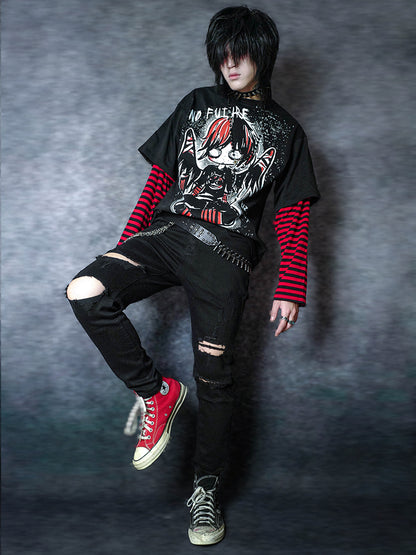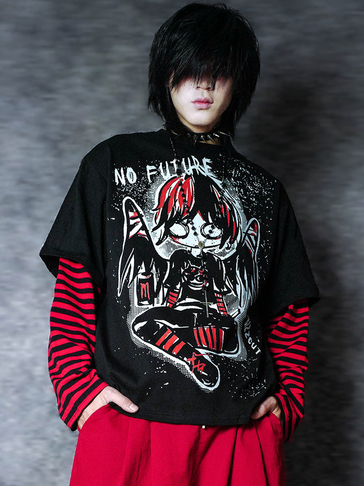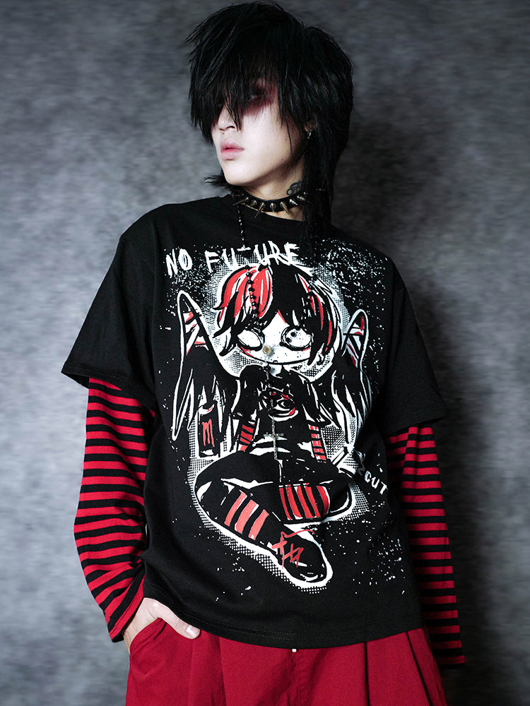 Graphic Print Oversize Fake Layered Long Sleeve T-Shirt WN15895