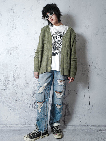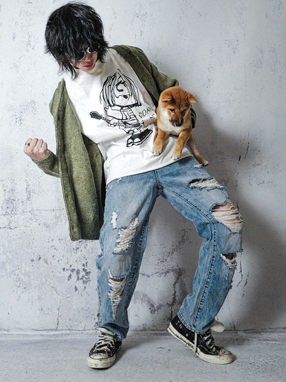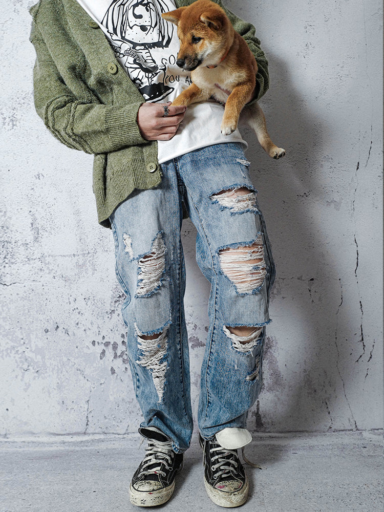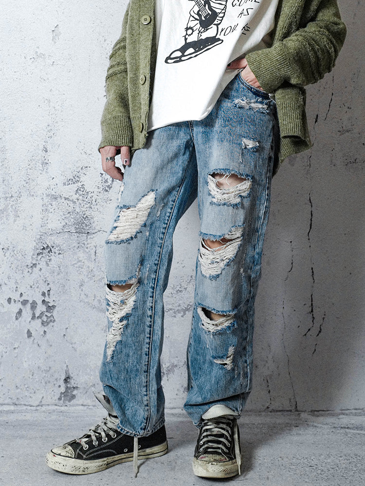 Straight Damage Denim Jeans WN15953
