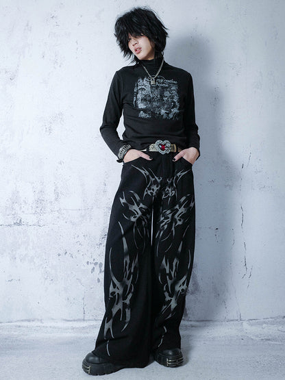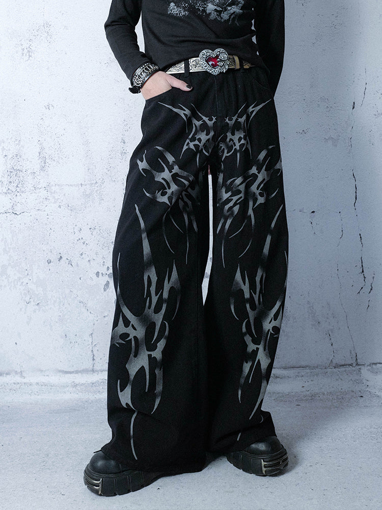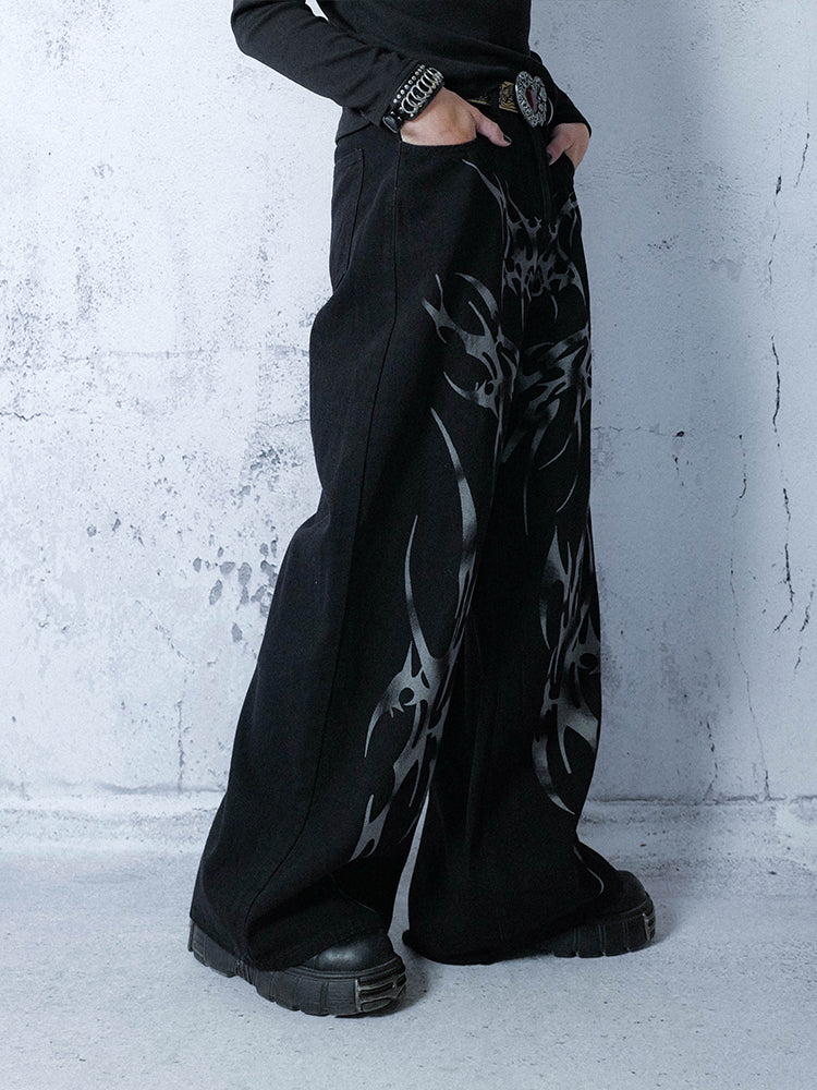 Draping Feel Graphic Design Wide Leg Denim Jeans WN15987