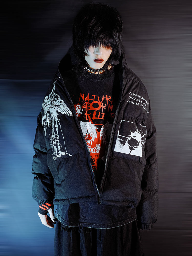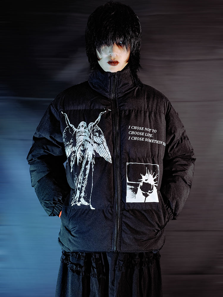 Graphic Design Stand-Neck Puffer Jacket WN15990