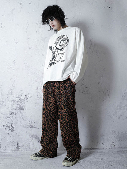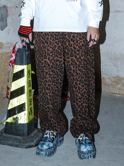 Leopard Elastic Waist Wide Leg Pants WN15991