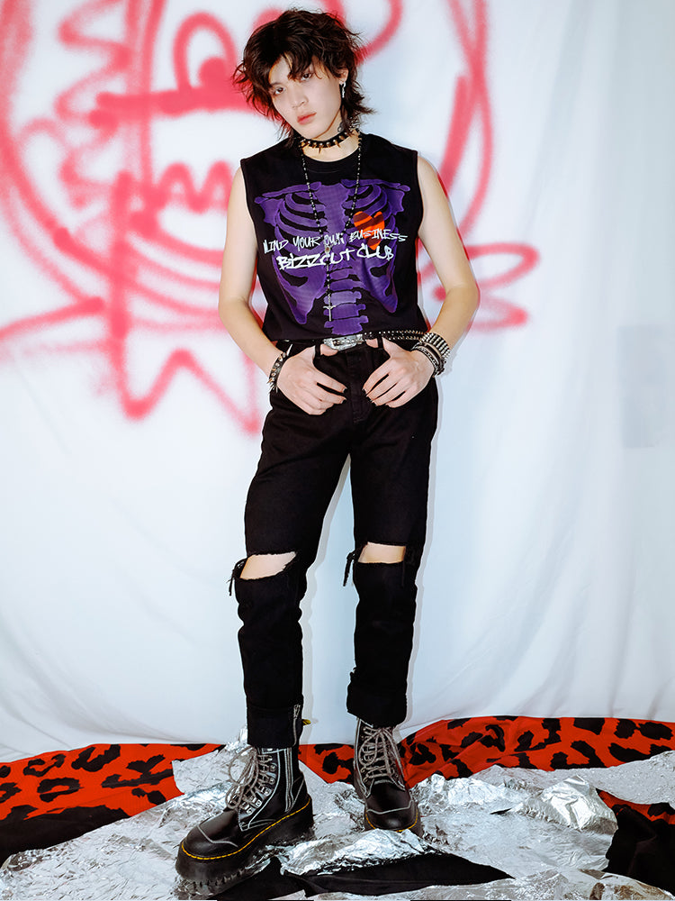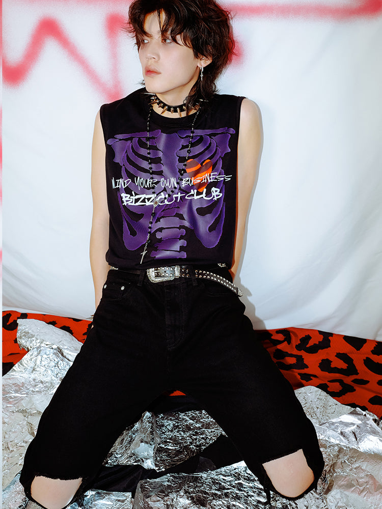 Skull Print Sleeveless T-Shirt WN16004