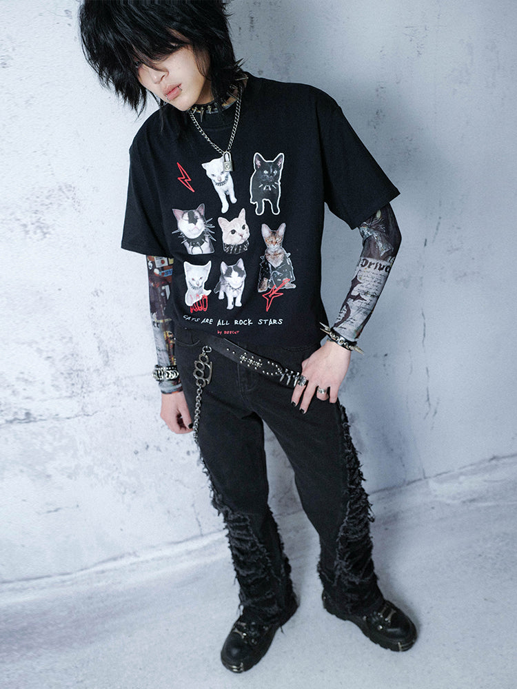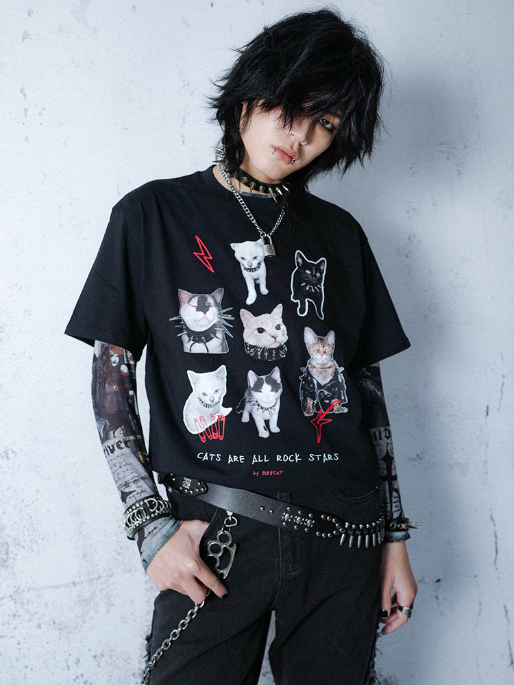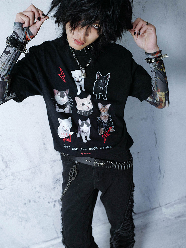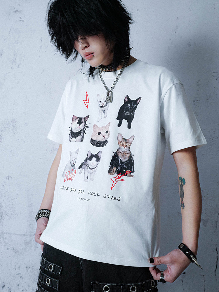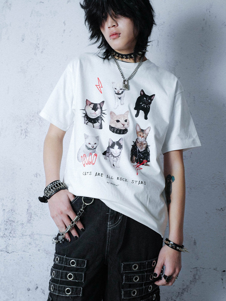 Graphic Cat Print Oversize Short Sleeve T-Shirt WN16080