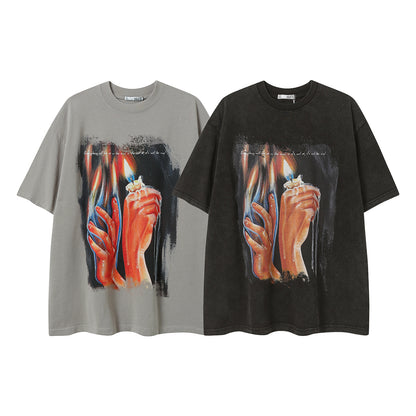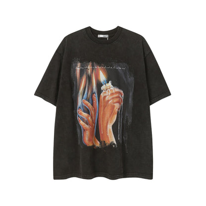 Oil Paint Washed Oversize Short Sleeve T-Shirt WN16129