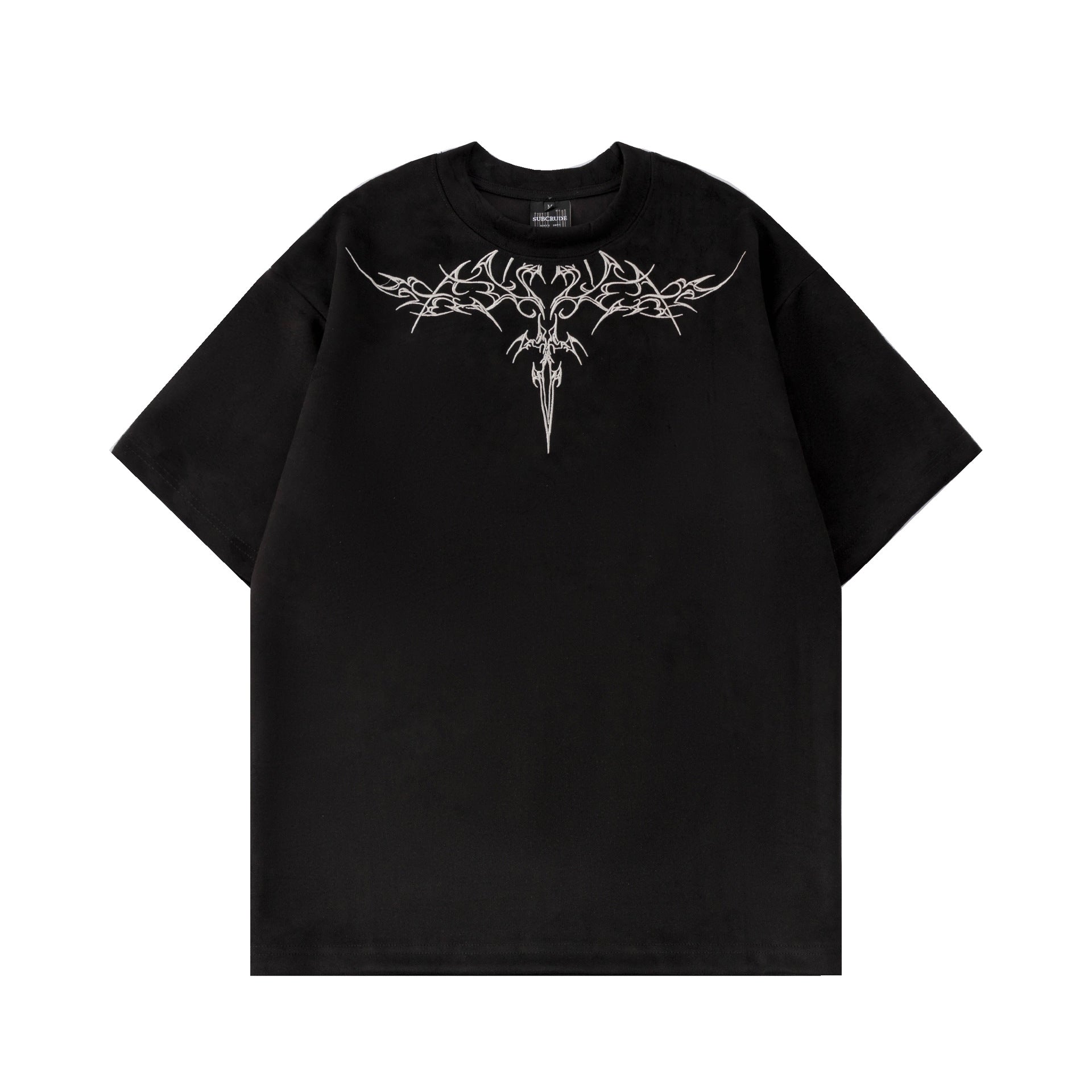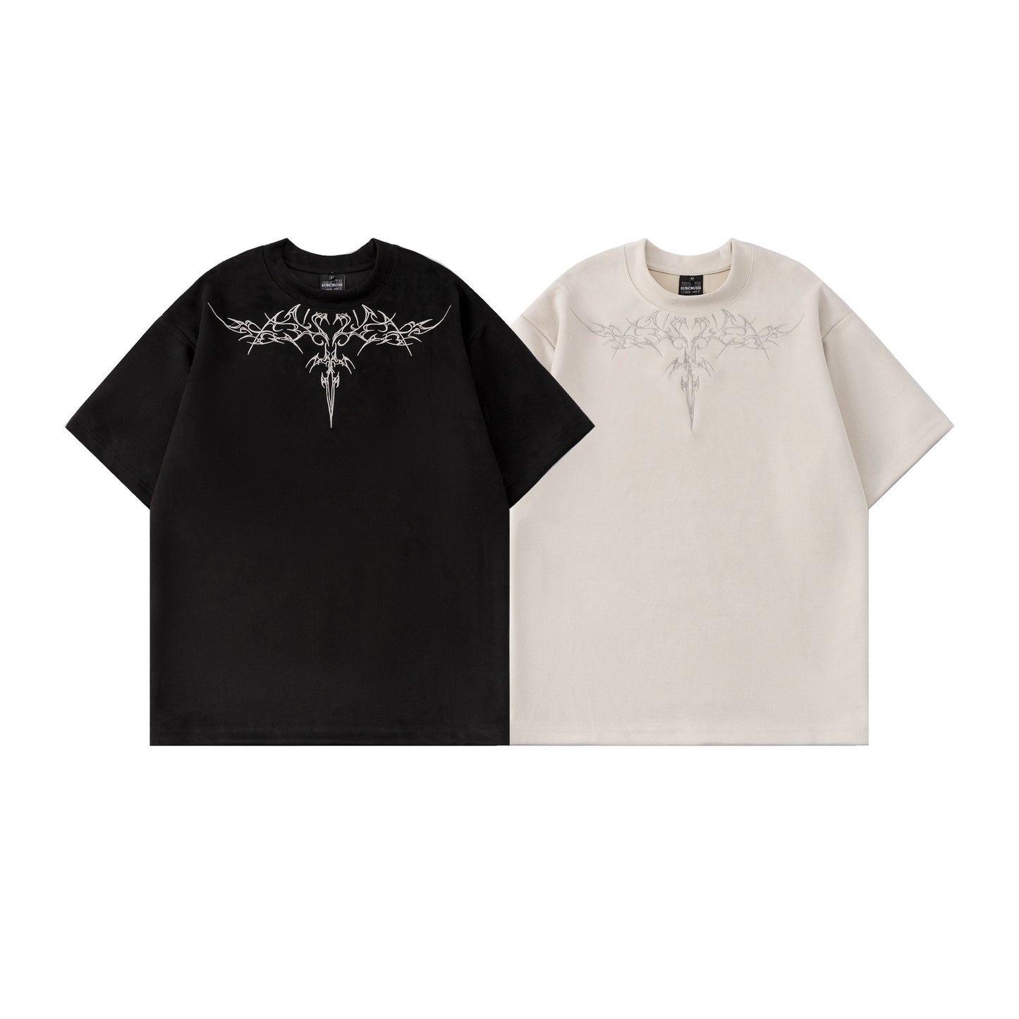 Wing Embroidery Suede Short Sleeve T-Shirt WN16189