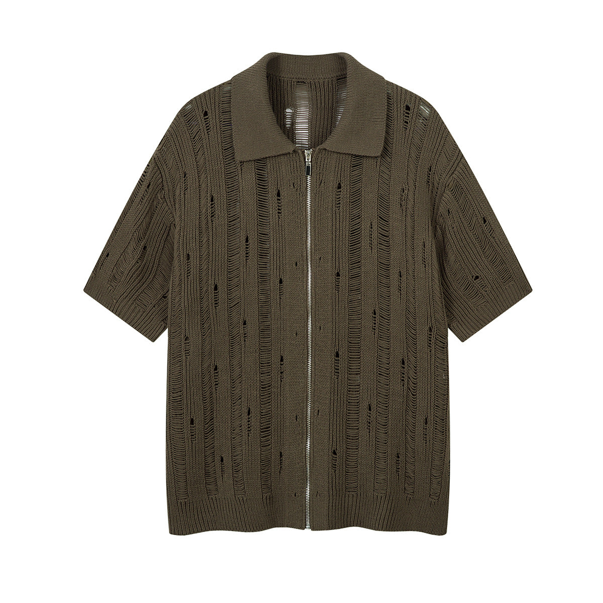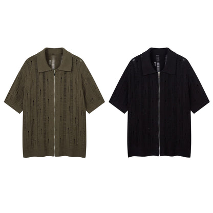 Damage Design Zipper Short Sleeve Knit Shirt WN16198