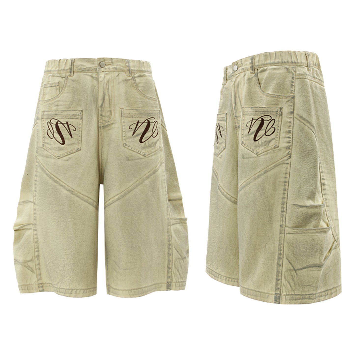 Washed Dirty Elastic Waist Wide Leg Half Pants WN16204