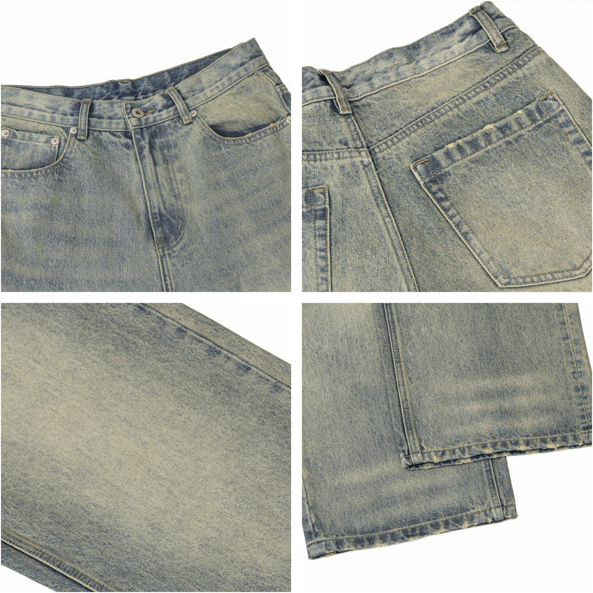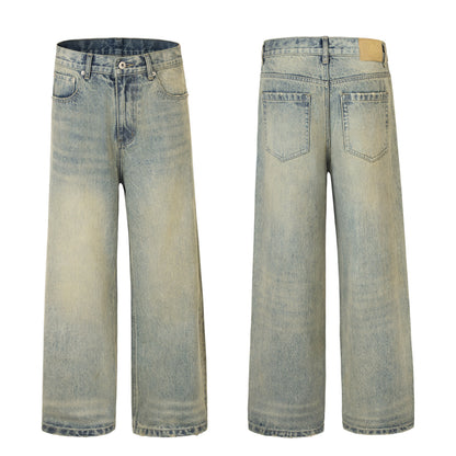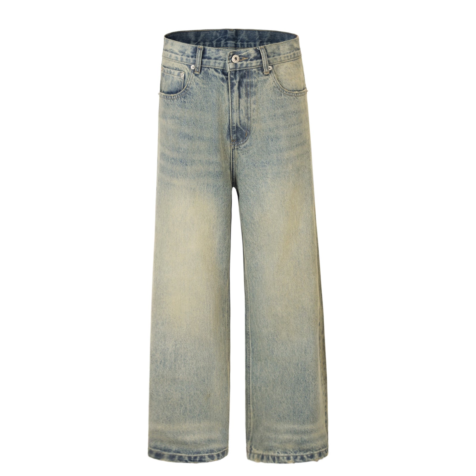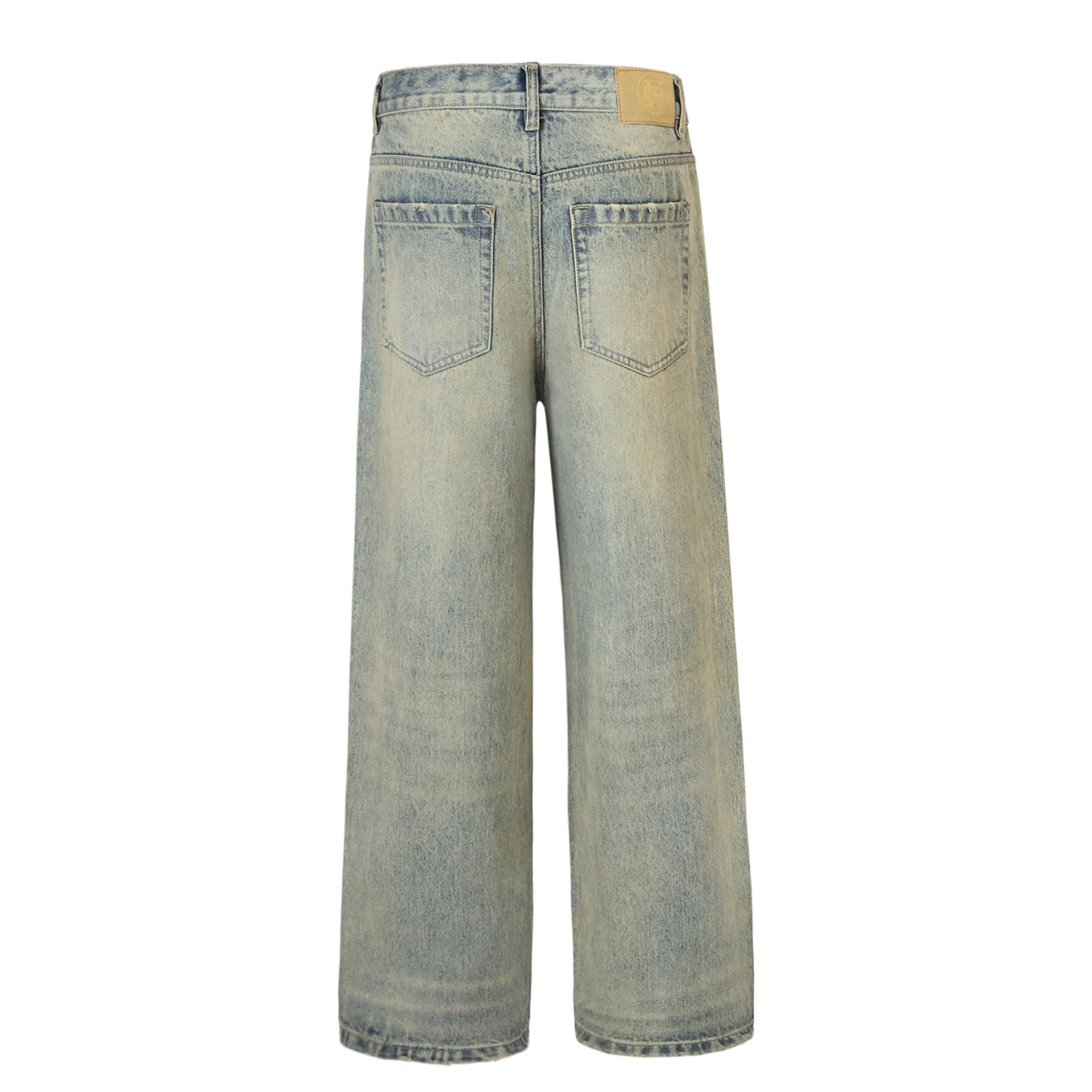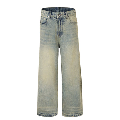 Washed Wide-Leg Straight Denim Jeans WN16208
