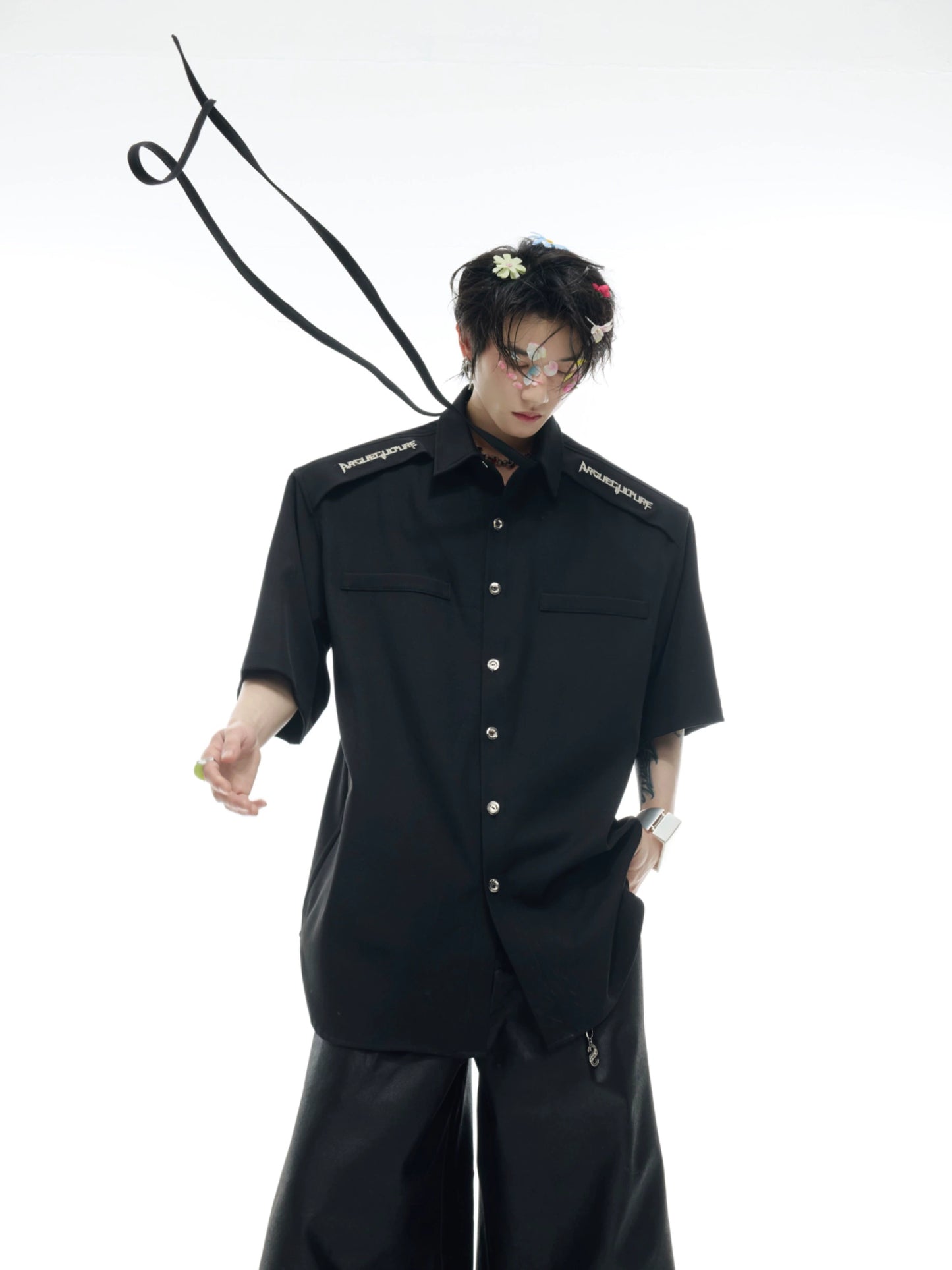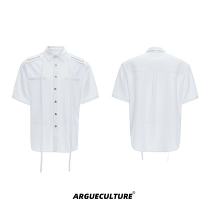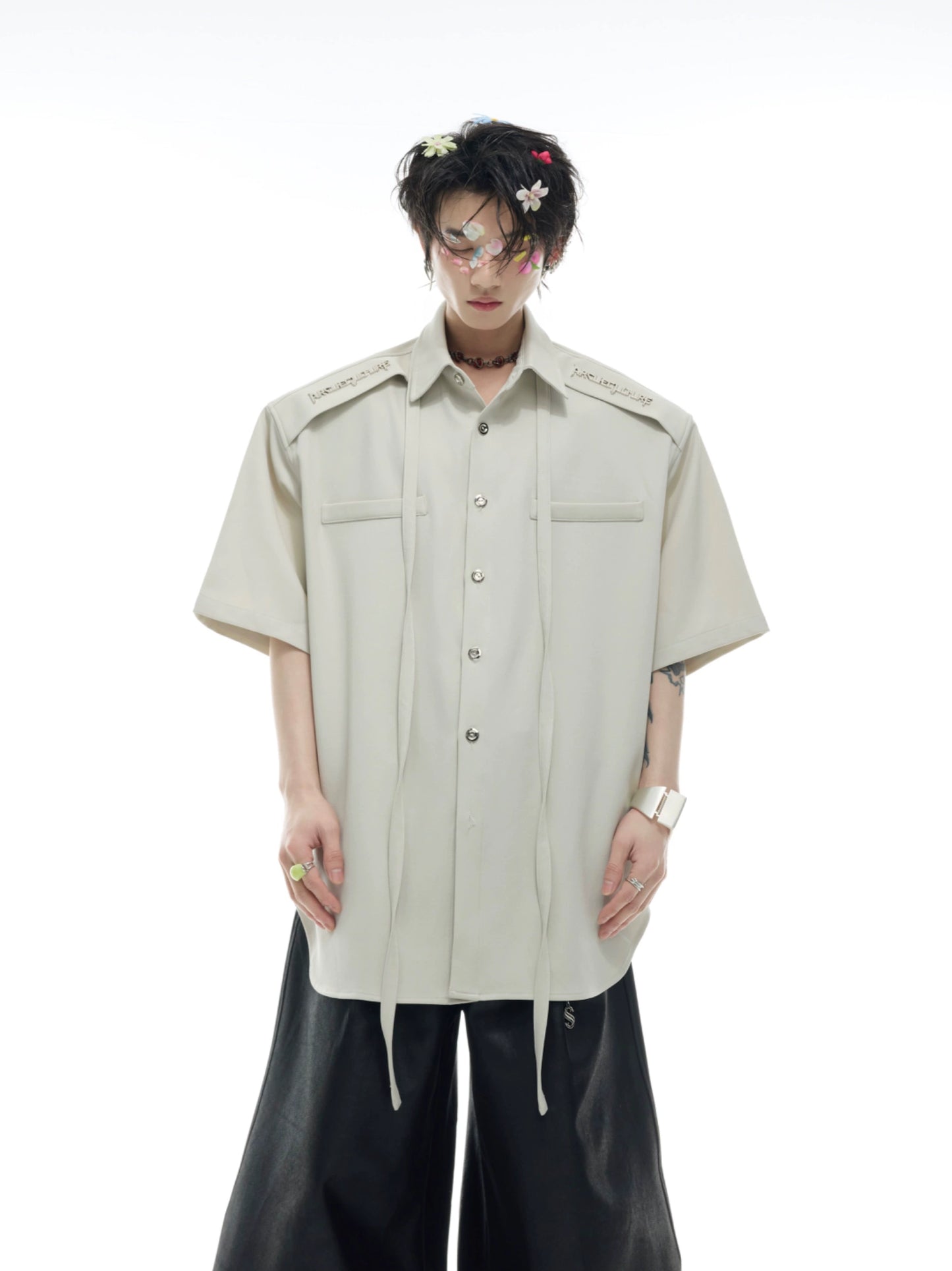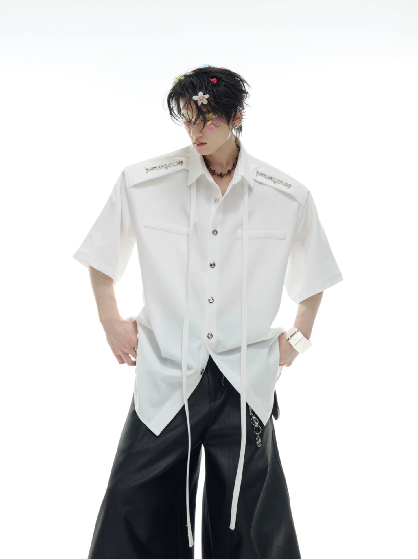 Ribbon Design Shoulder-Pad Short Sleeve T-Shirt WN16316