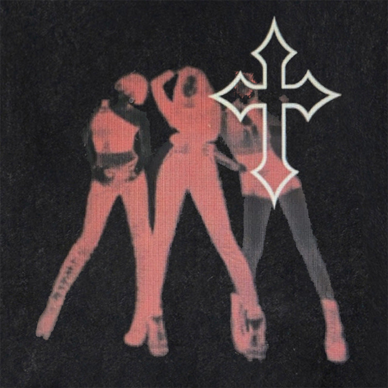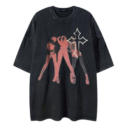 Cross Print Washed Short Sleeve T-Shirt WN16486