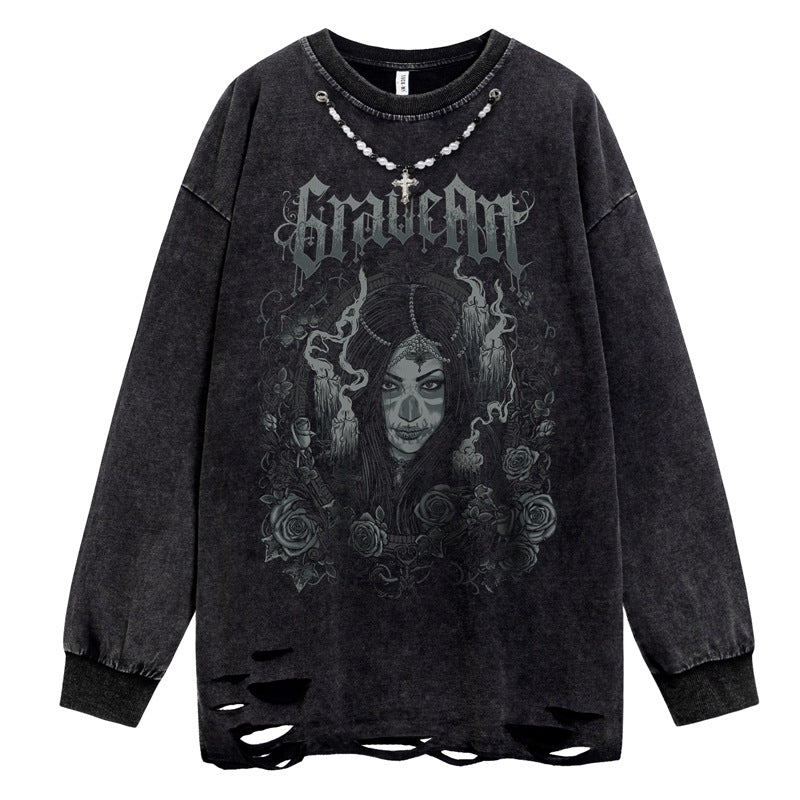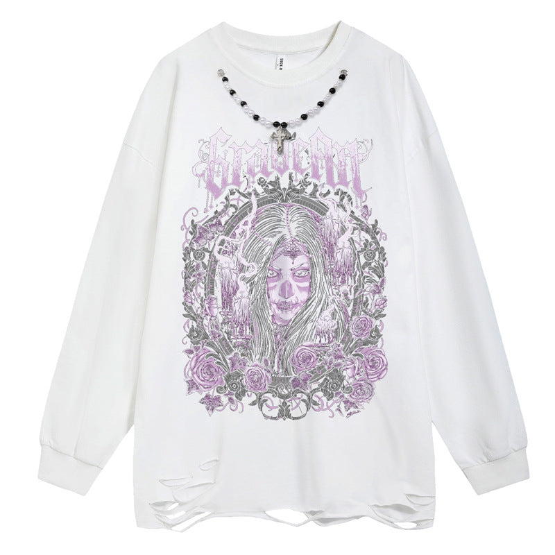 Oversize Graphic Print Damage Long Sleeve T-Shirt WN16492