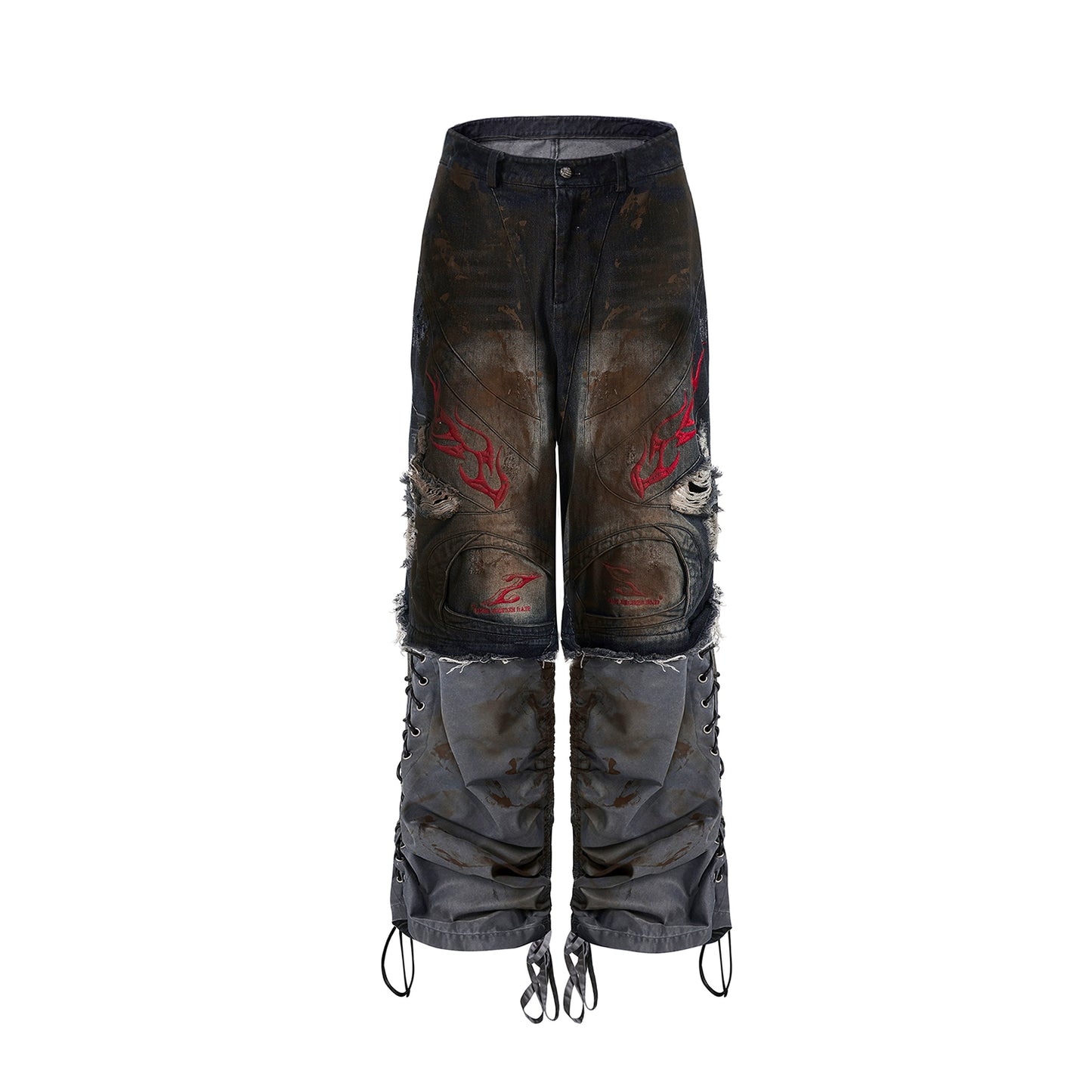 Detachable Leg Washed Embroidery Wide Leg Denim Jeans WN16568