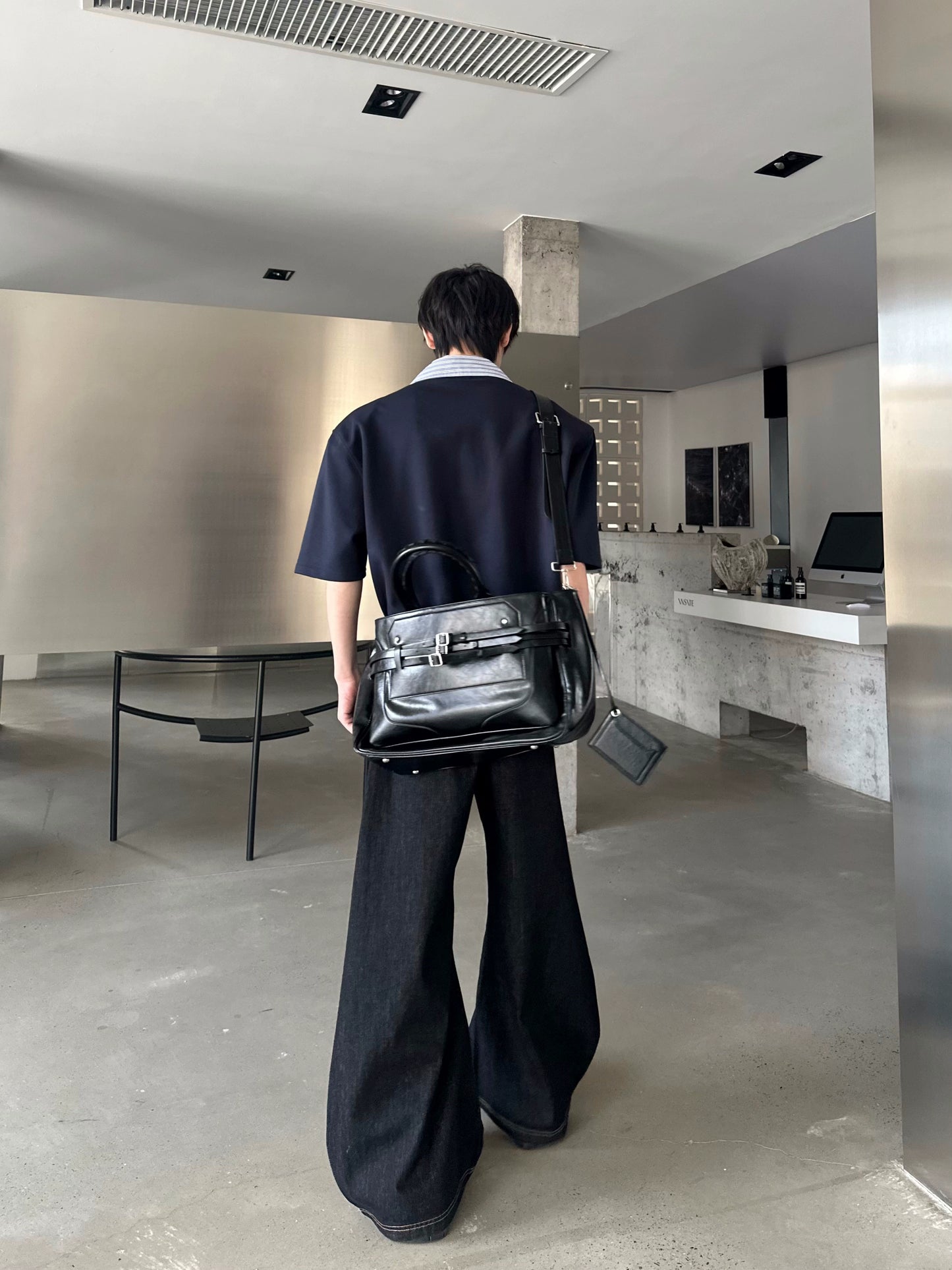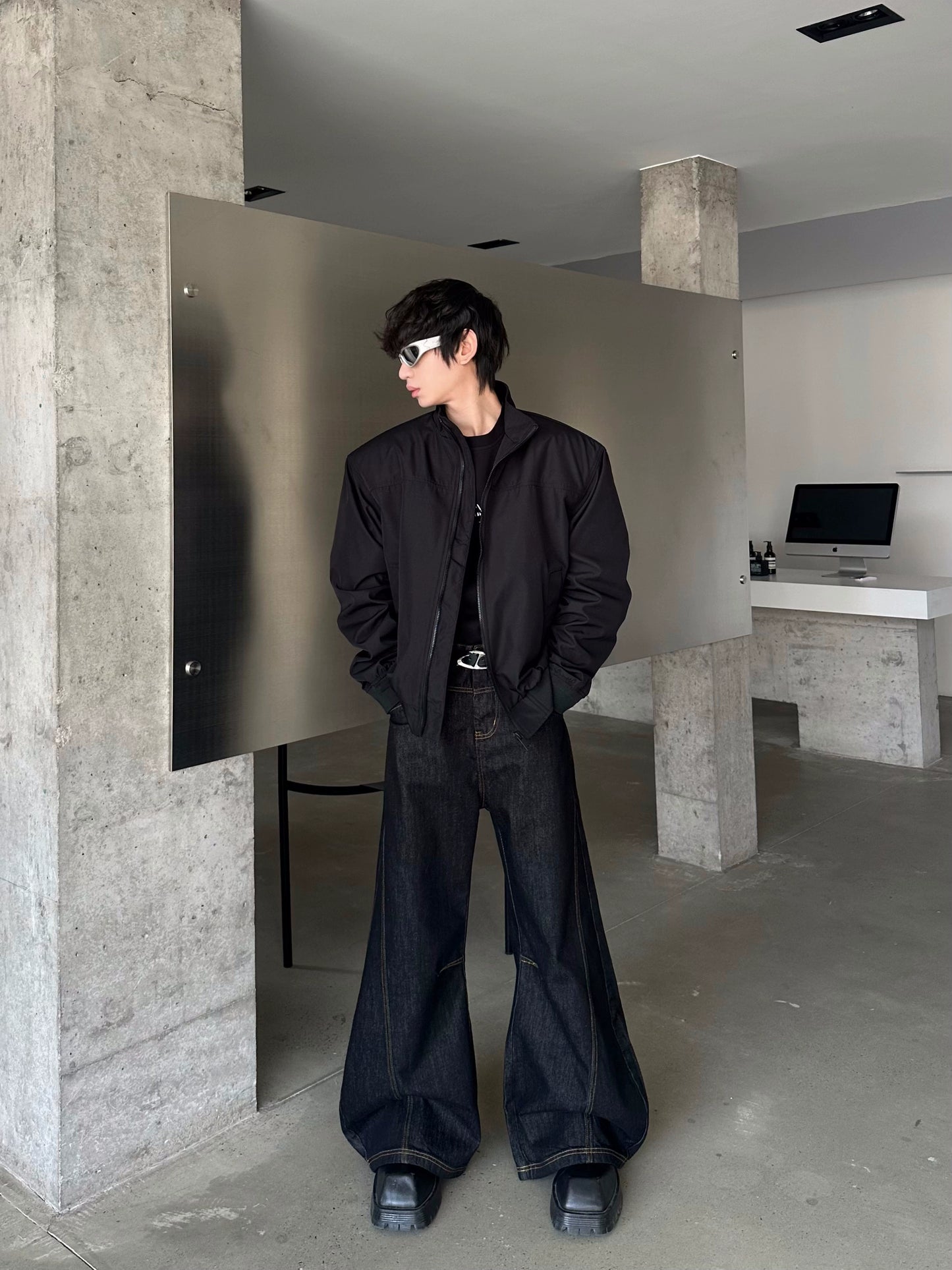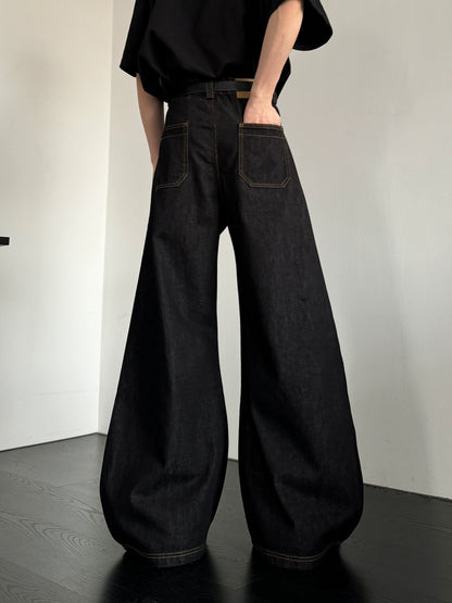 Washed Curved Cut Wide Leg Denim Jeans WN16767