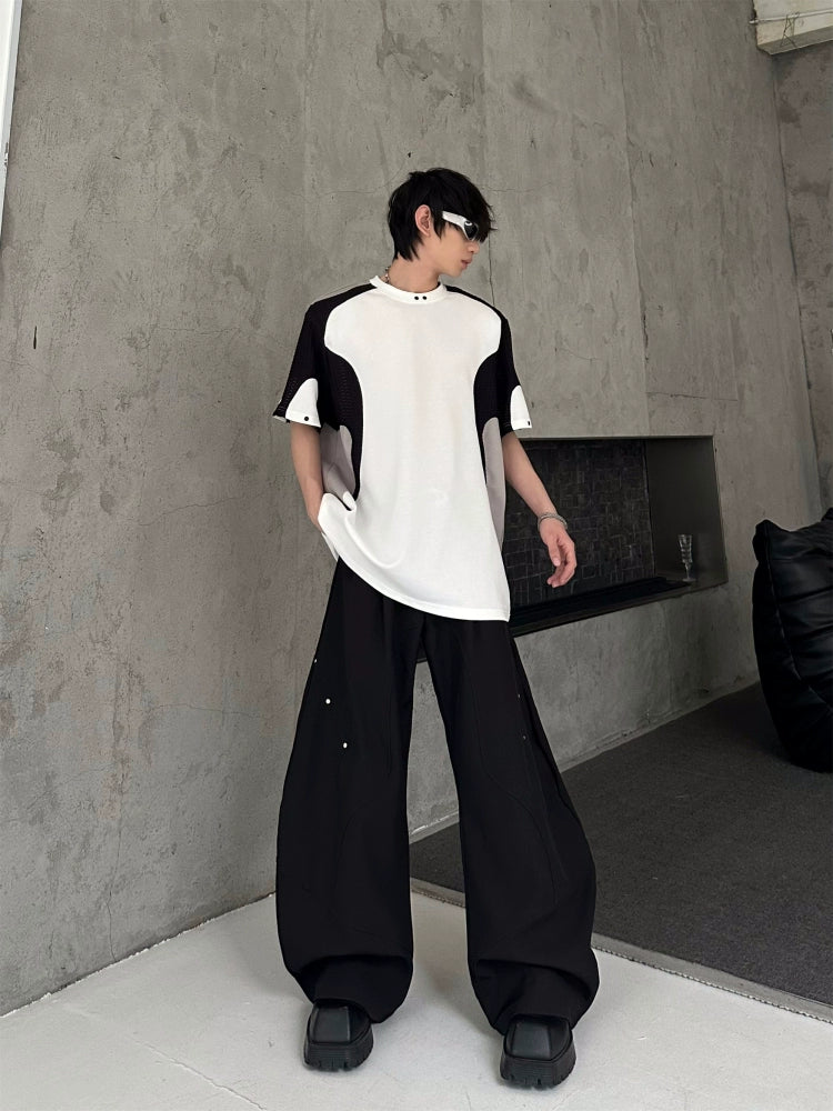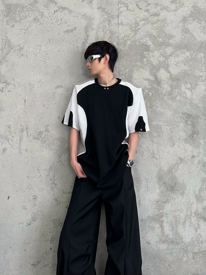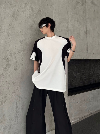 Shoulder-Pad Bicolor Short Sleeve T-Shirt WN16800