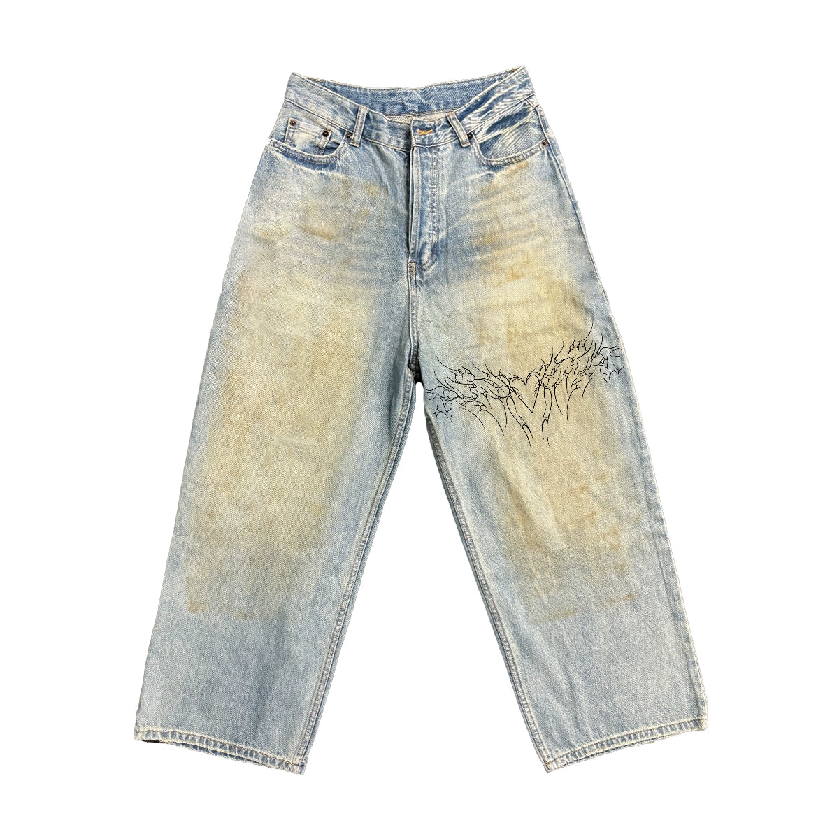 Spray Dye Washed Wide Leg Denim Jeans WN16832