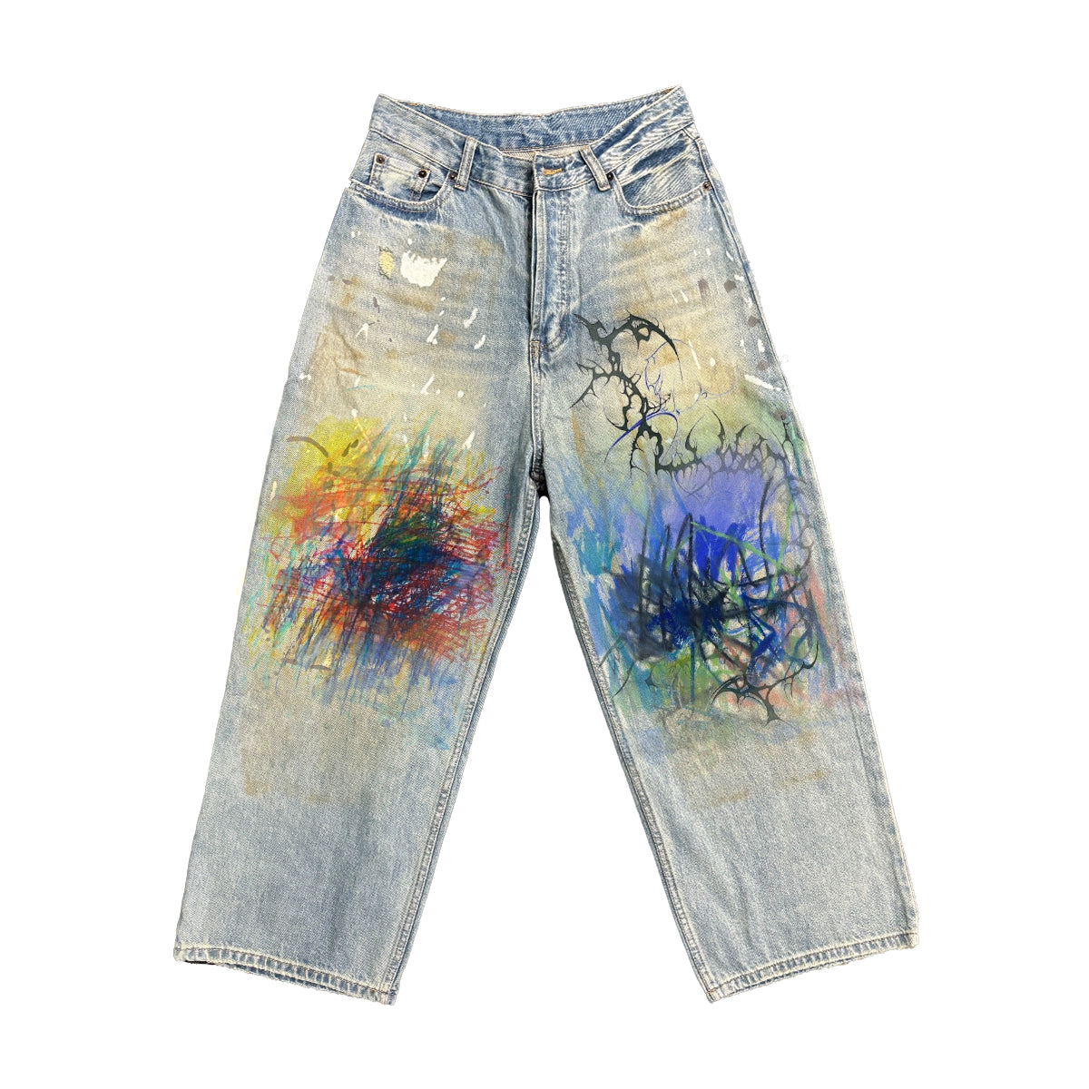 Spray Dye Washed Wide Leg Denim Jeans WN16835