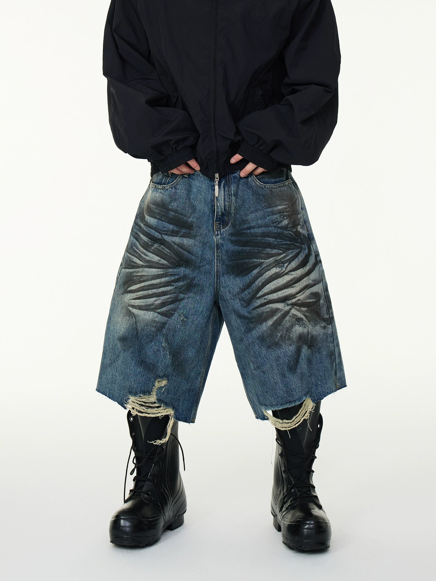 Wash Crinkle Cut Hem Denim Half Jeans WN16933
