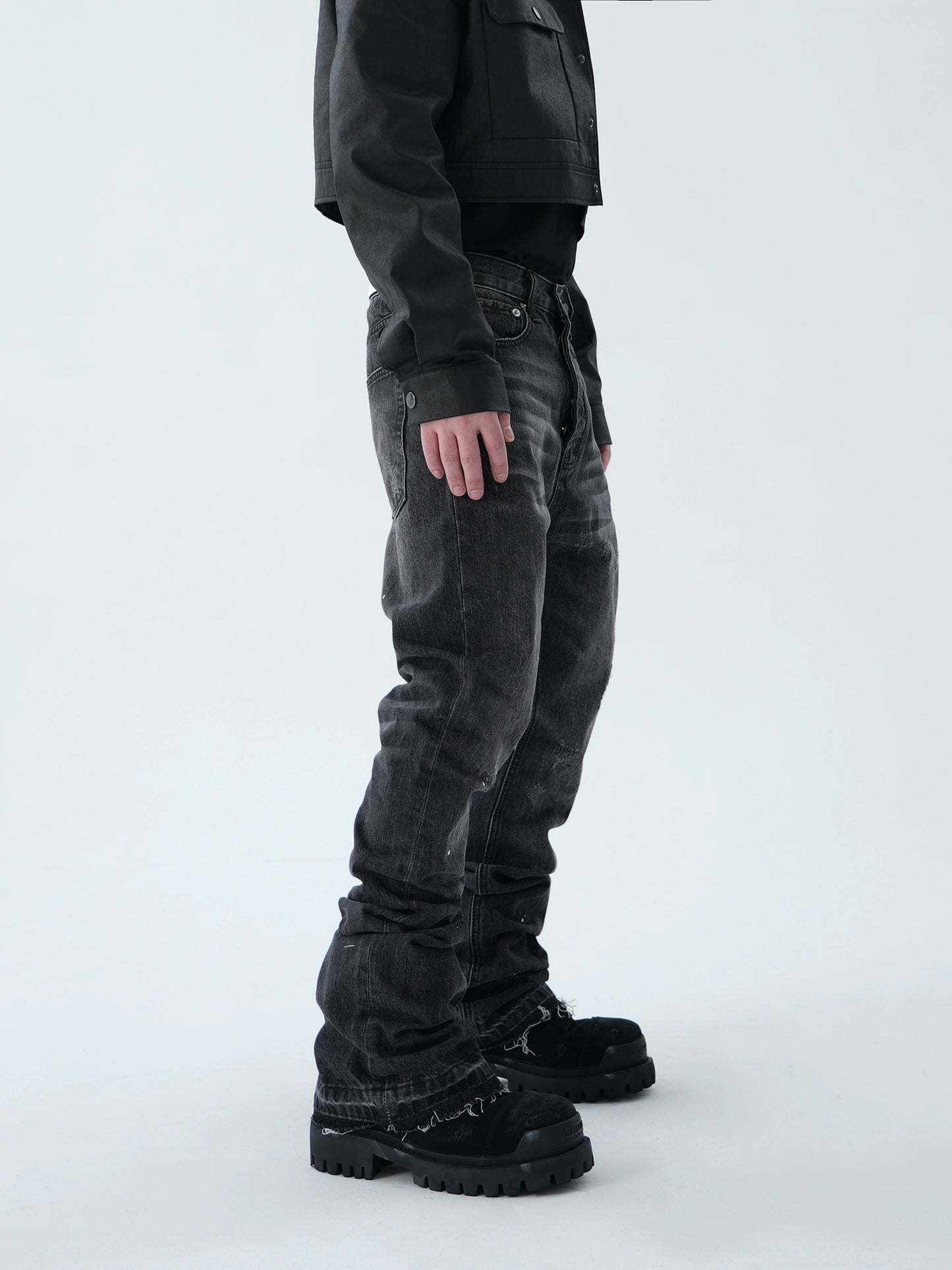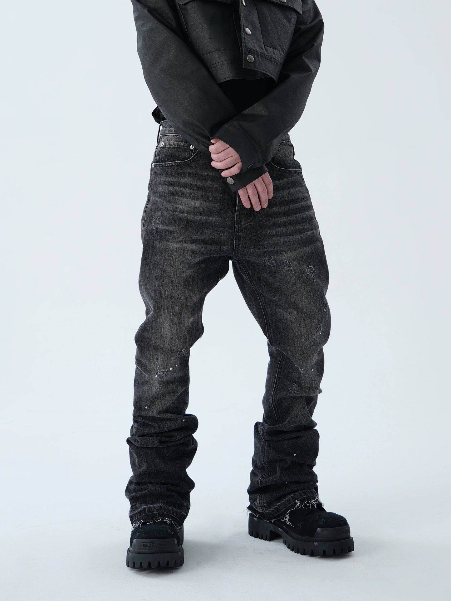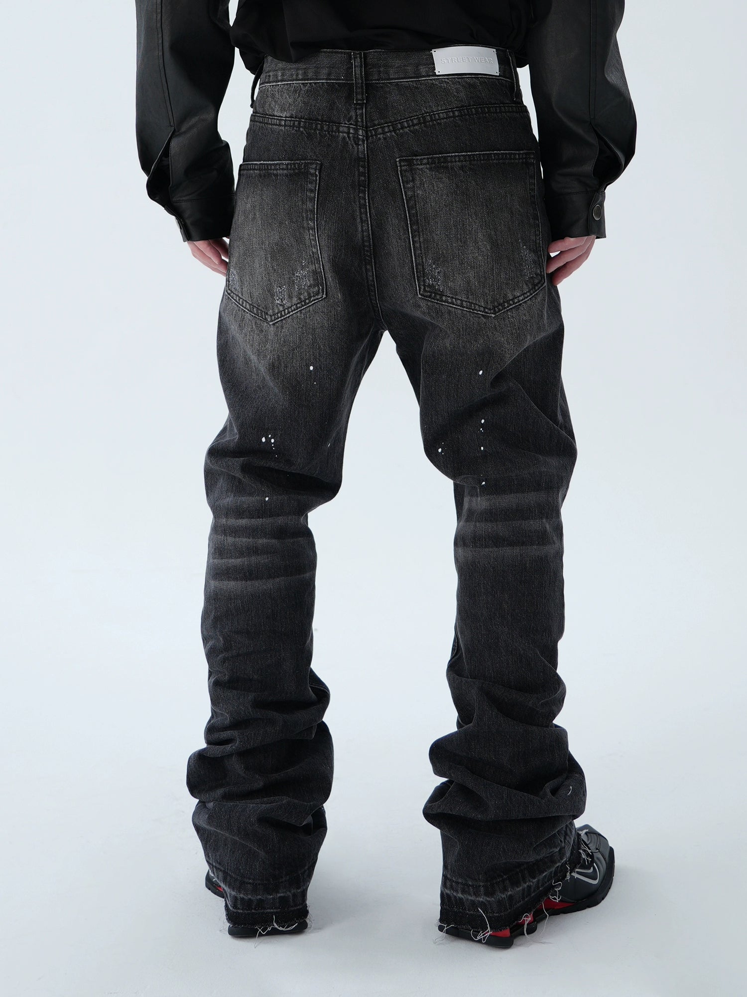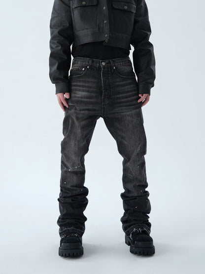 Washed Paint Hand-Brushed Stacked Denim Jeans WN16968