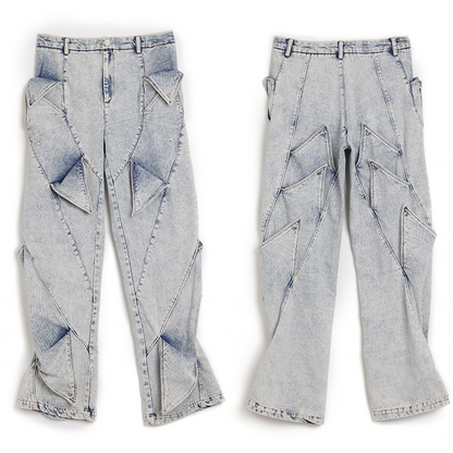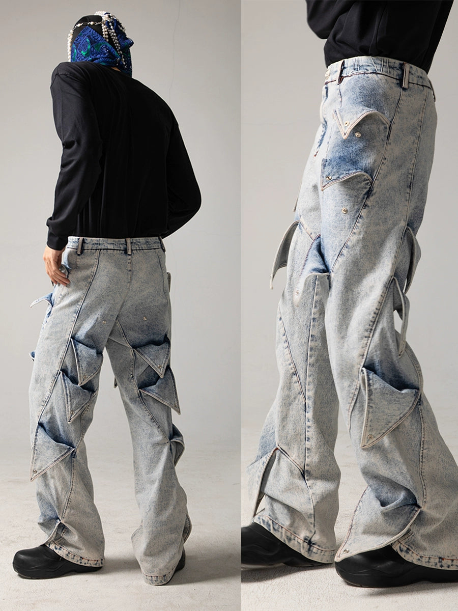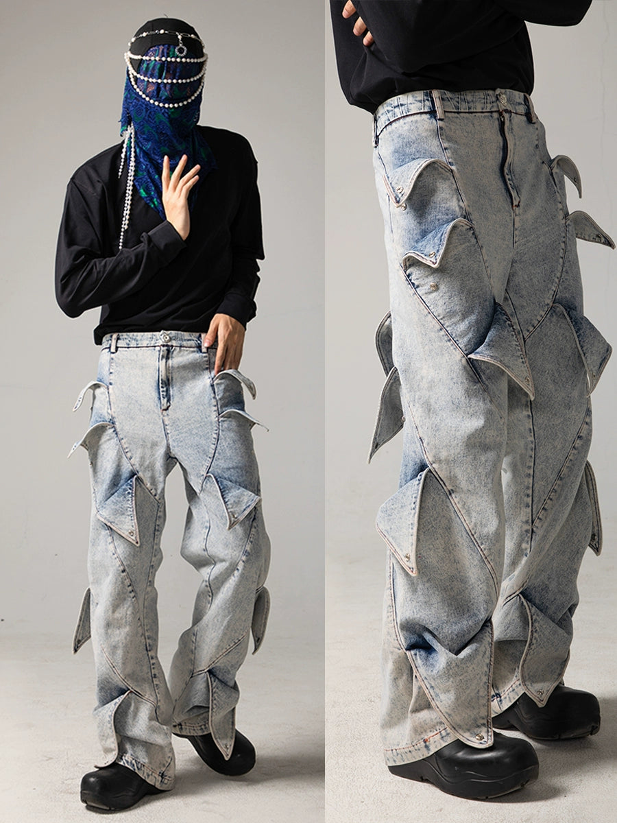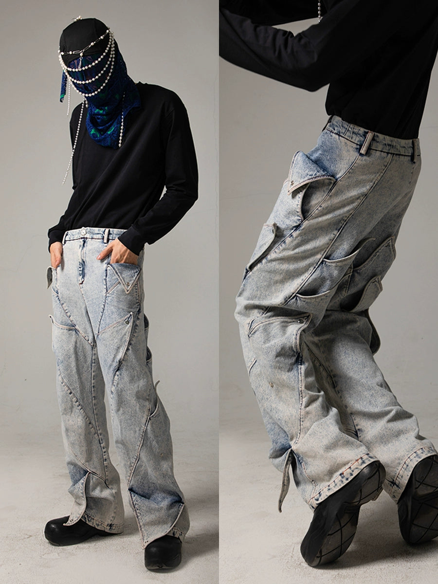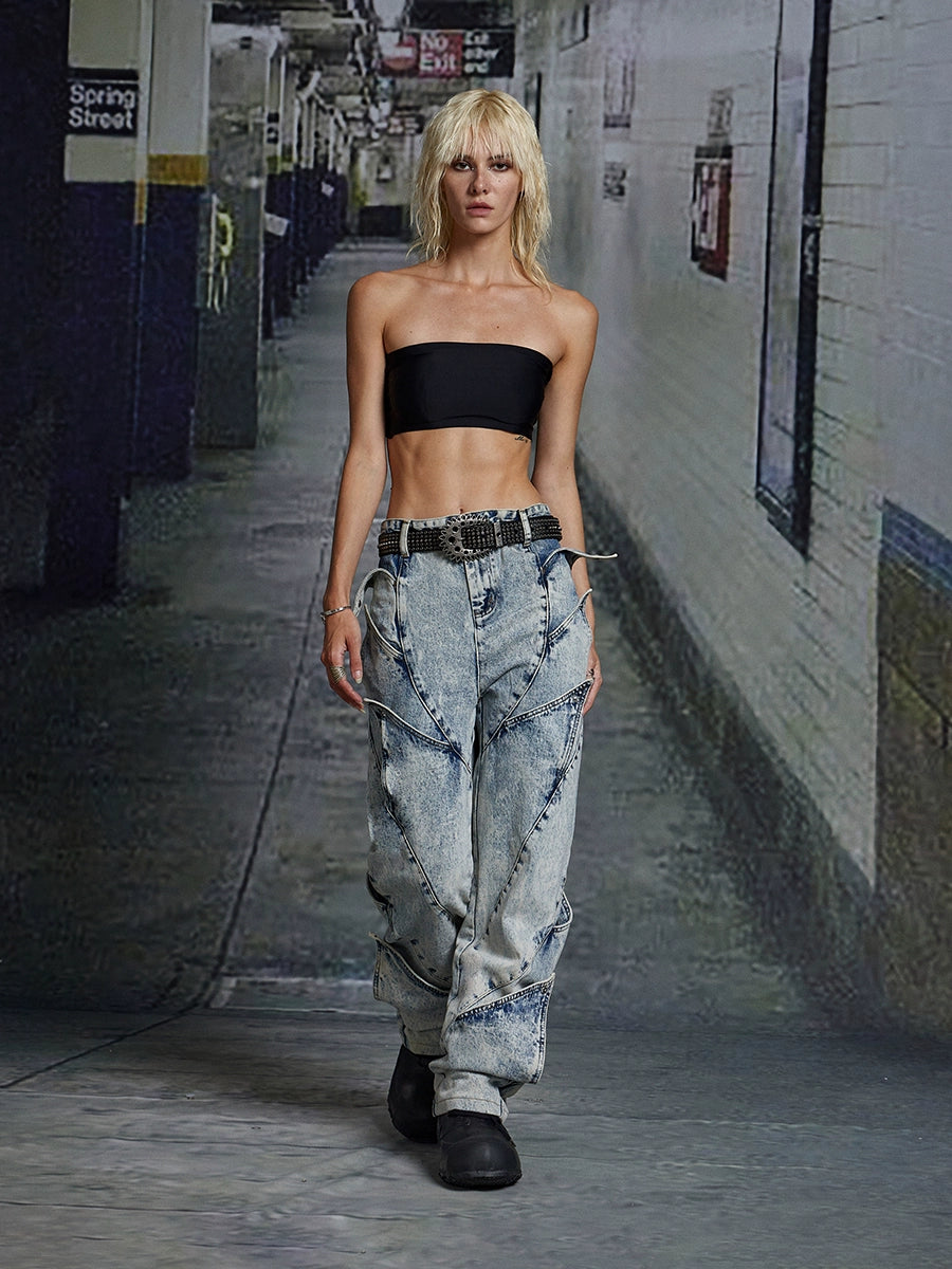 Deconstructed Washed Wide-Leg Straight Denim Jeans WN17076