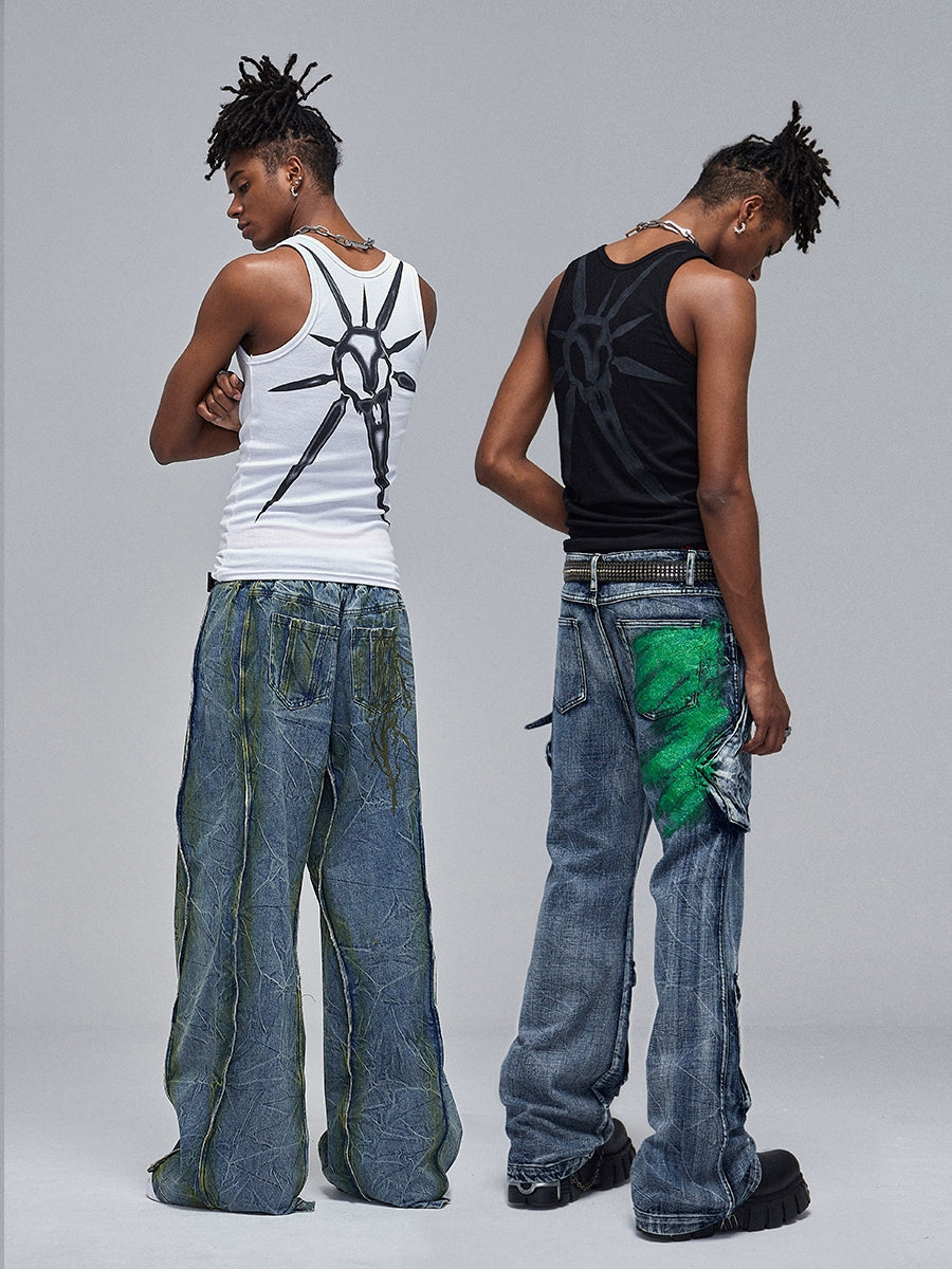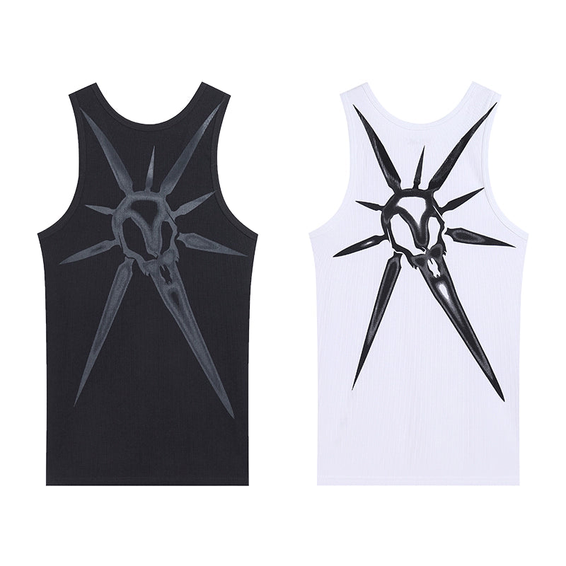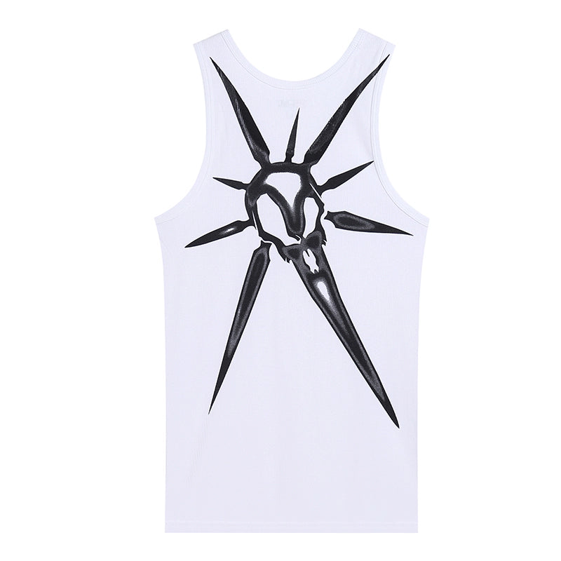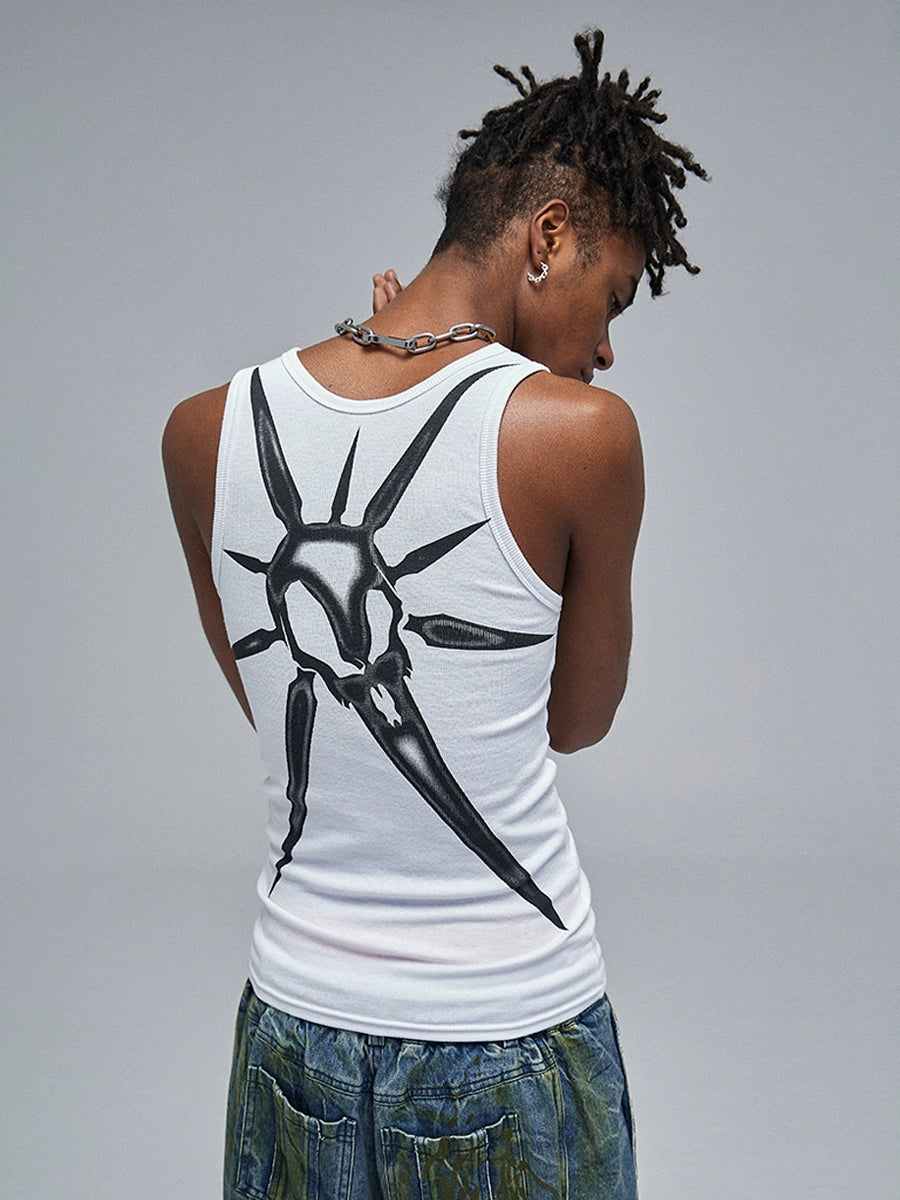 Skull Print Ribbed Stretch Tank Top WN17089