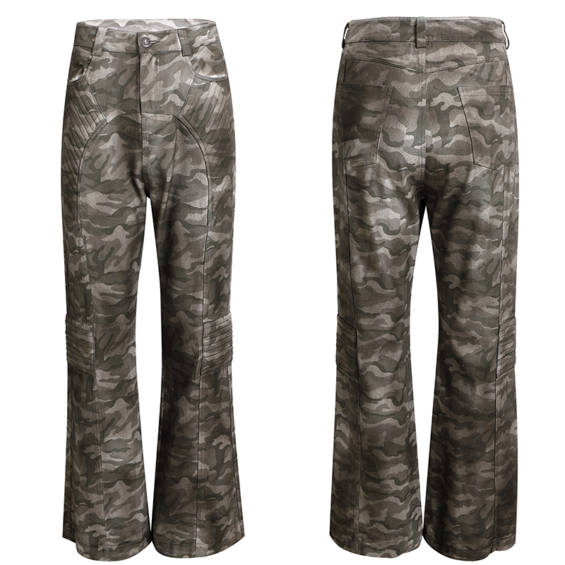 Washed Mud Dye Camouflage Micro Flare Cargo Pants WN17125