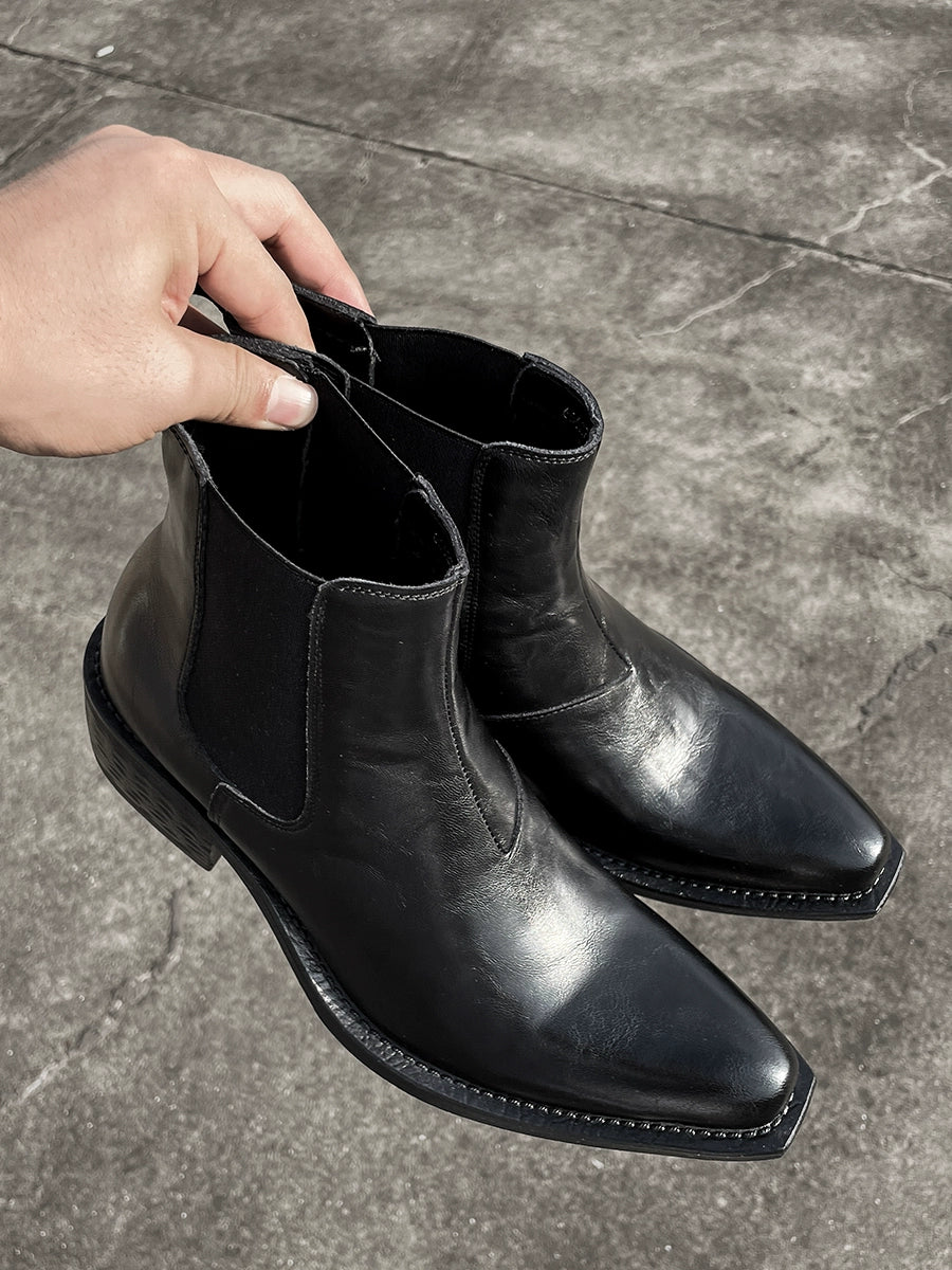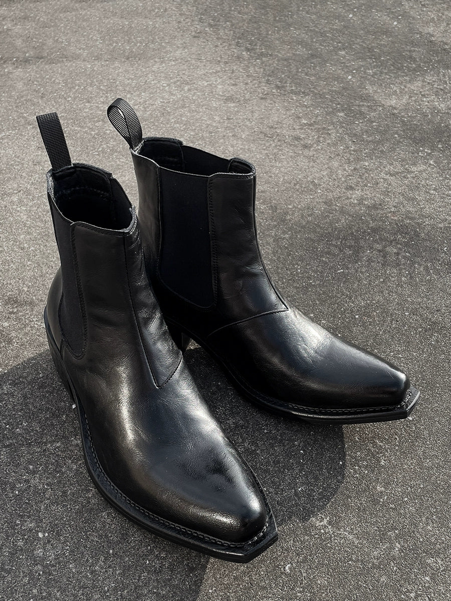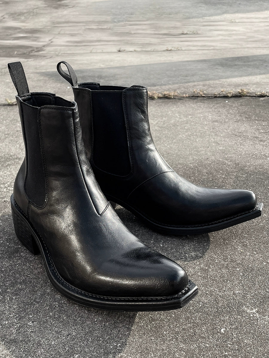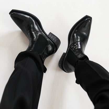 Pointed Toe Slip-On Mid-Calf Platform PU Leather Boots WN17280
