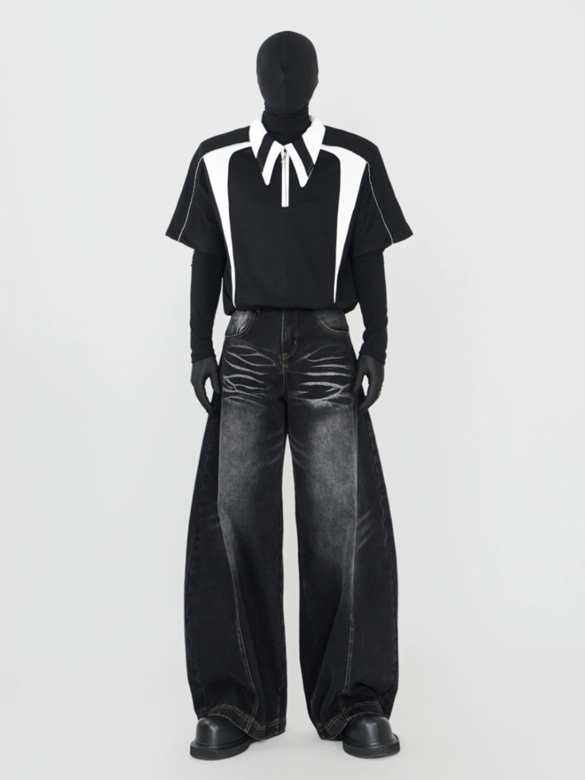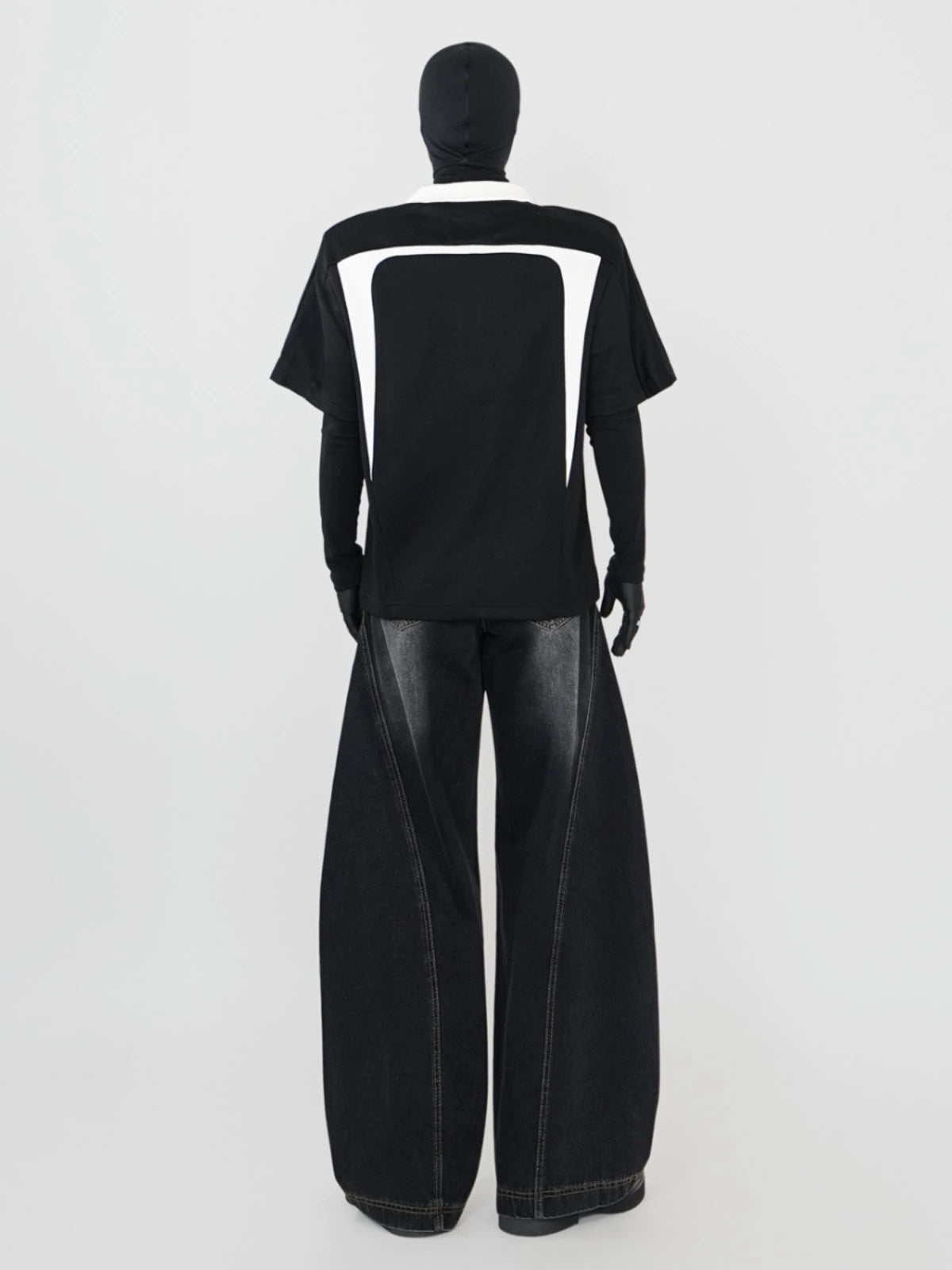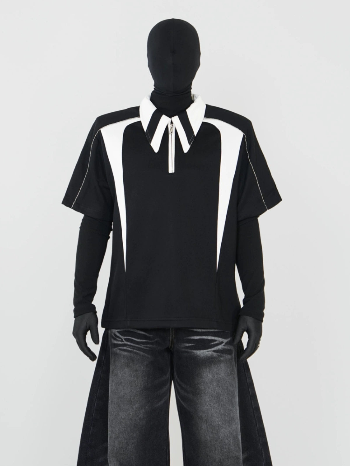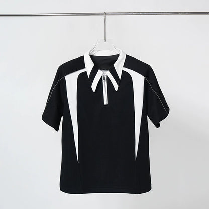 Contrast Half-Zip Turn-Down Collar Short Sleeve T-Shirt WN17311