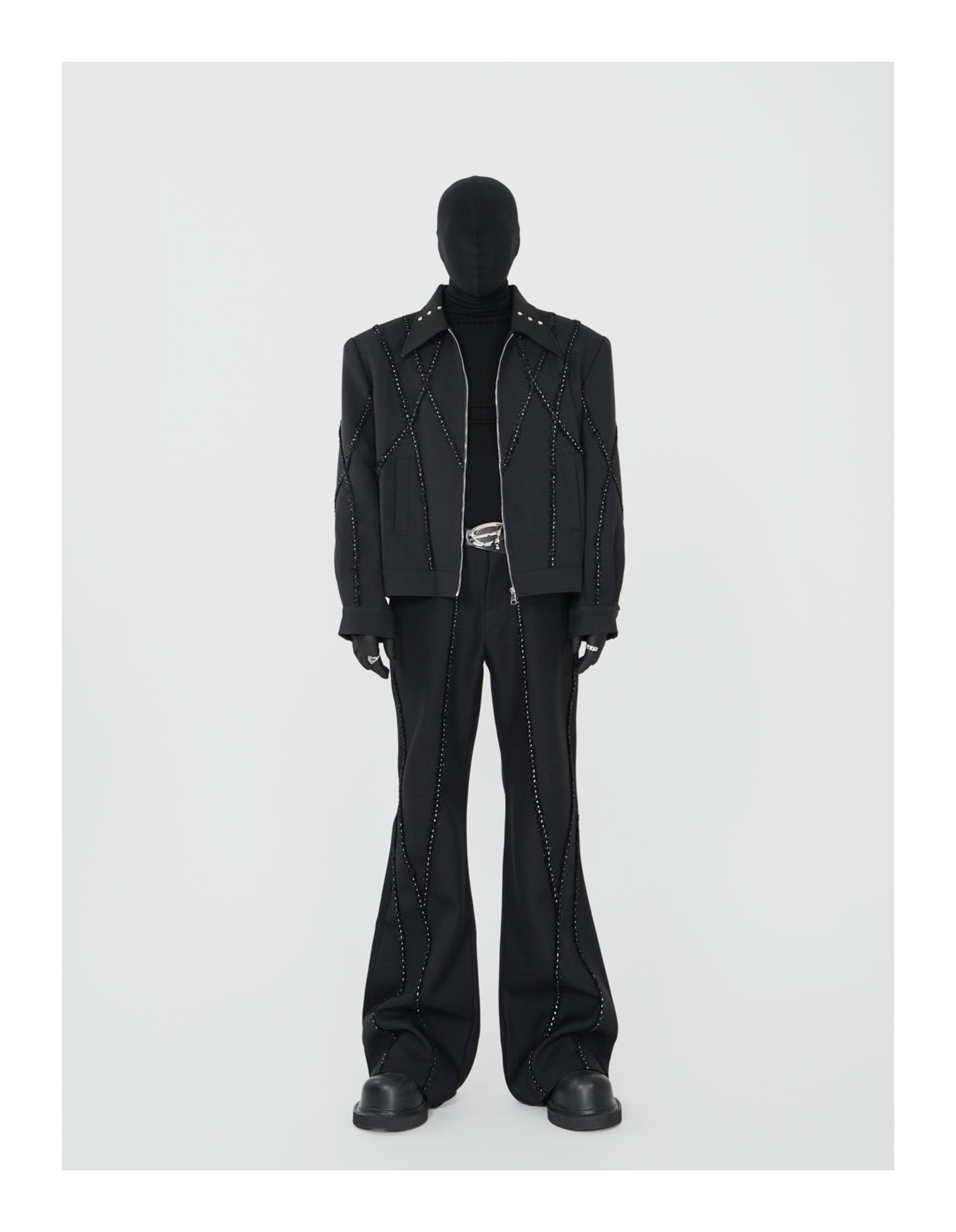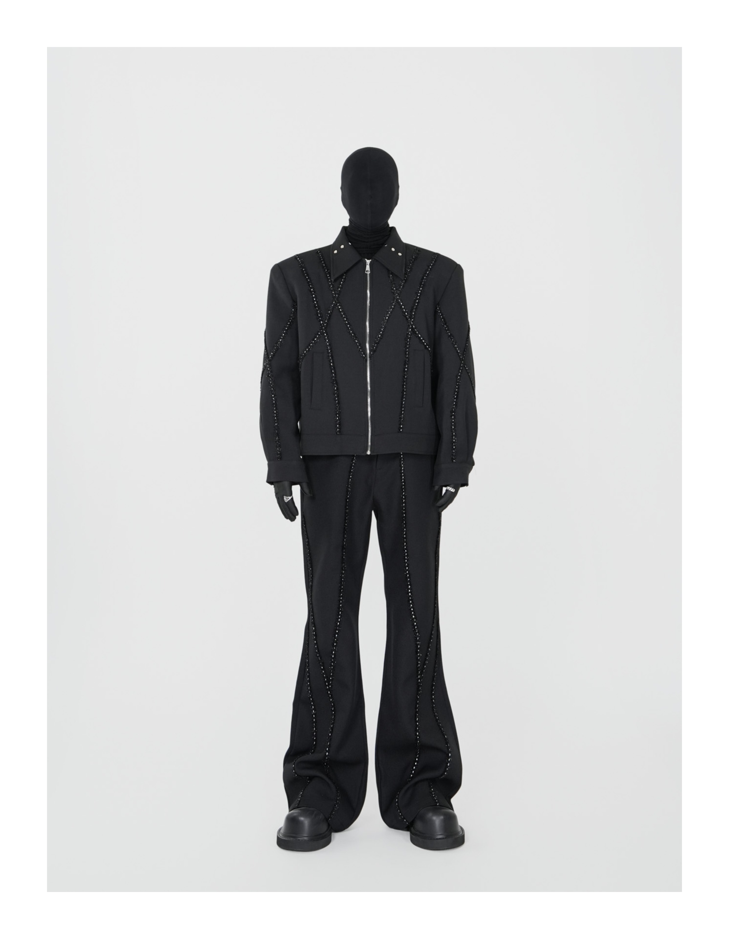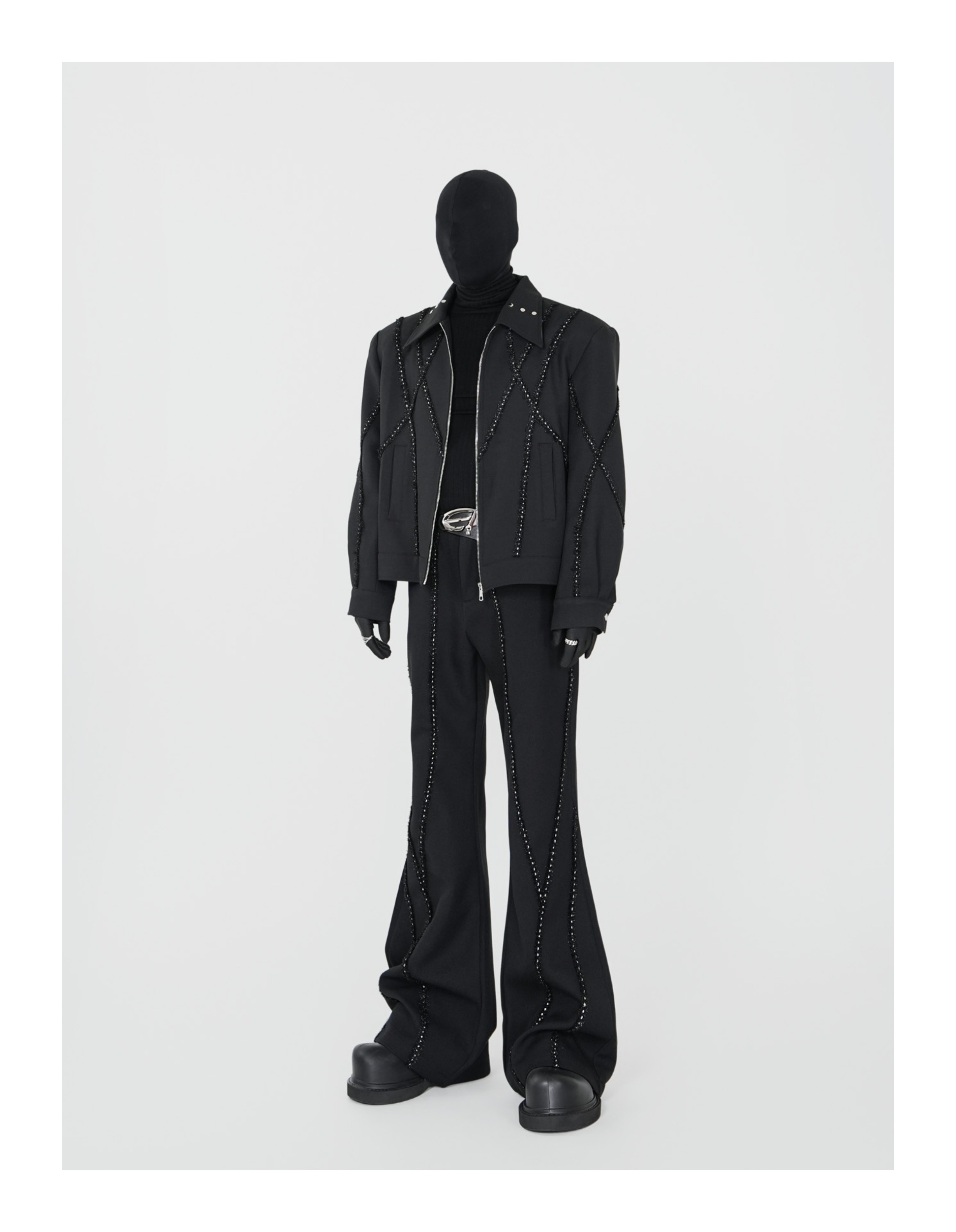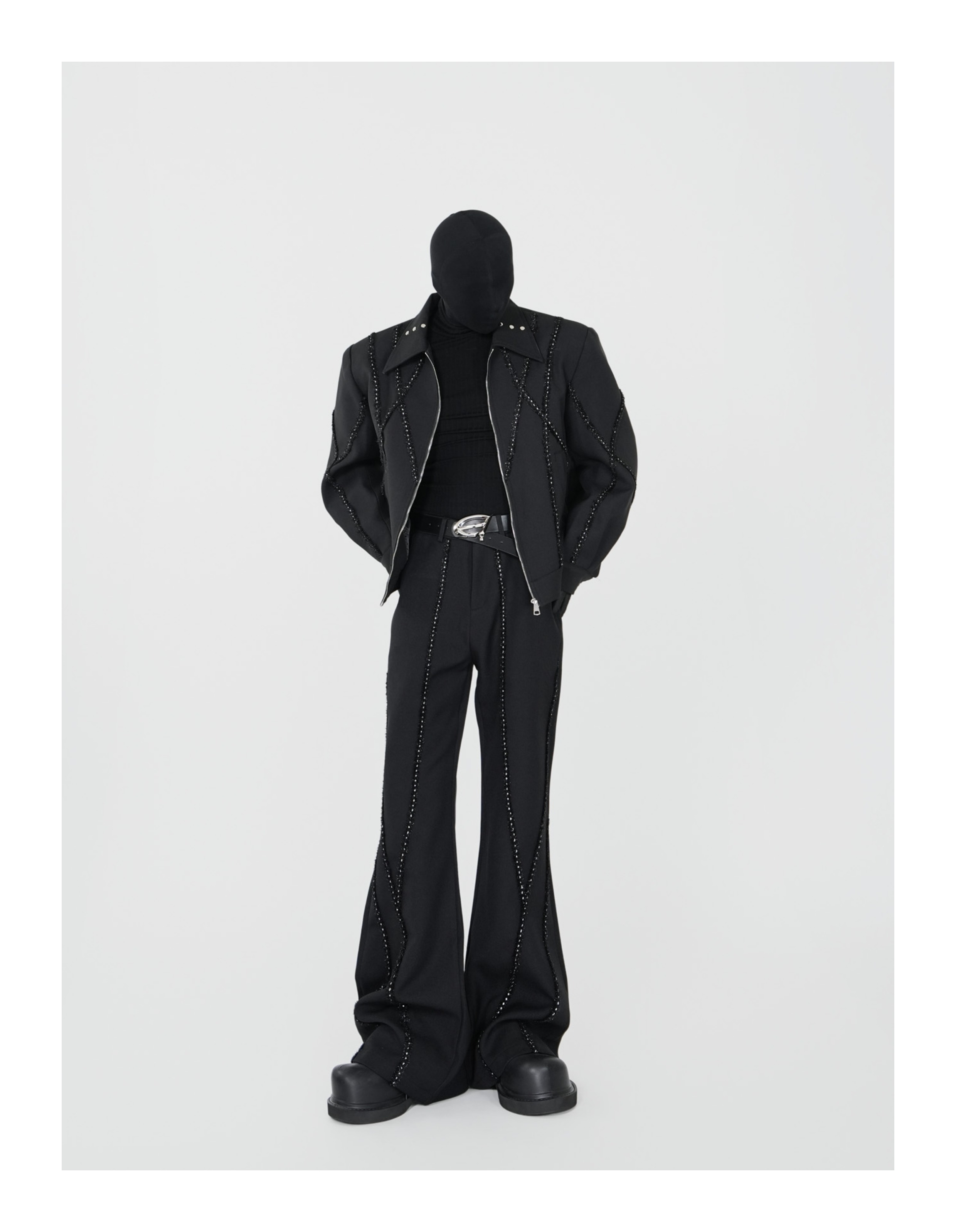 Rhinestone Zipper Jacket & Straight Flare Trousers Setup WN17350