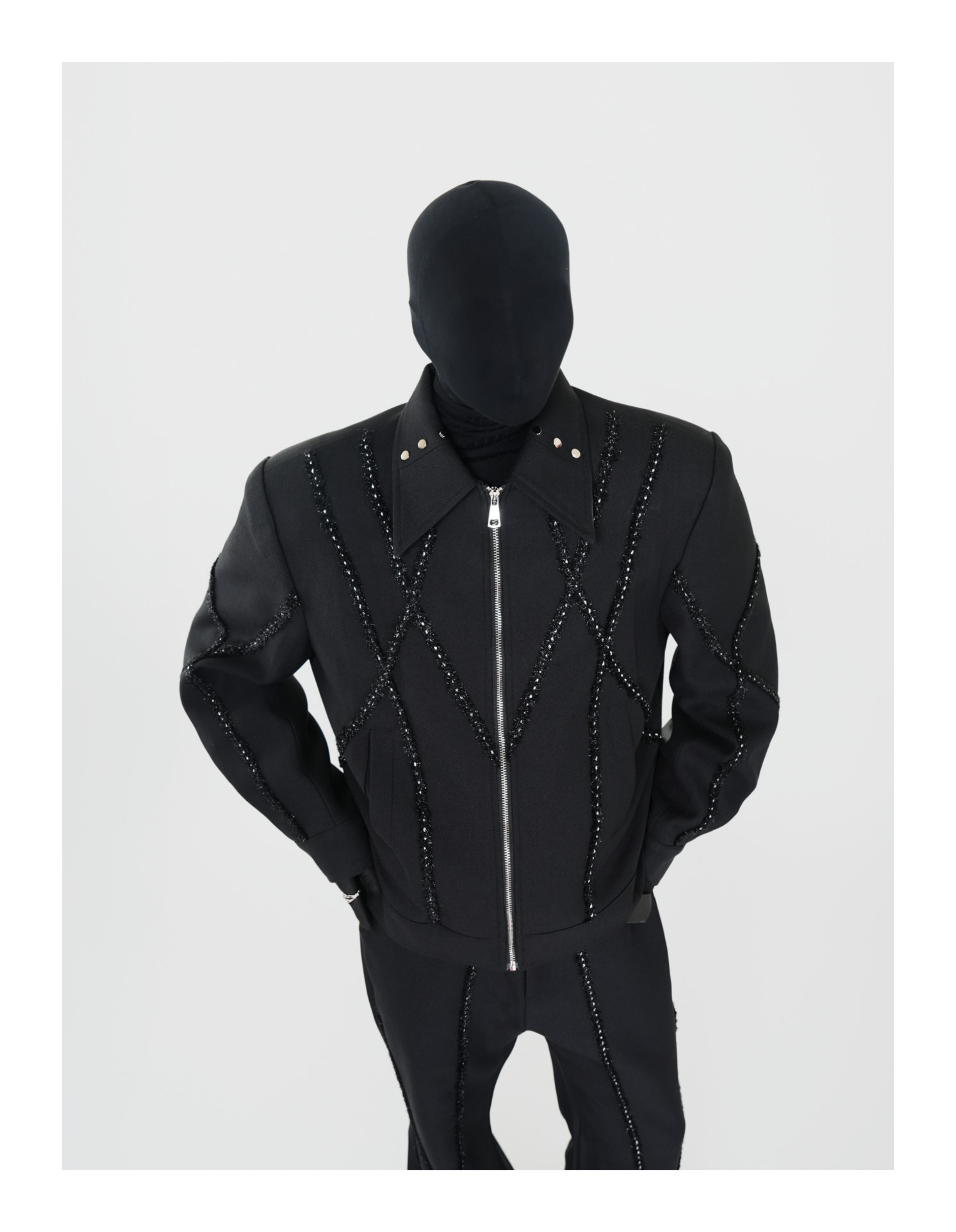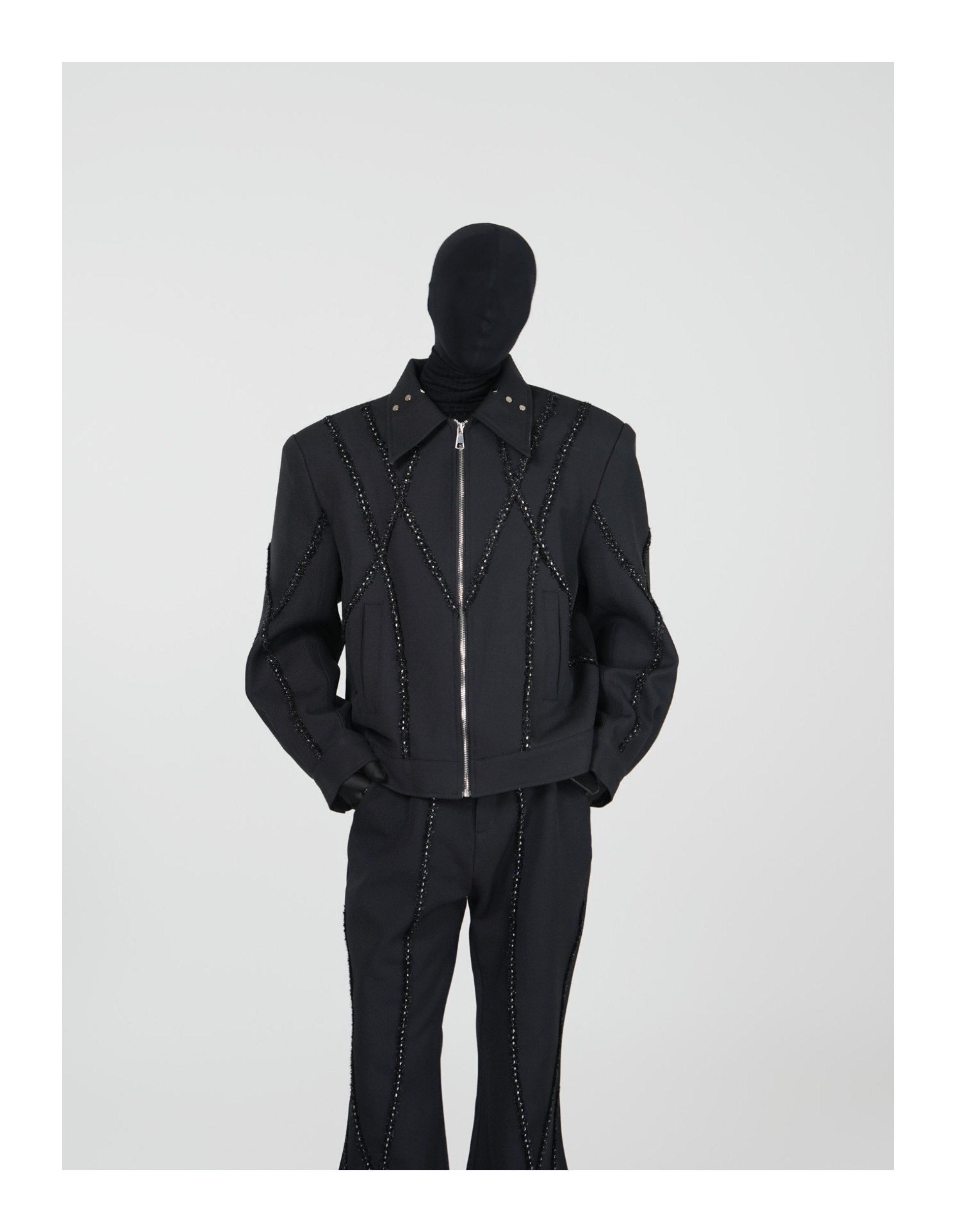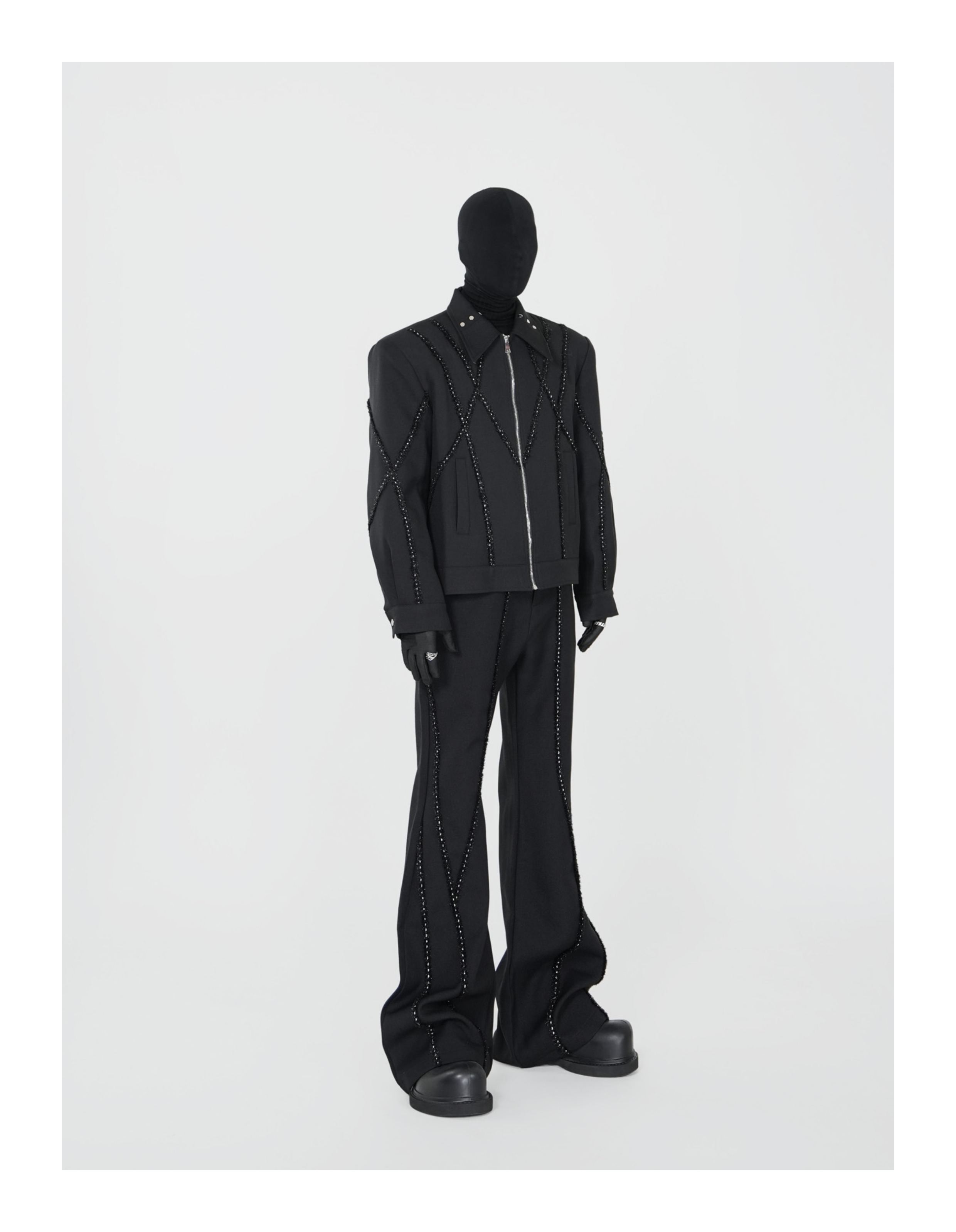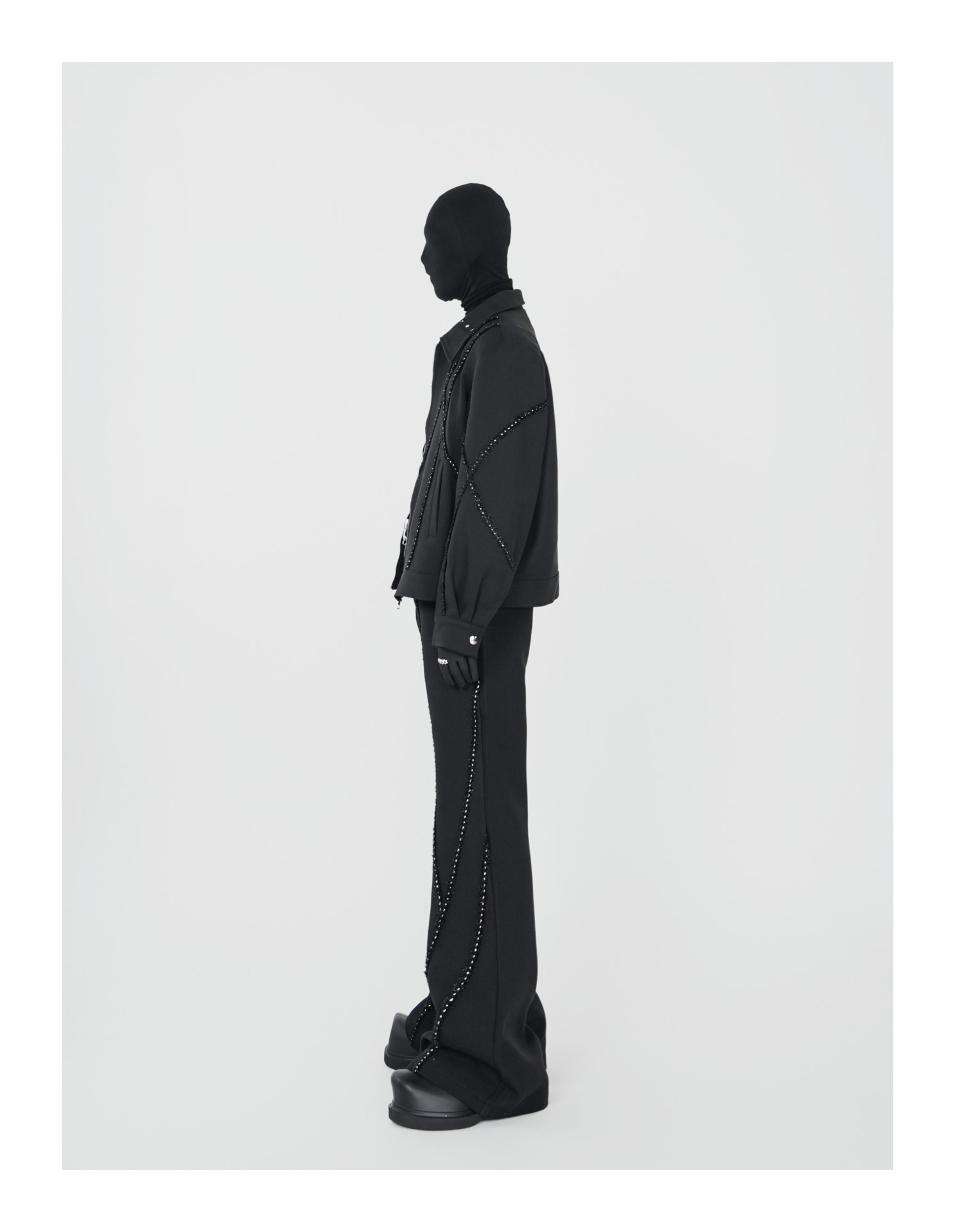 Rhinestone Zipper Jacket & Straight Flare Trousers Setup WN17350