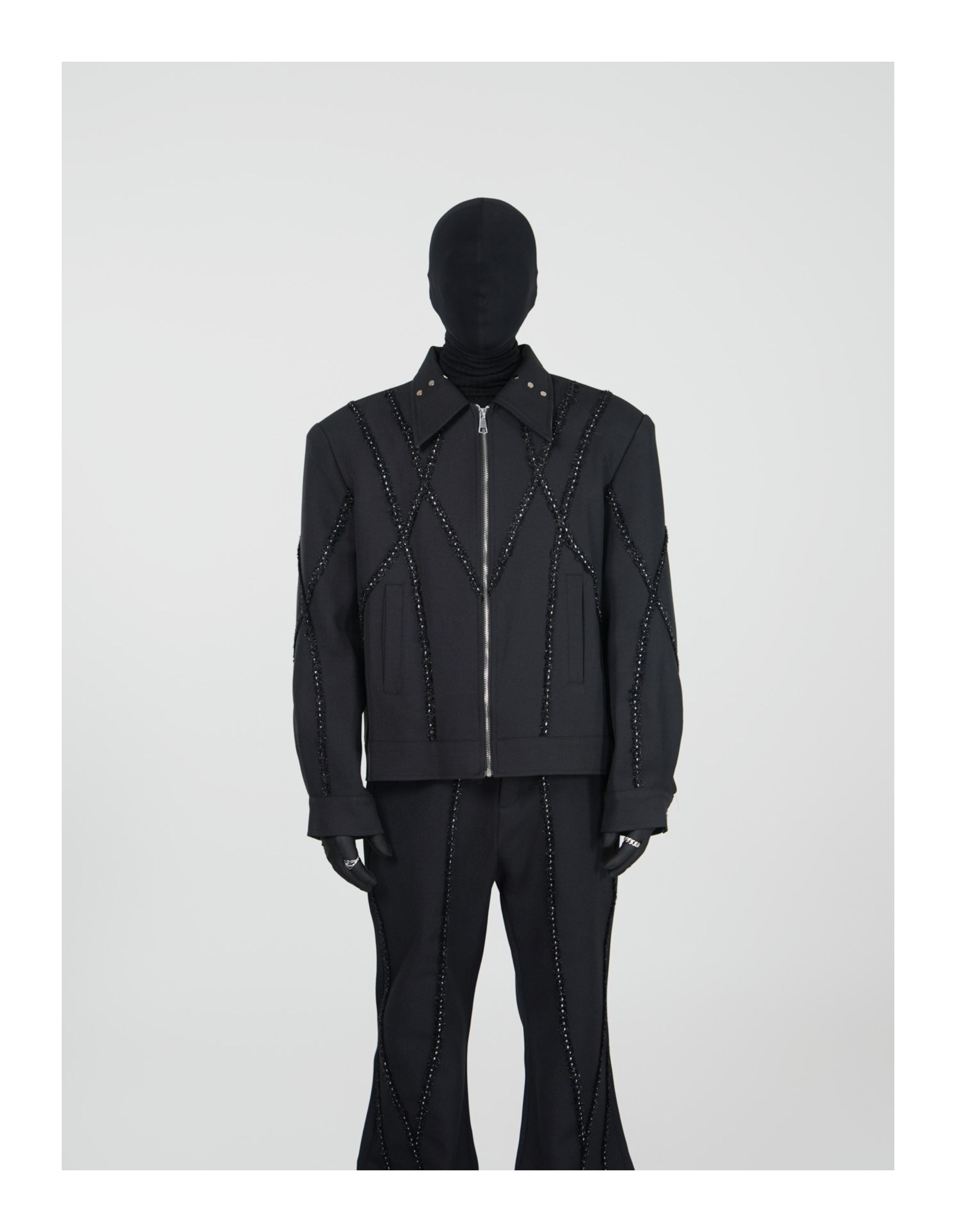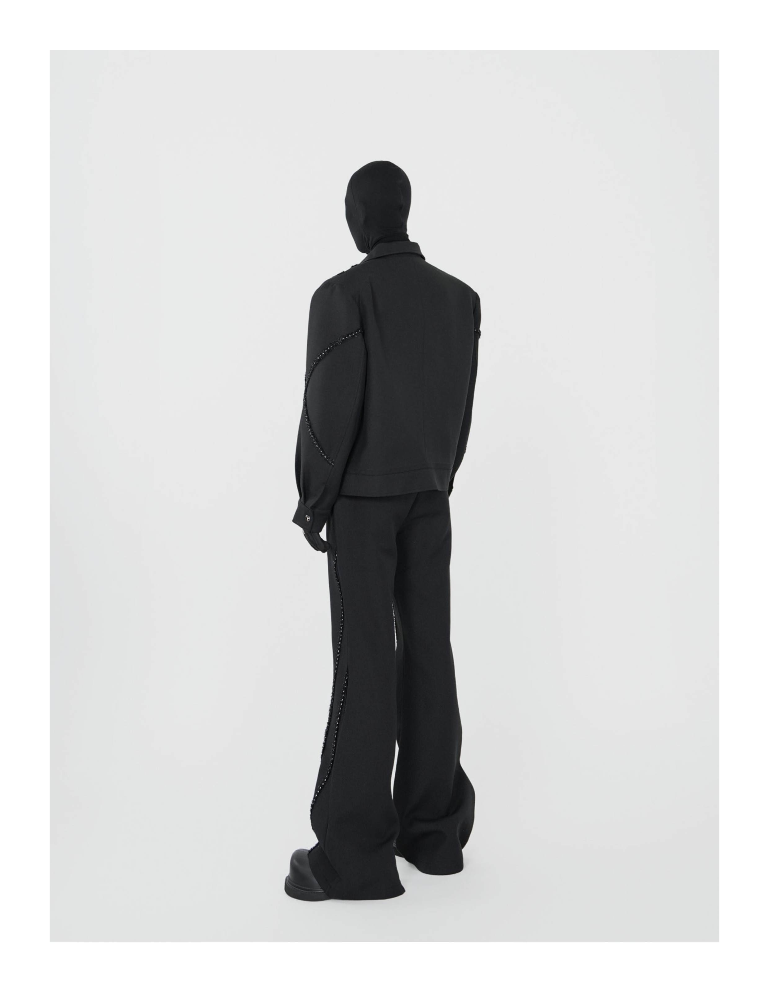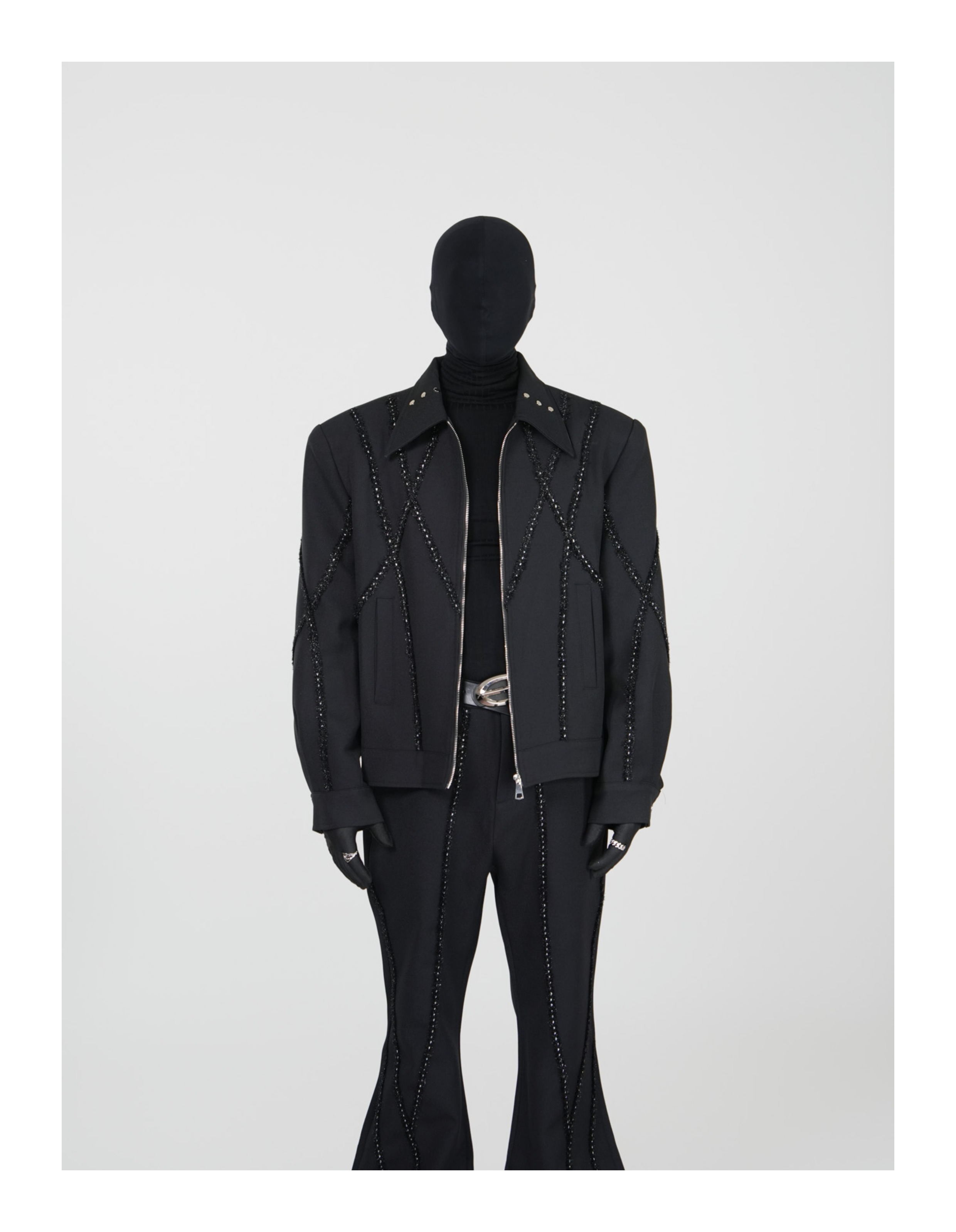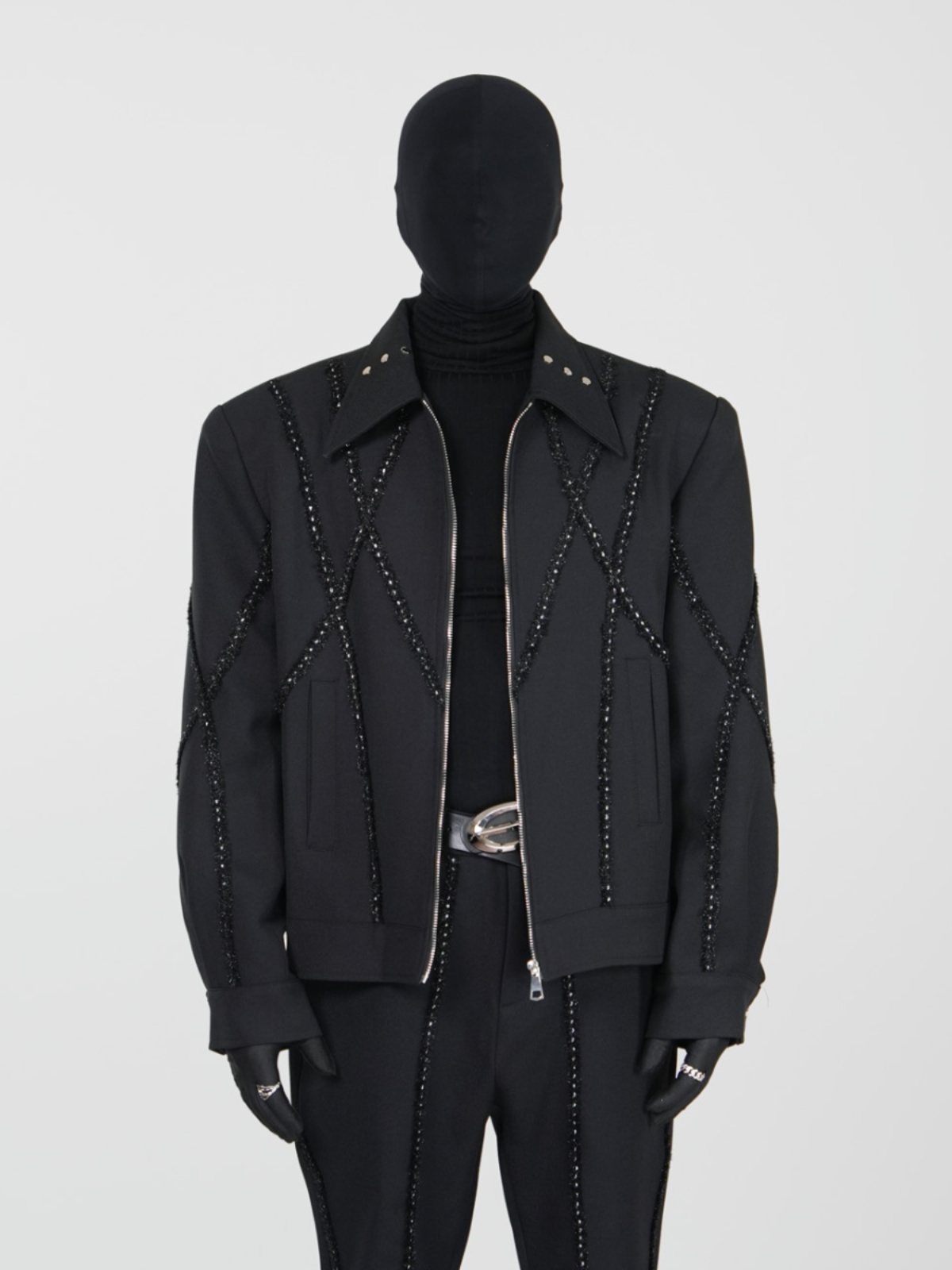 Rhinestone Zipper Jacket & Straight Flare Trousers Setup WN17350