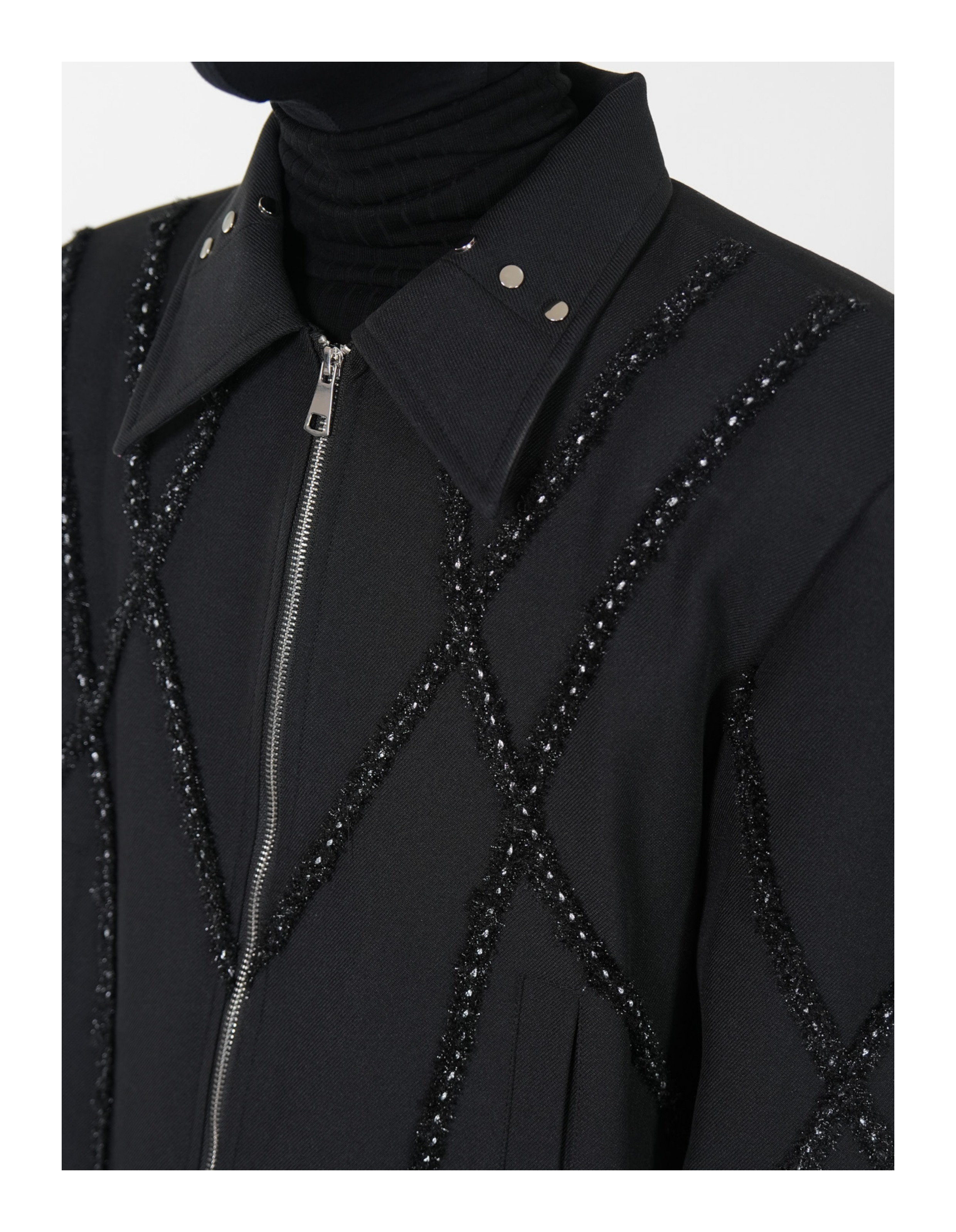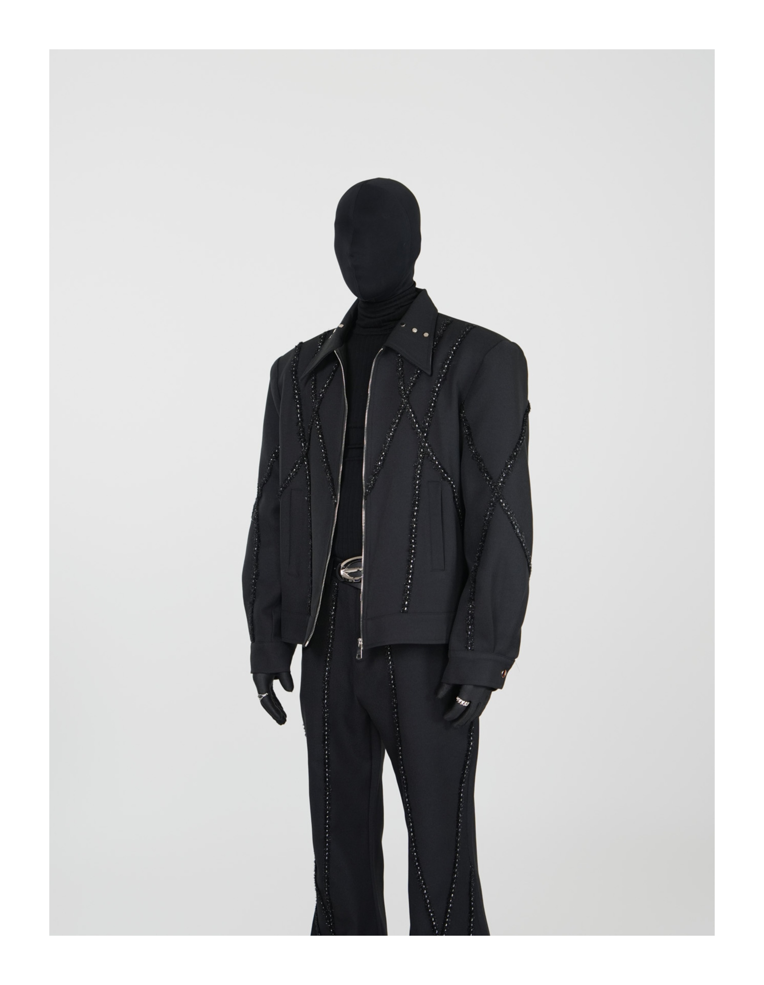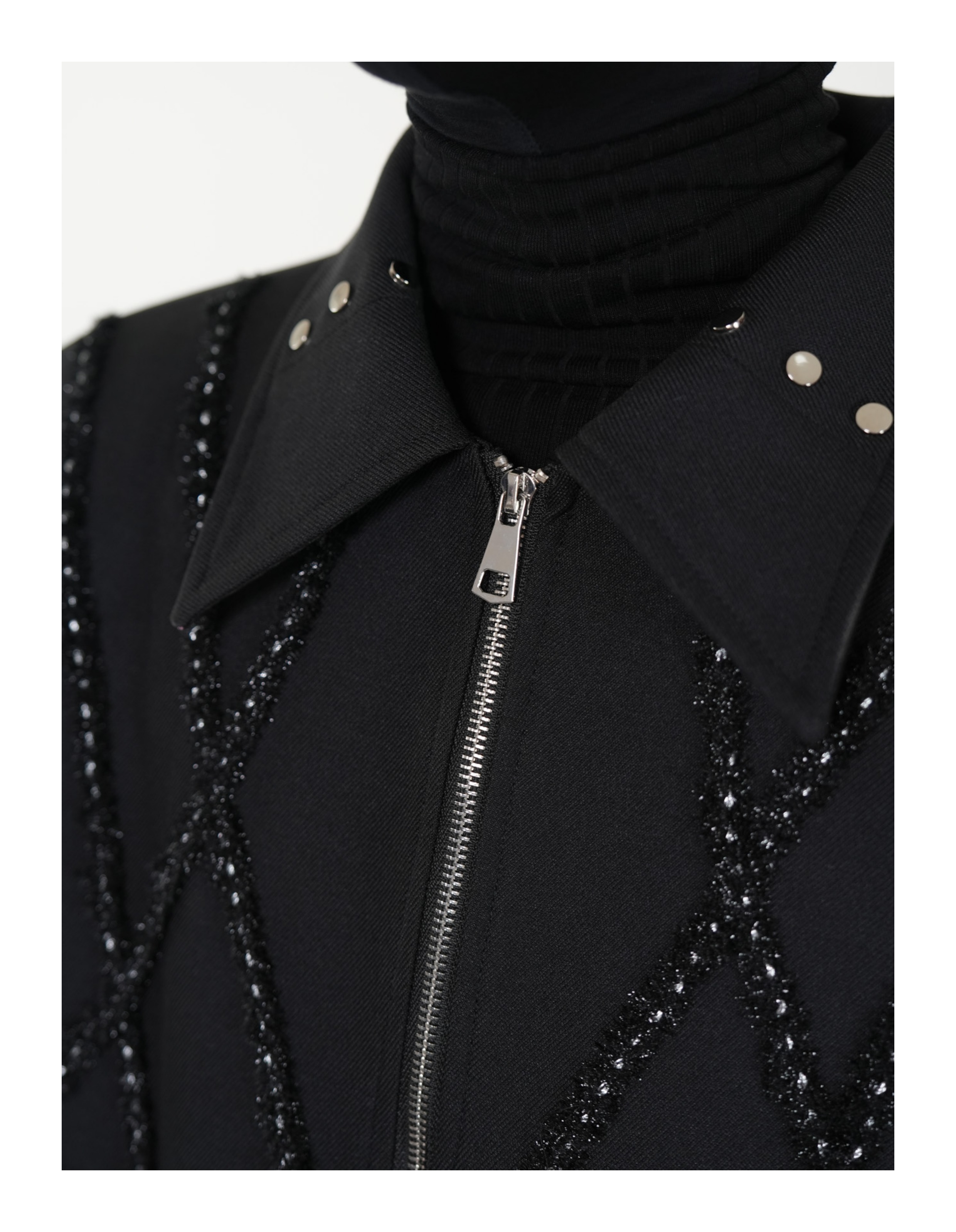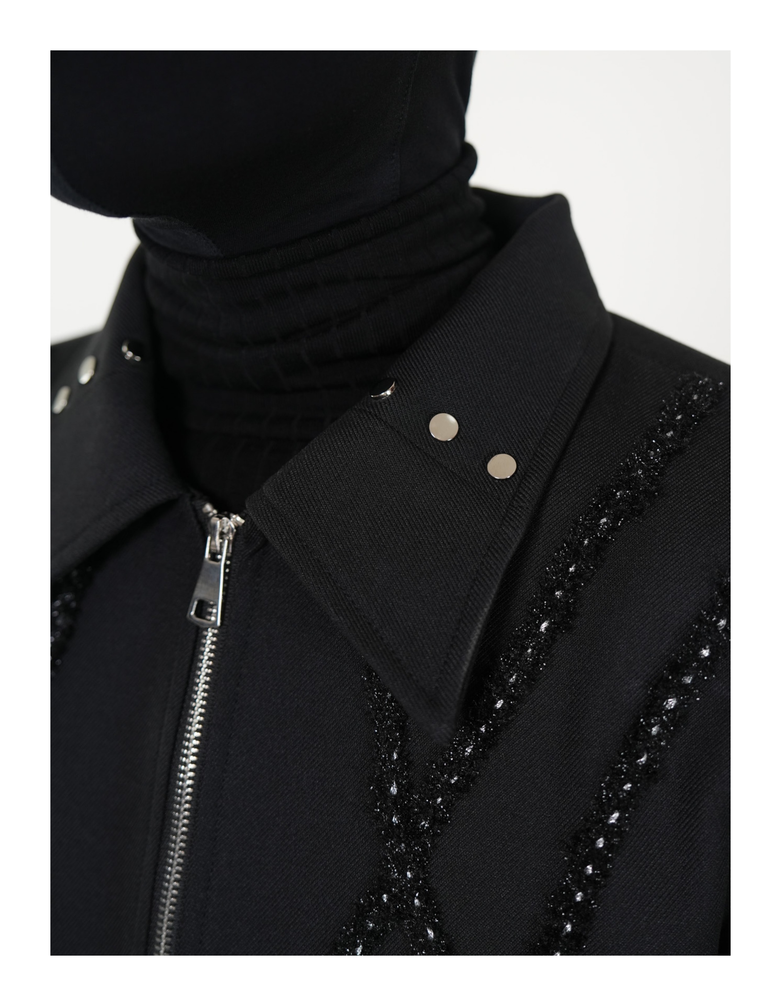Rhinestone Zipper Jacket & Straight Flare Trousers Setup WN17350