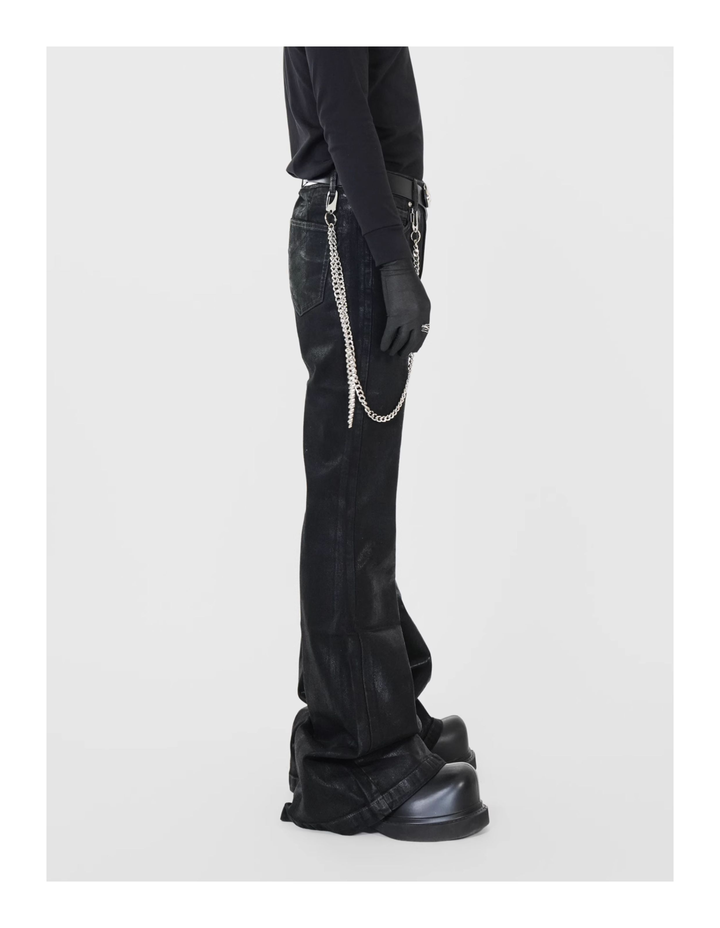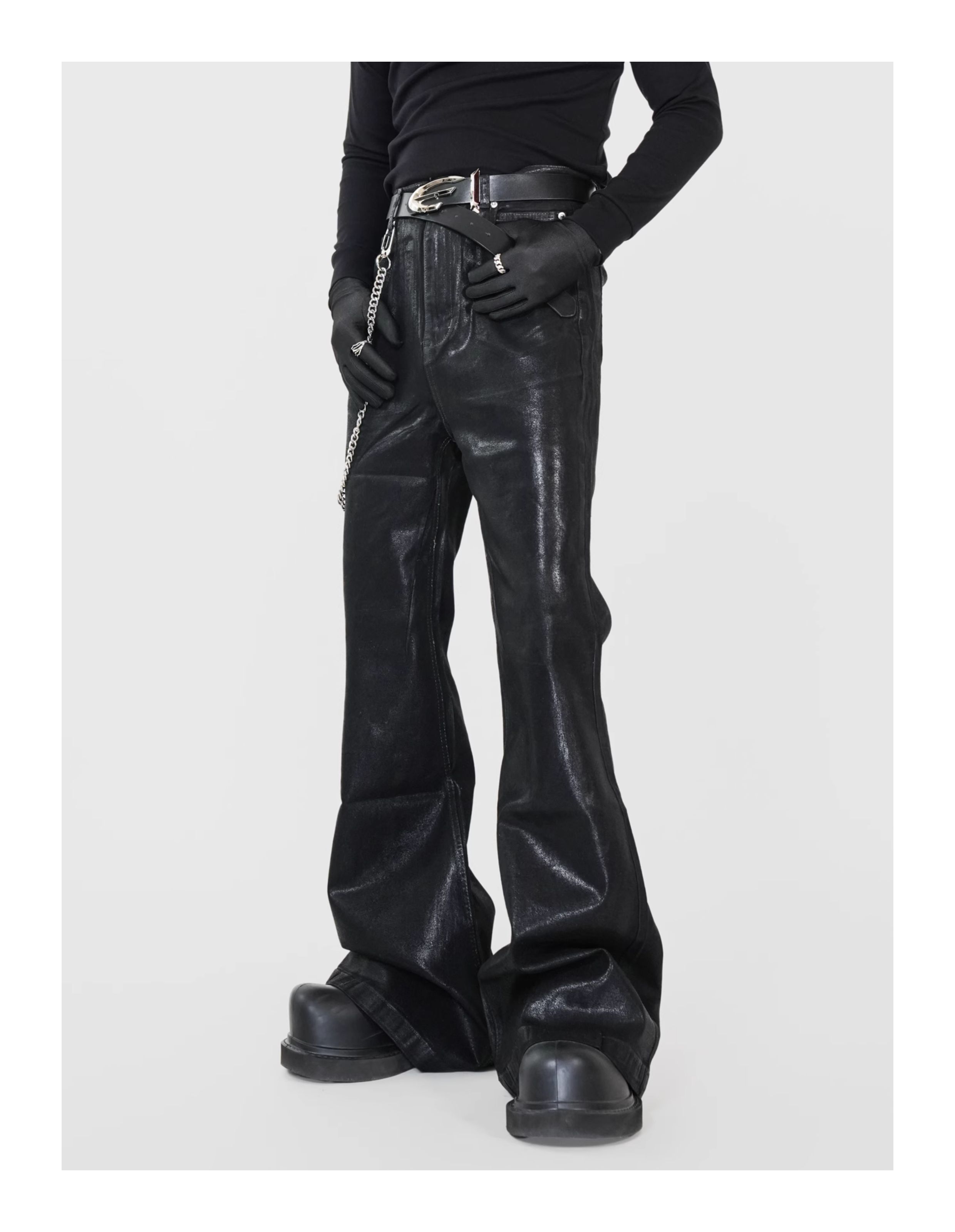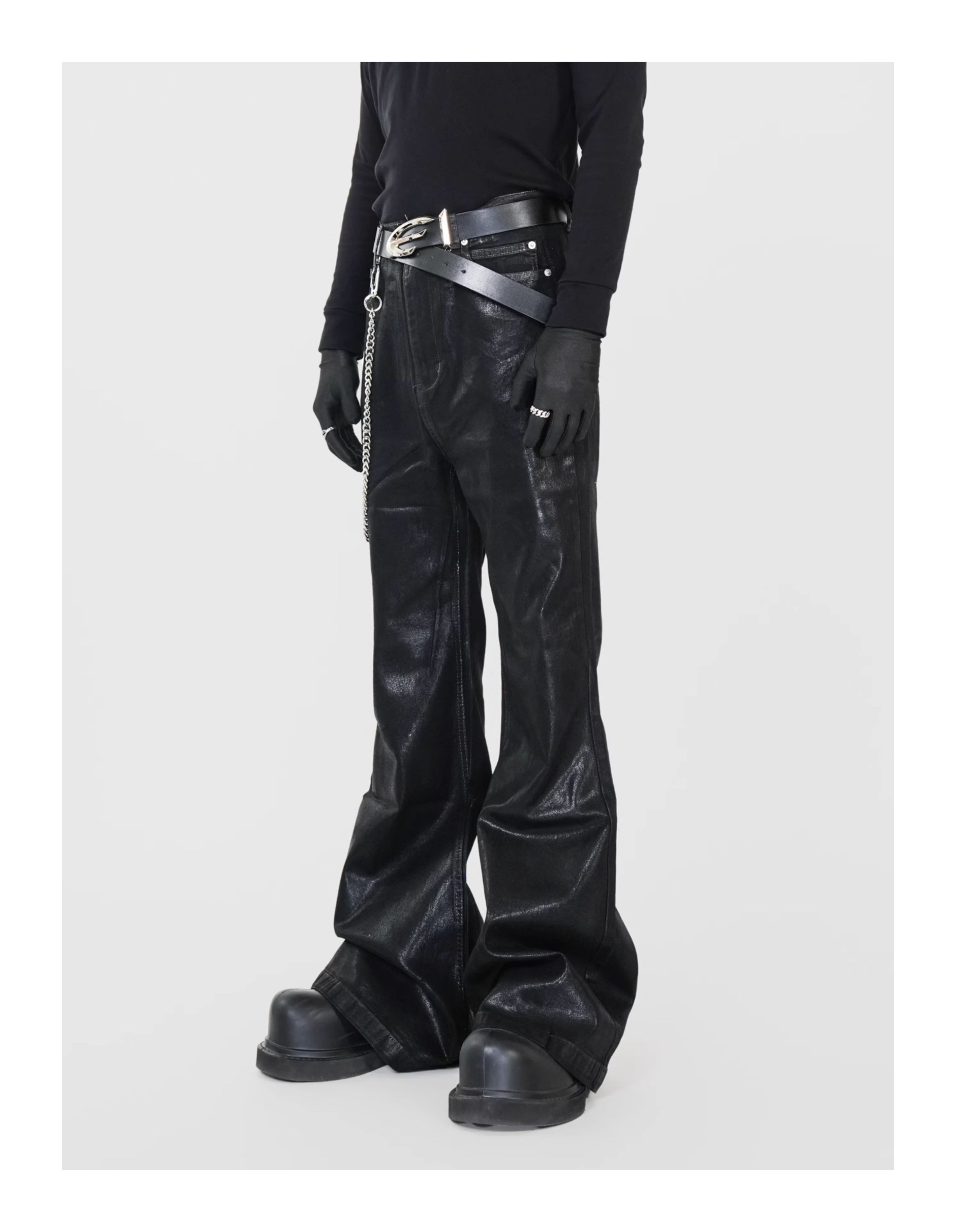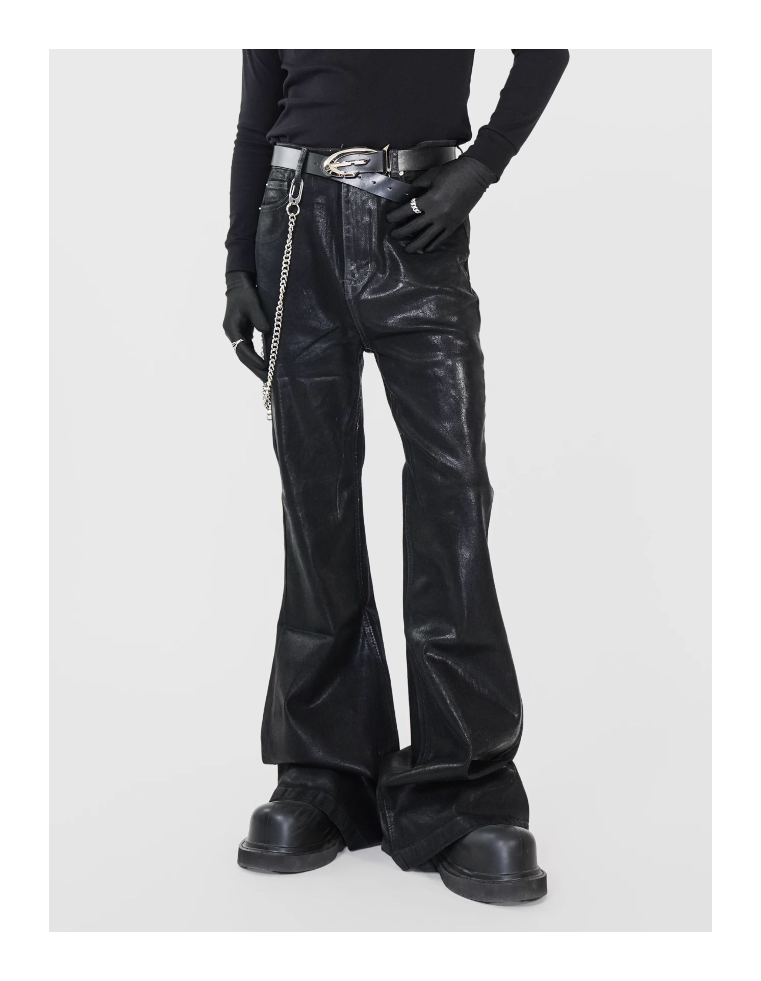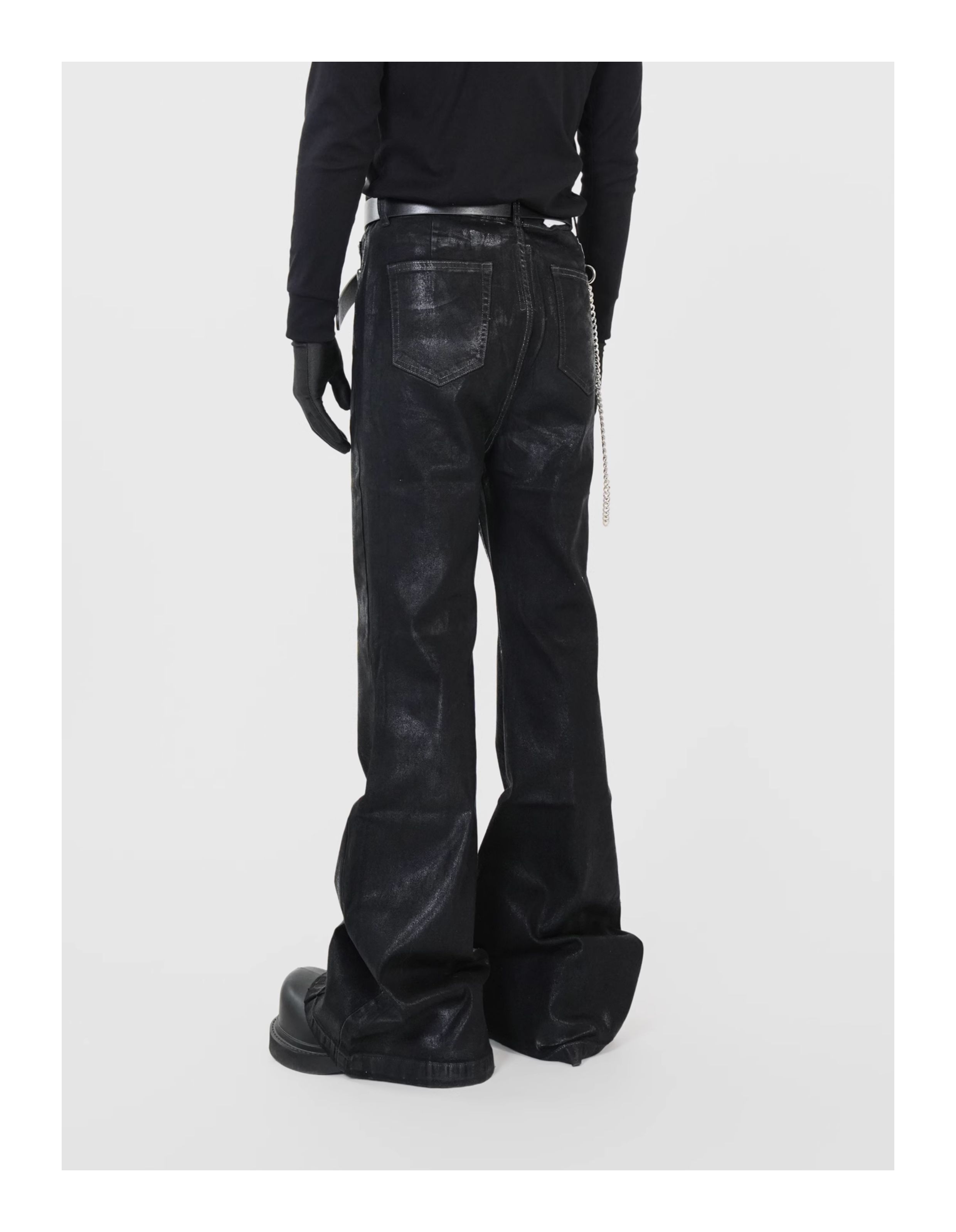 Waxed Coated Stretch Flare Denim Jeans WN17356