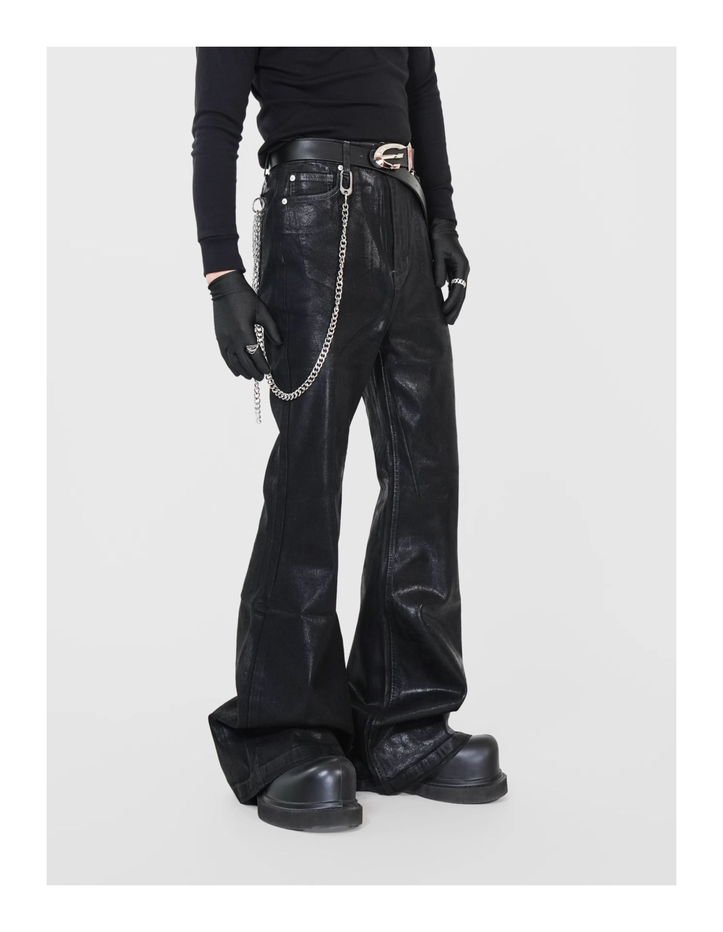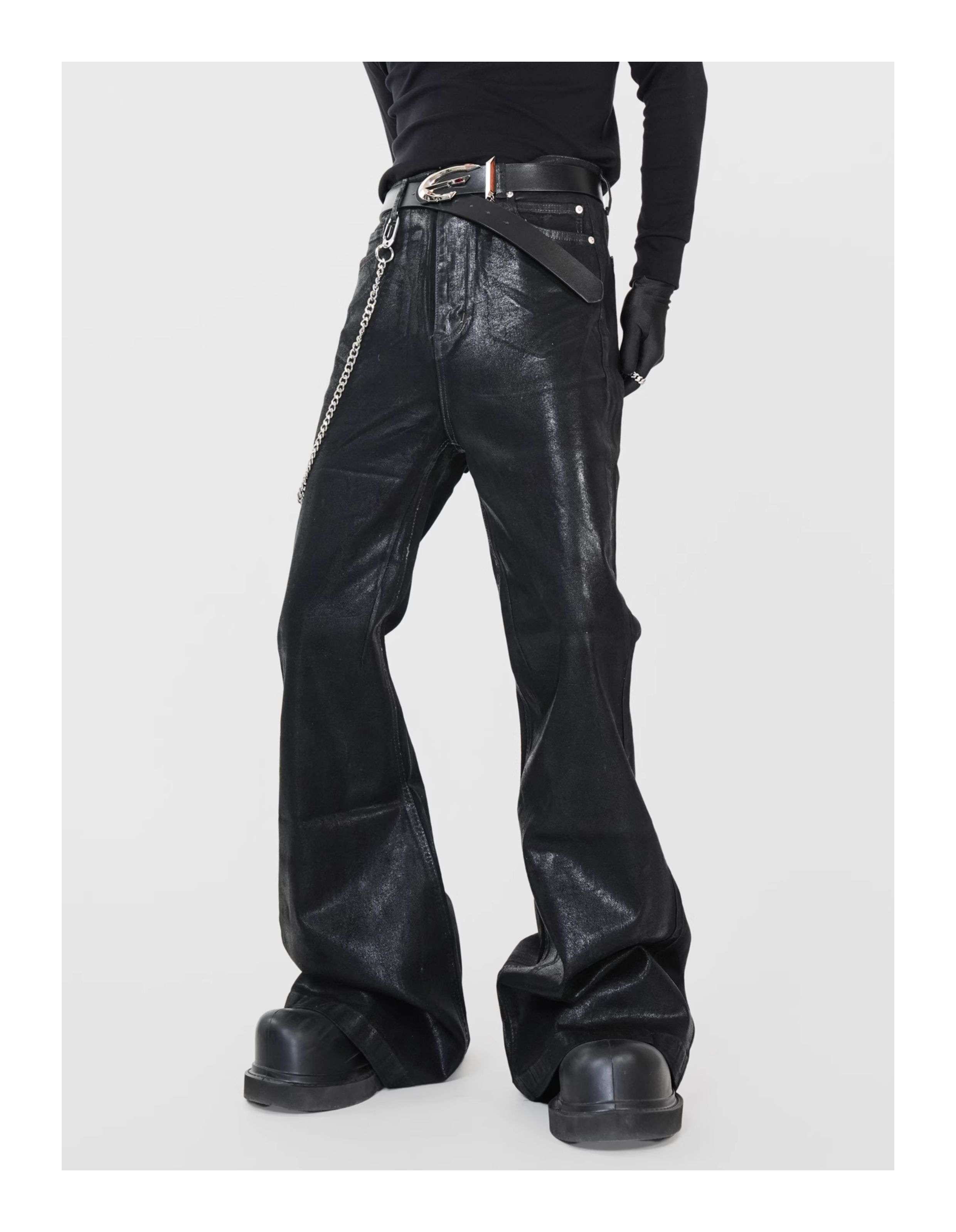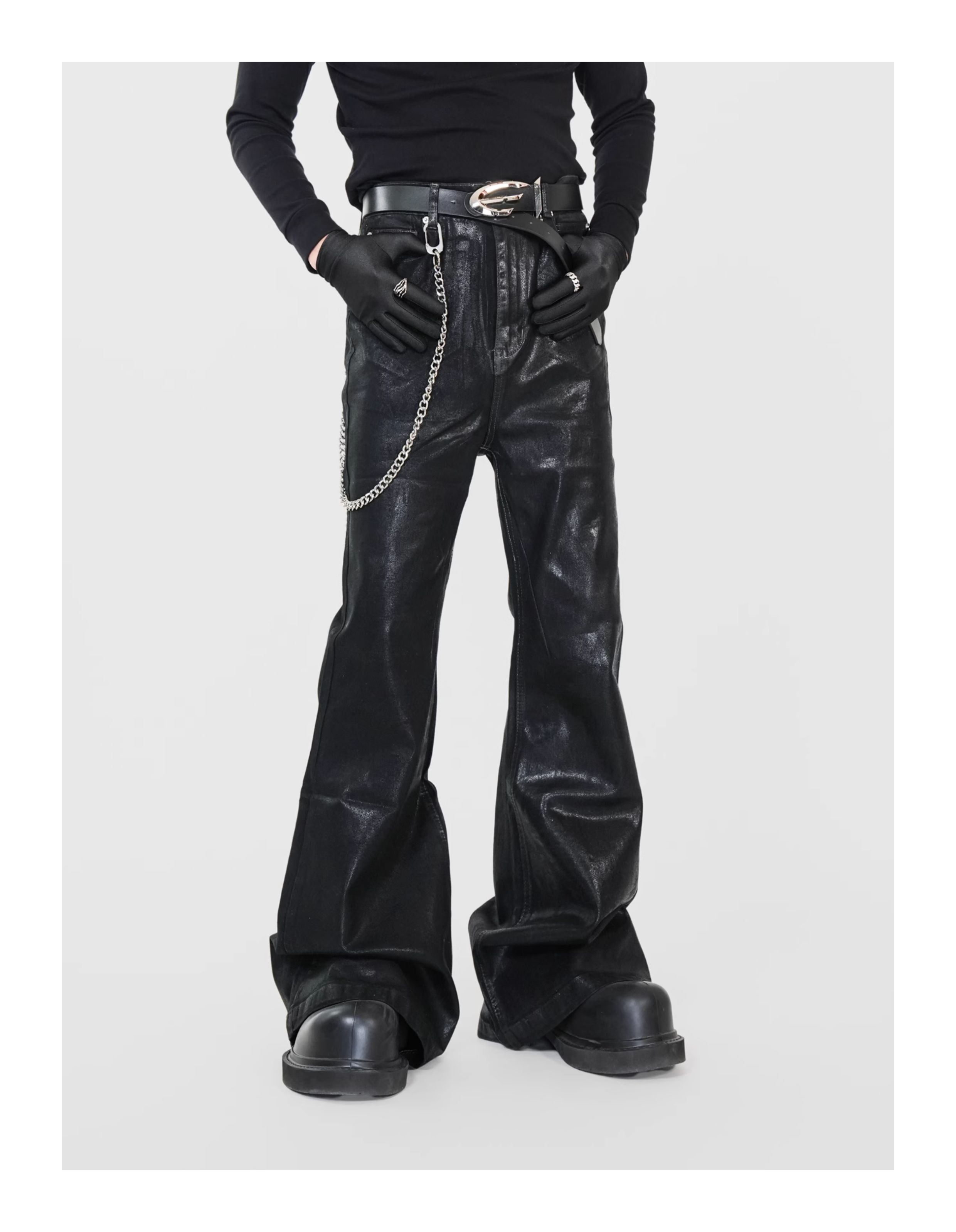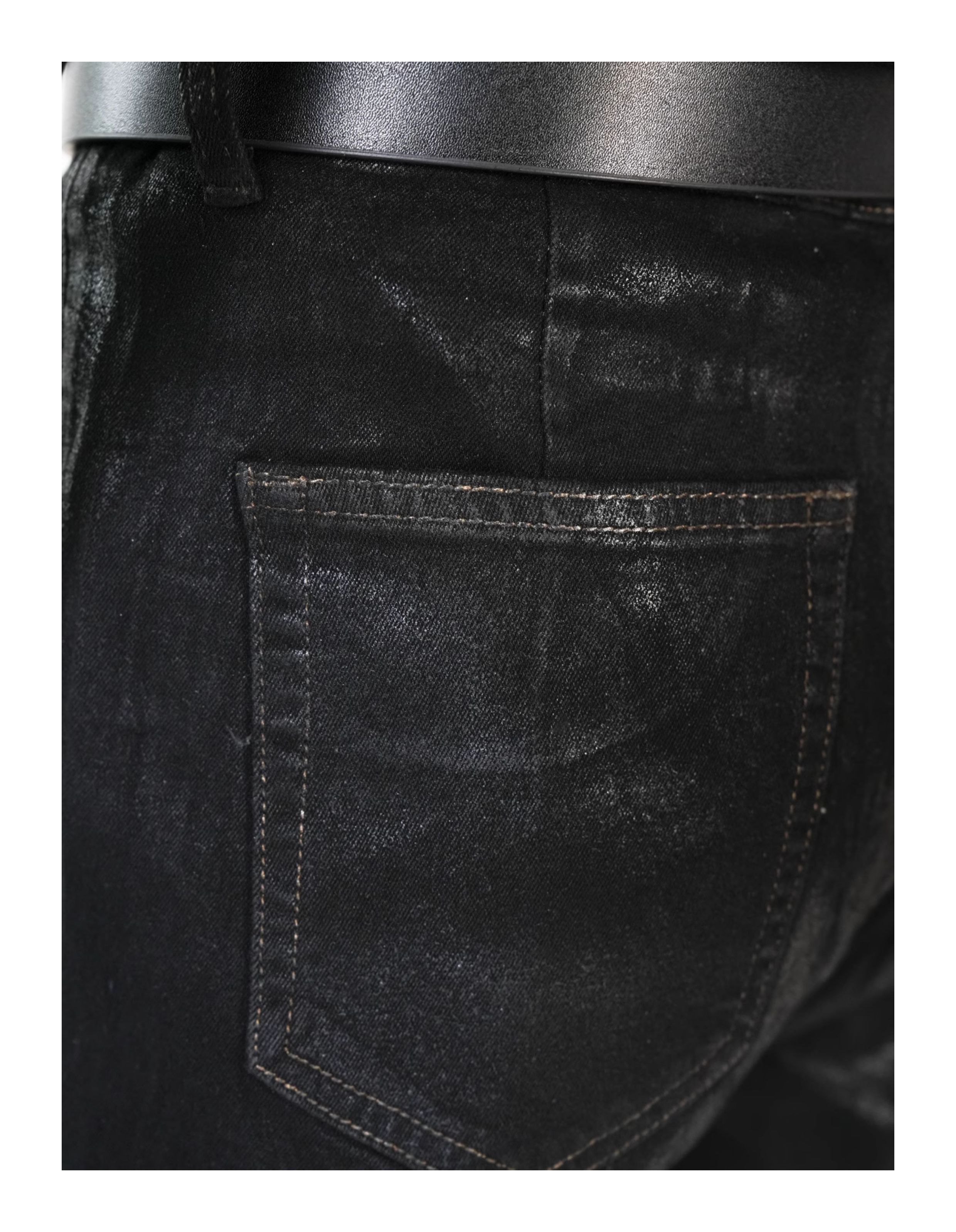 Waxed Coated Stretch Flare Denim Jeans WN17356