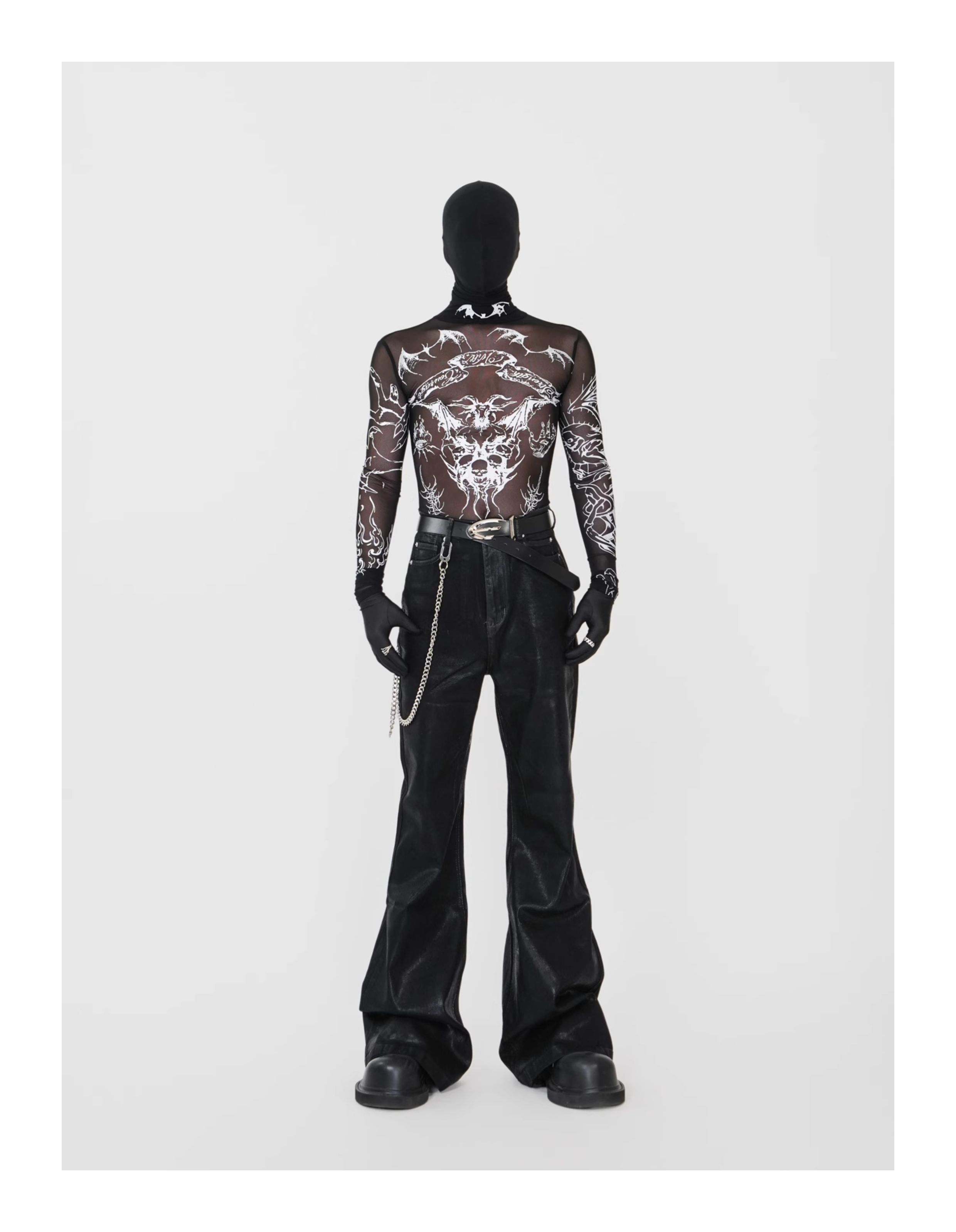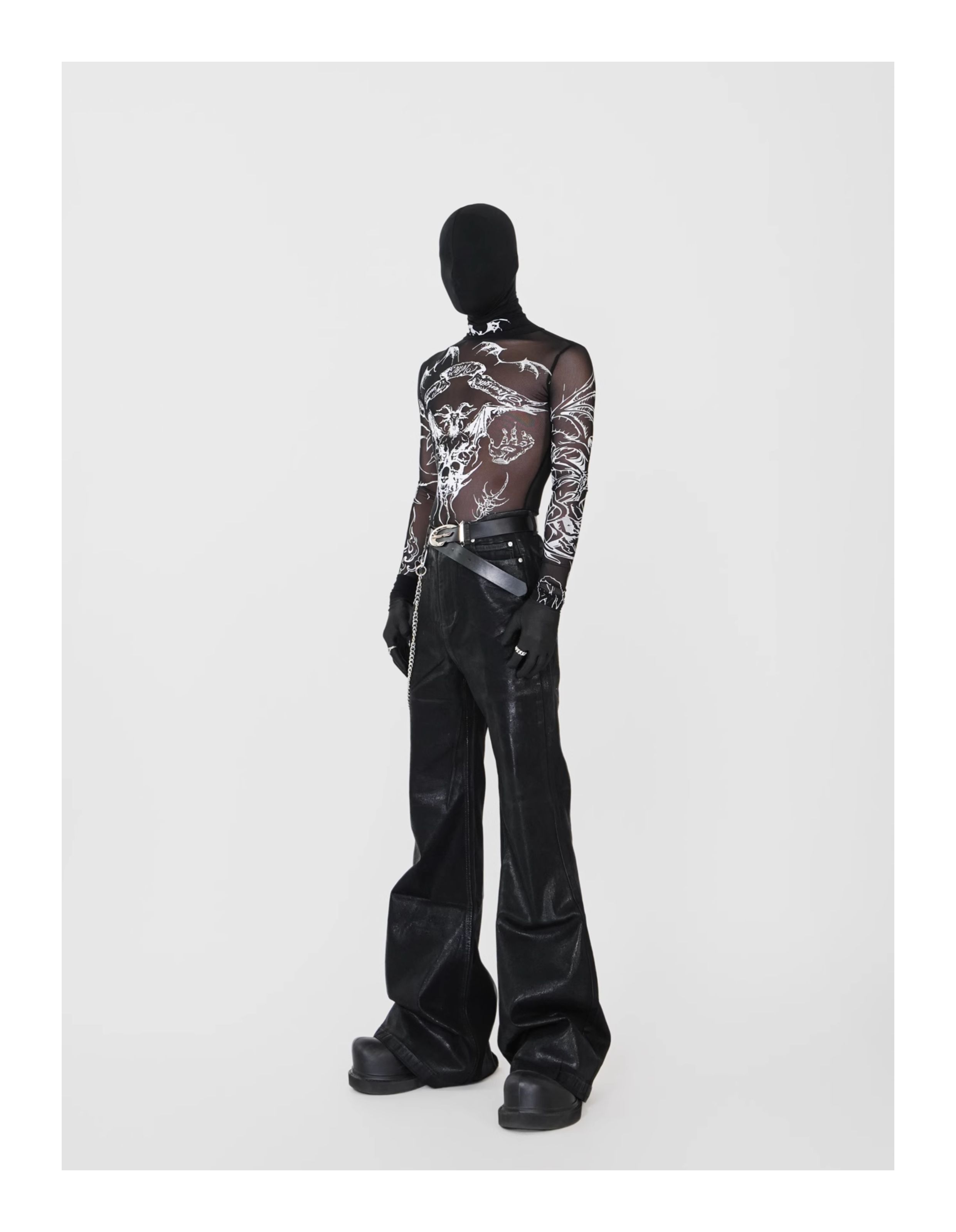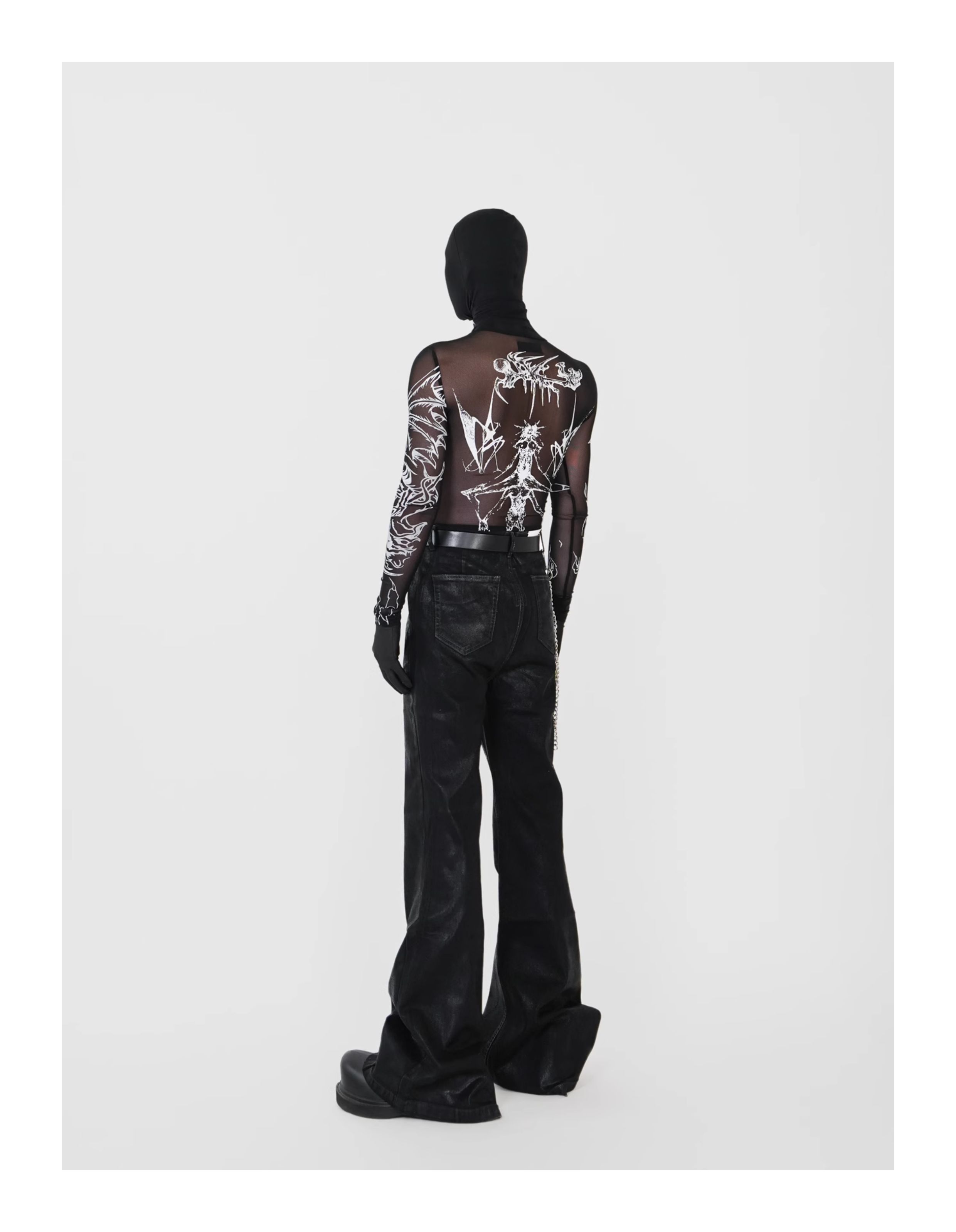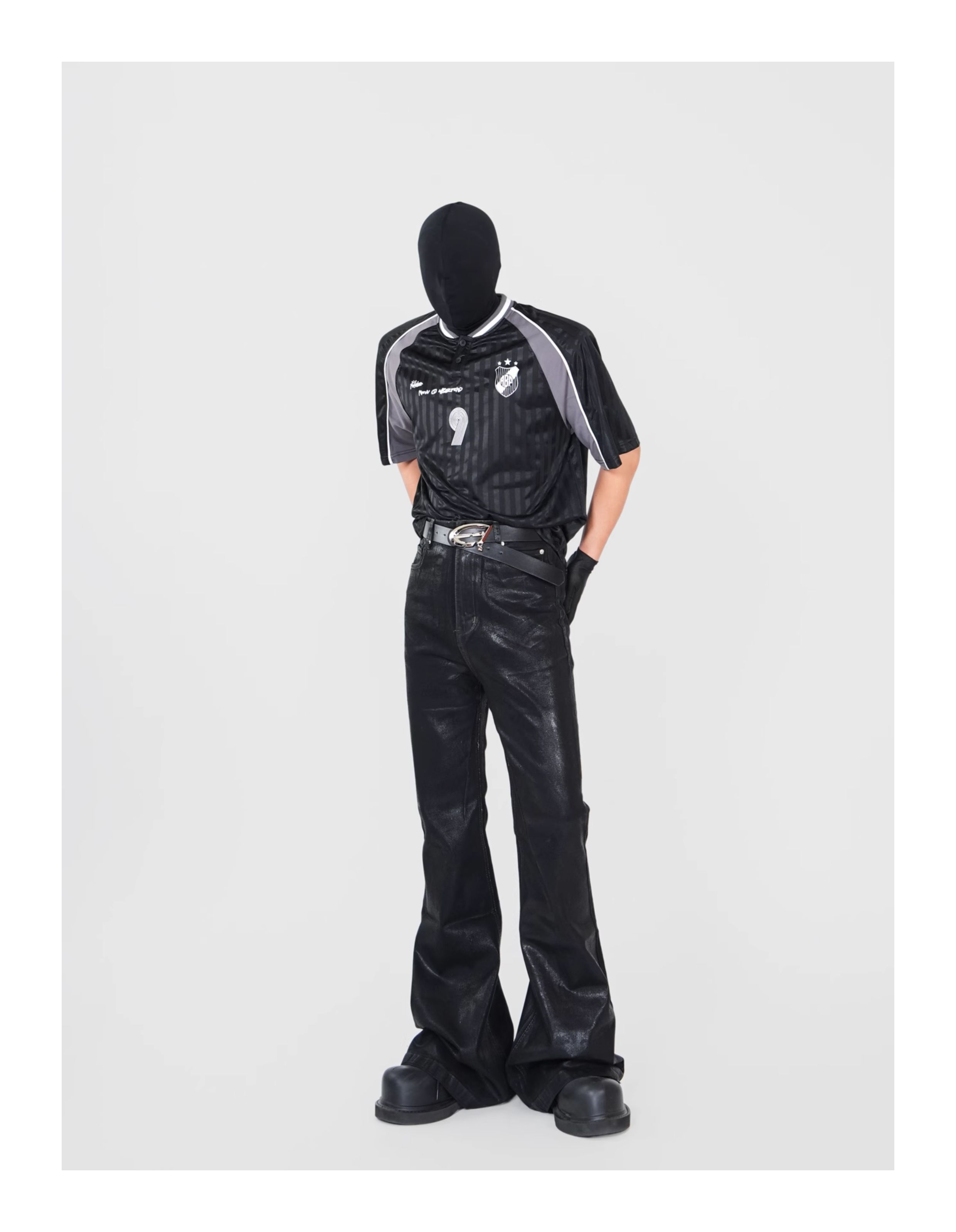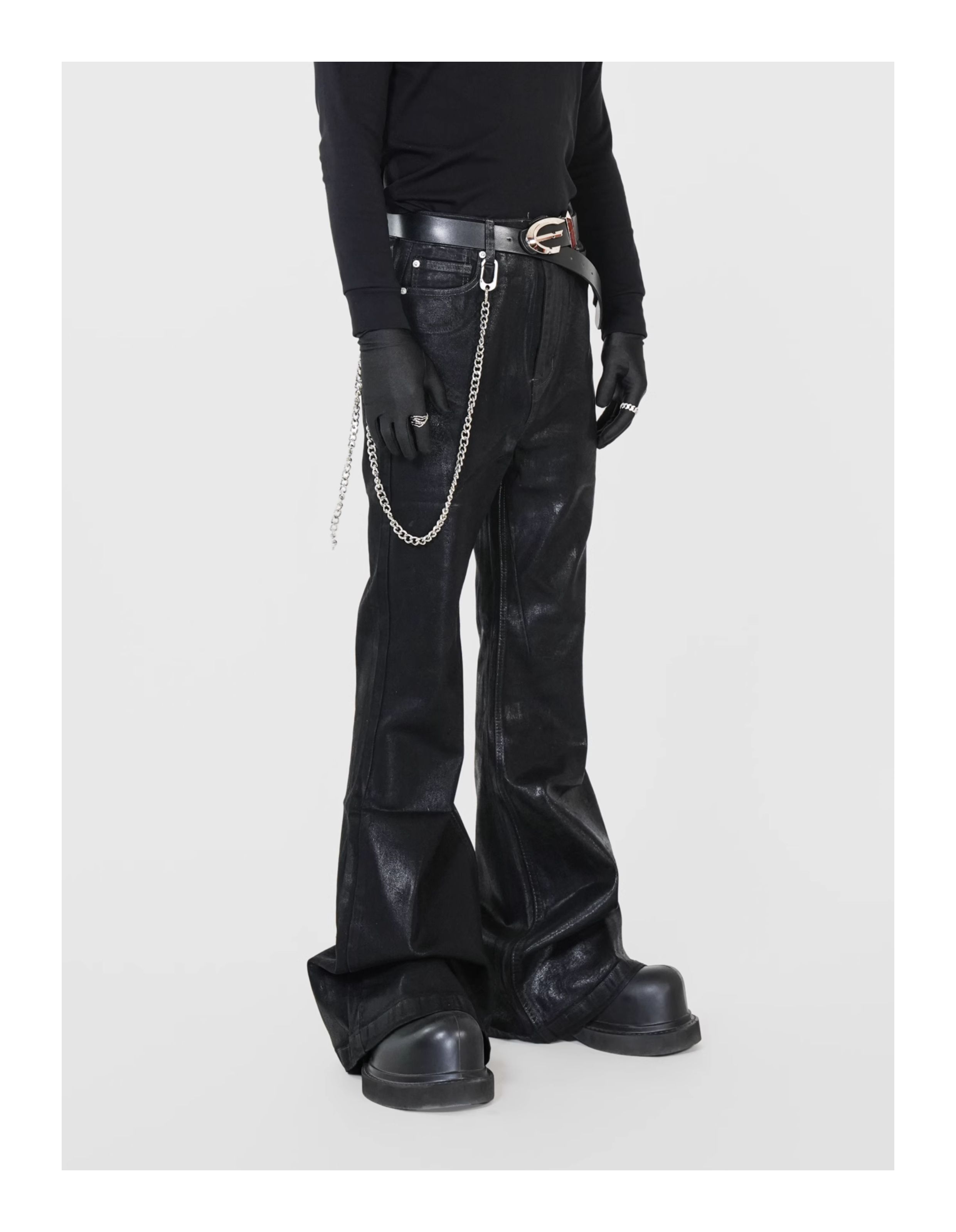 Waxed Coated Stretch Flare Denim Jeans WN17356