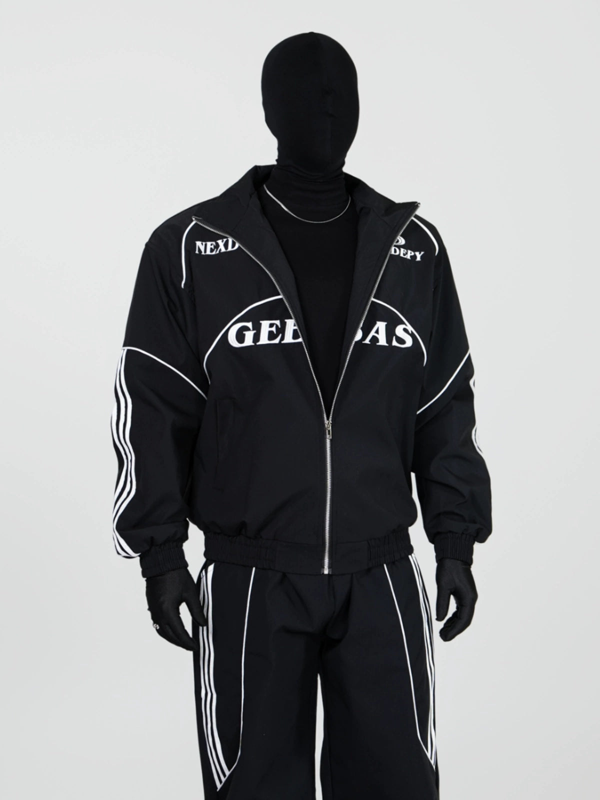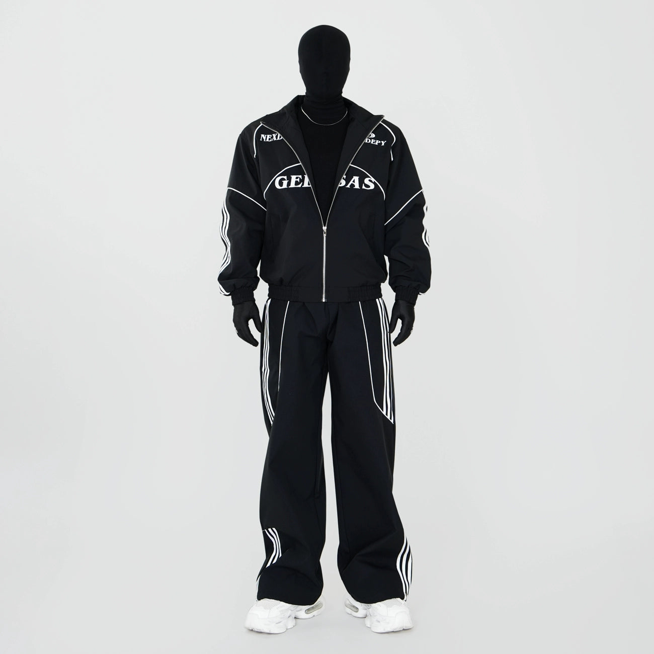 Standing-Neck Graphic Embroidery Water-Repellent Jacket & Wide Leg Pants Setup WN17367