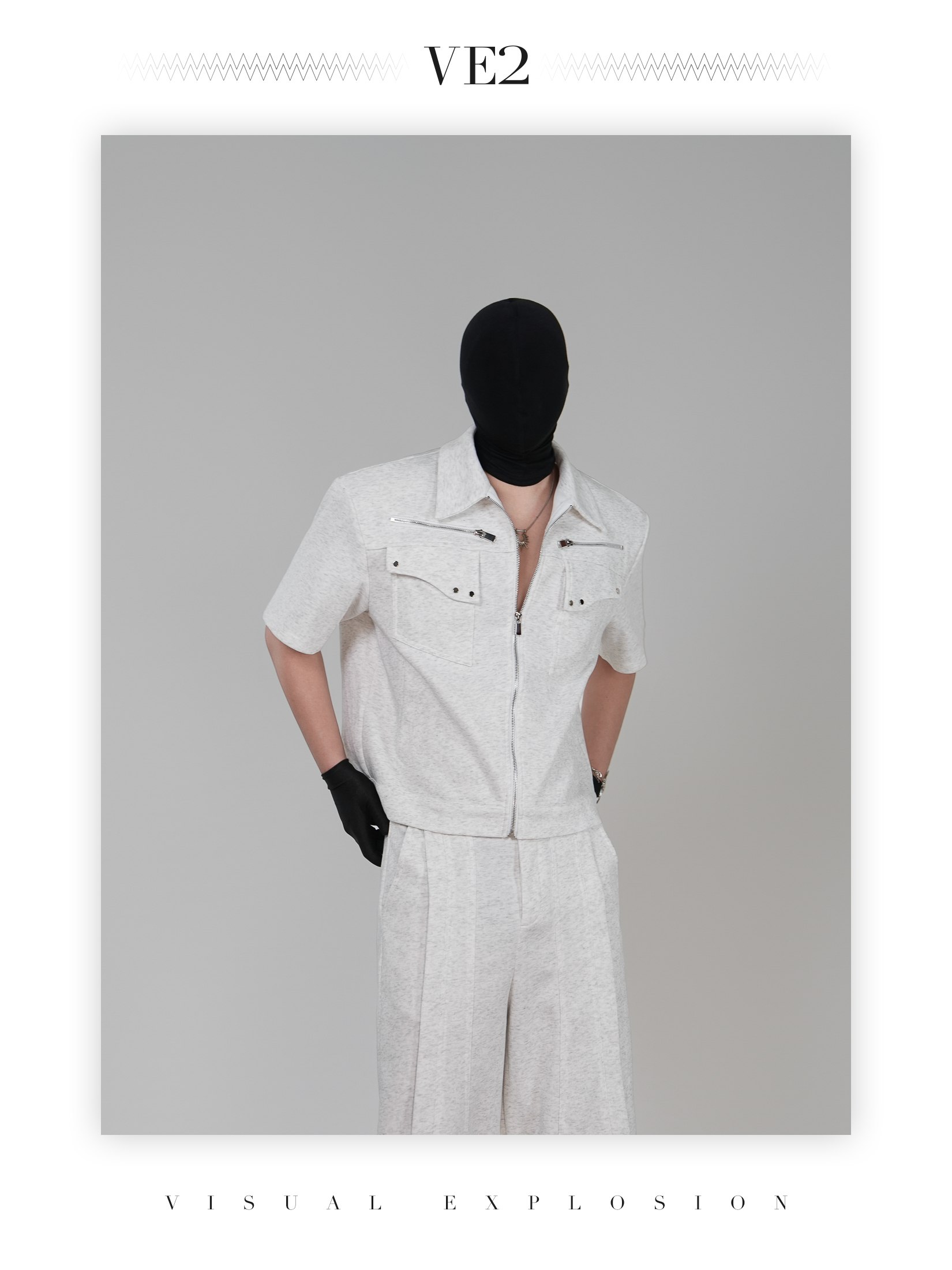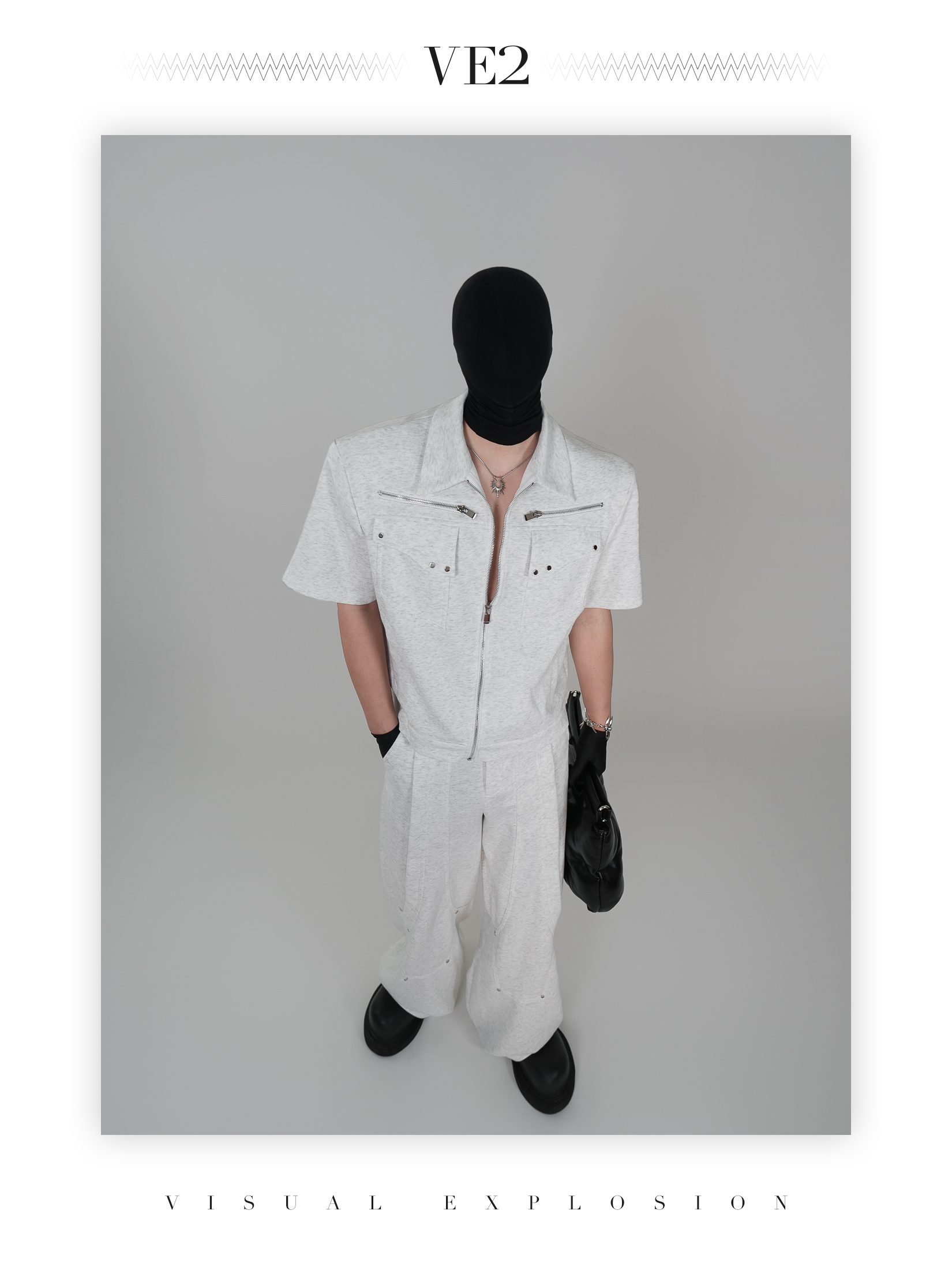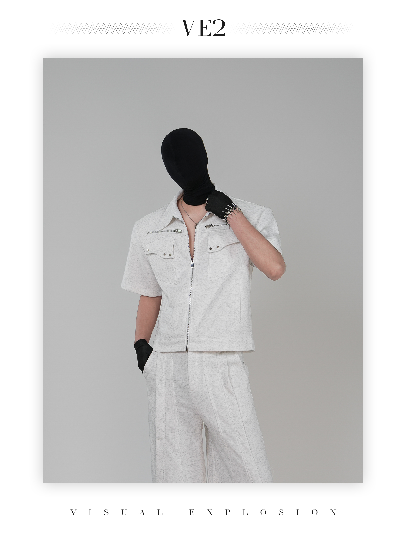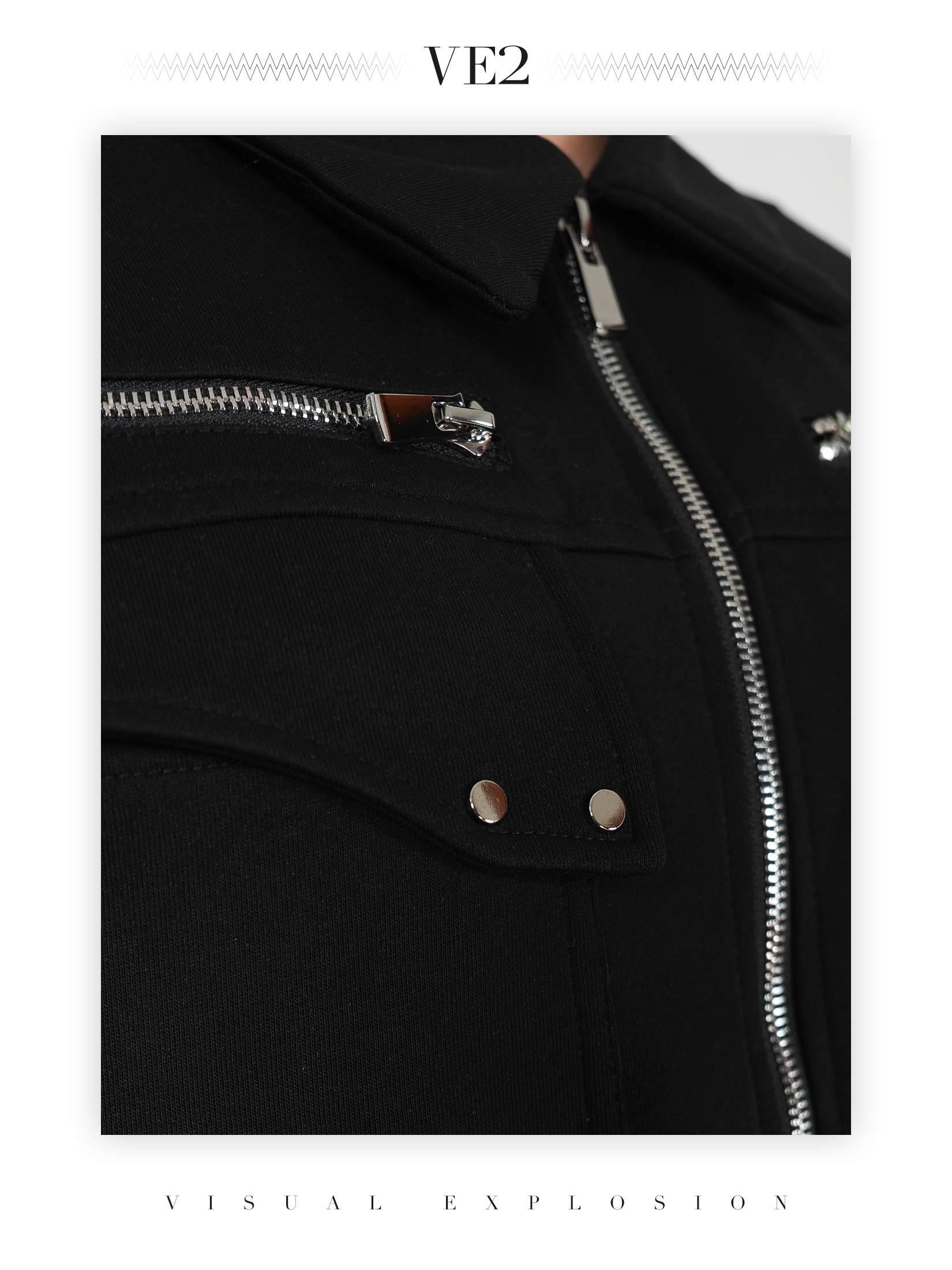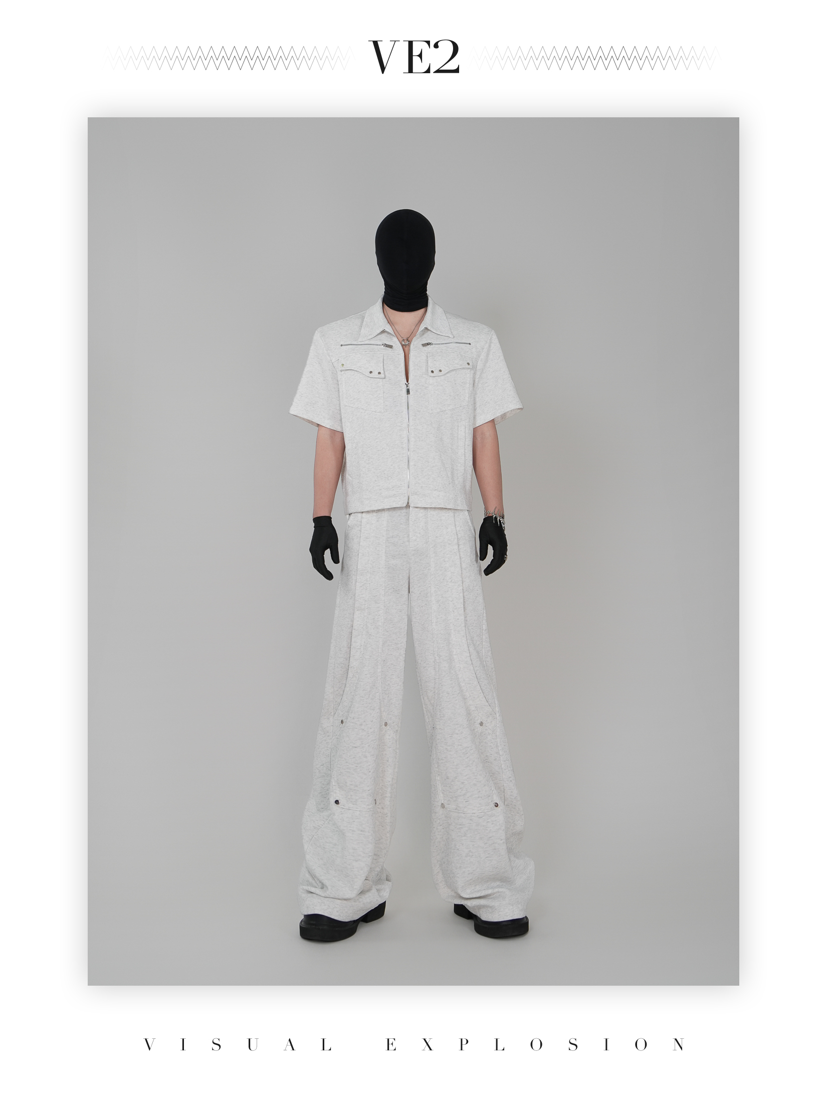 Metal Studs Zipper Jacket & Wide Leg Pants Setup WN17382