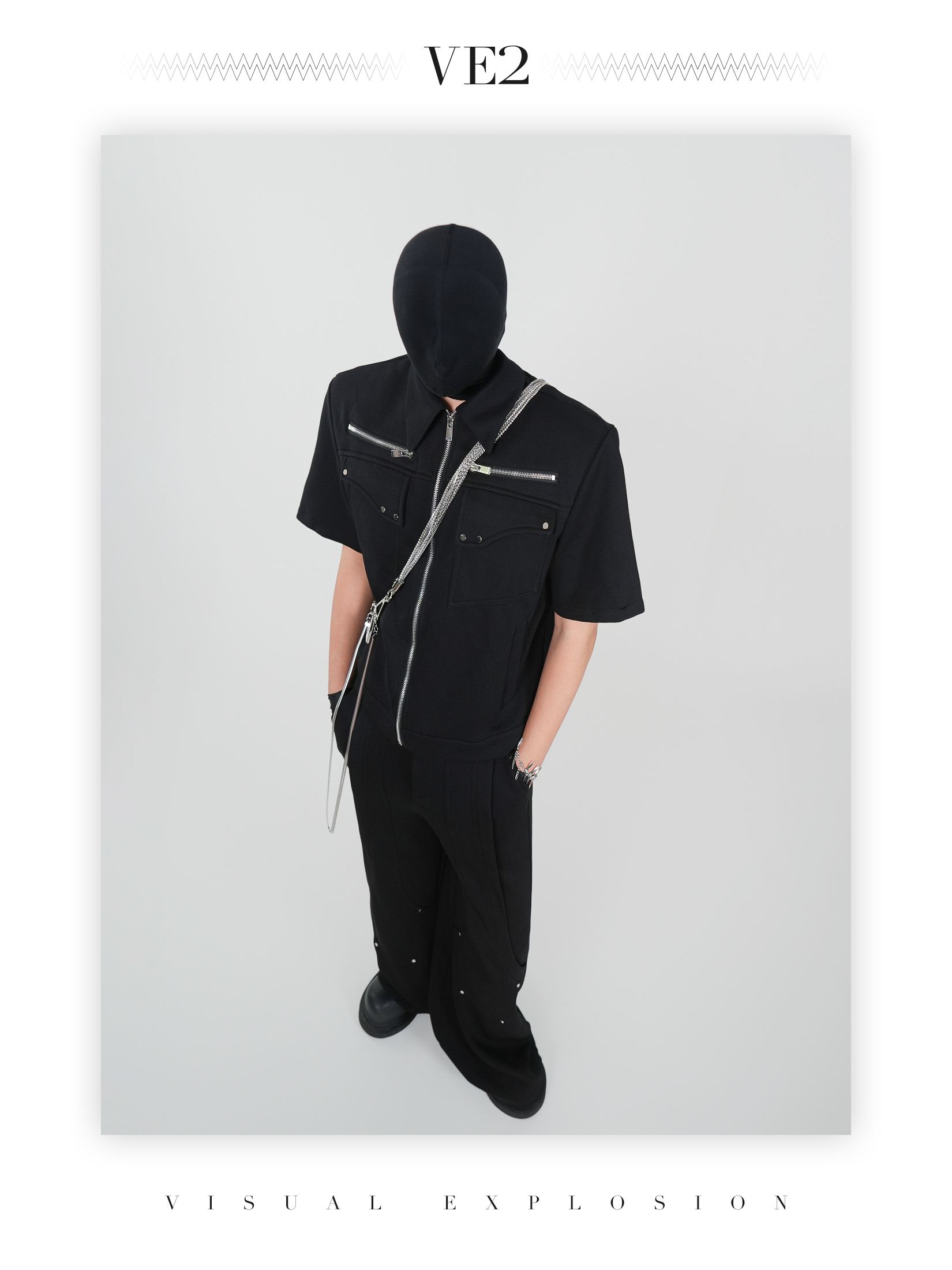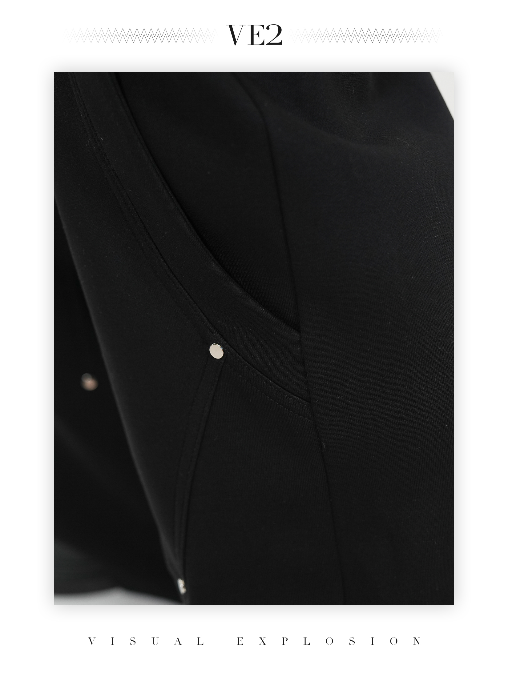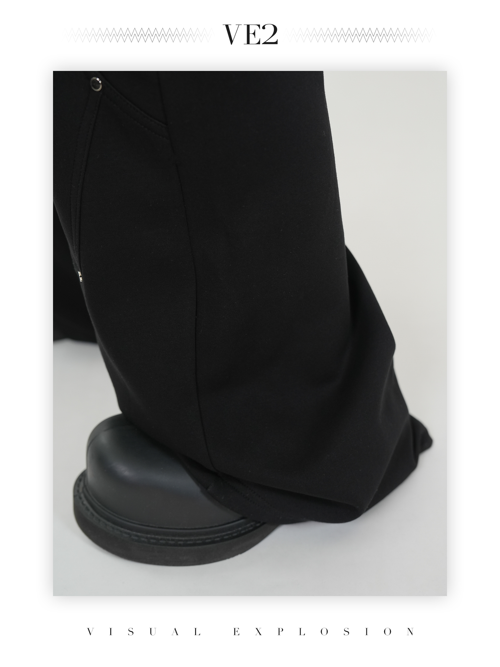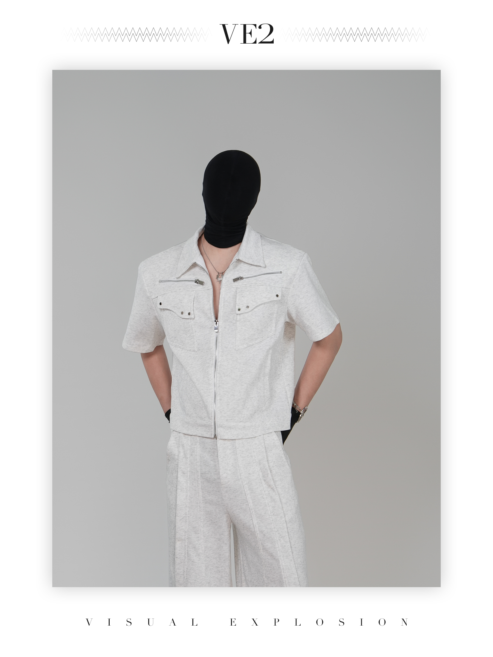 Metal Studs Zipper Jacket & Wide Leg Pants Setup WN17382