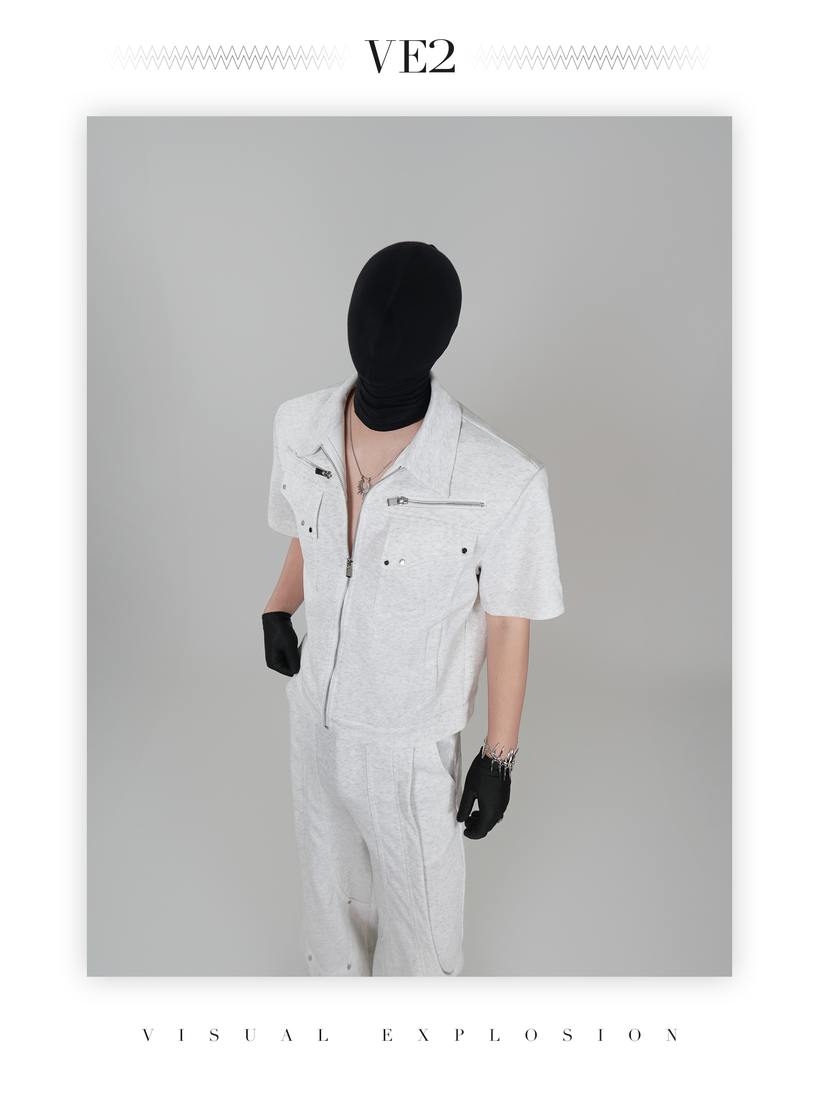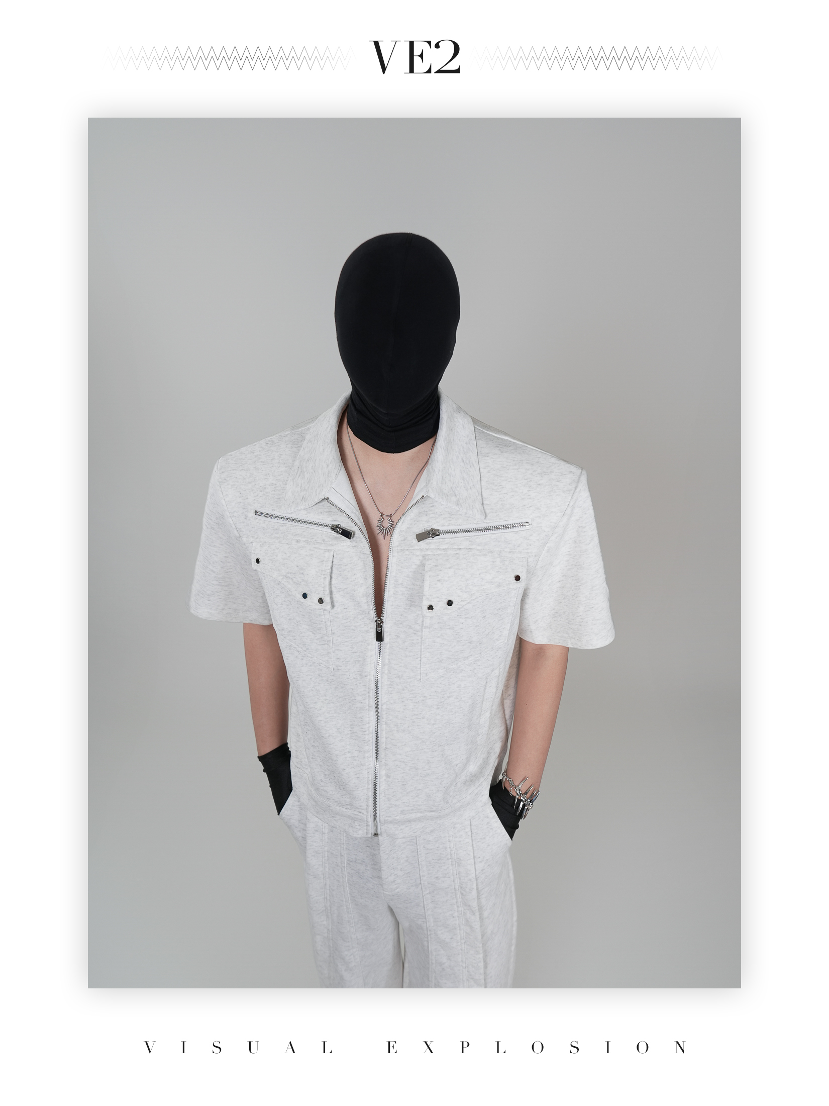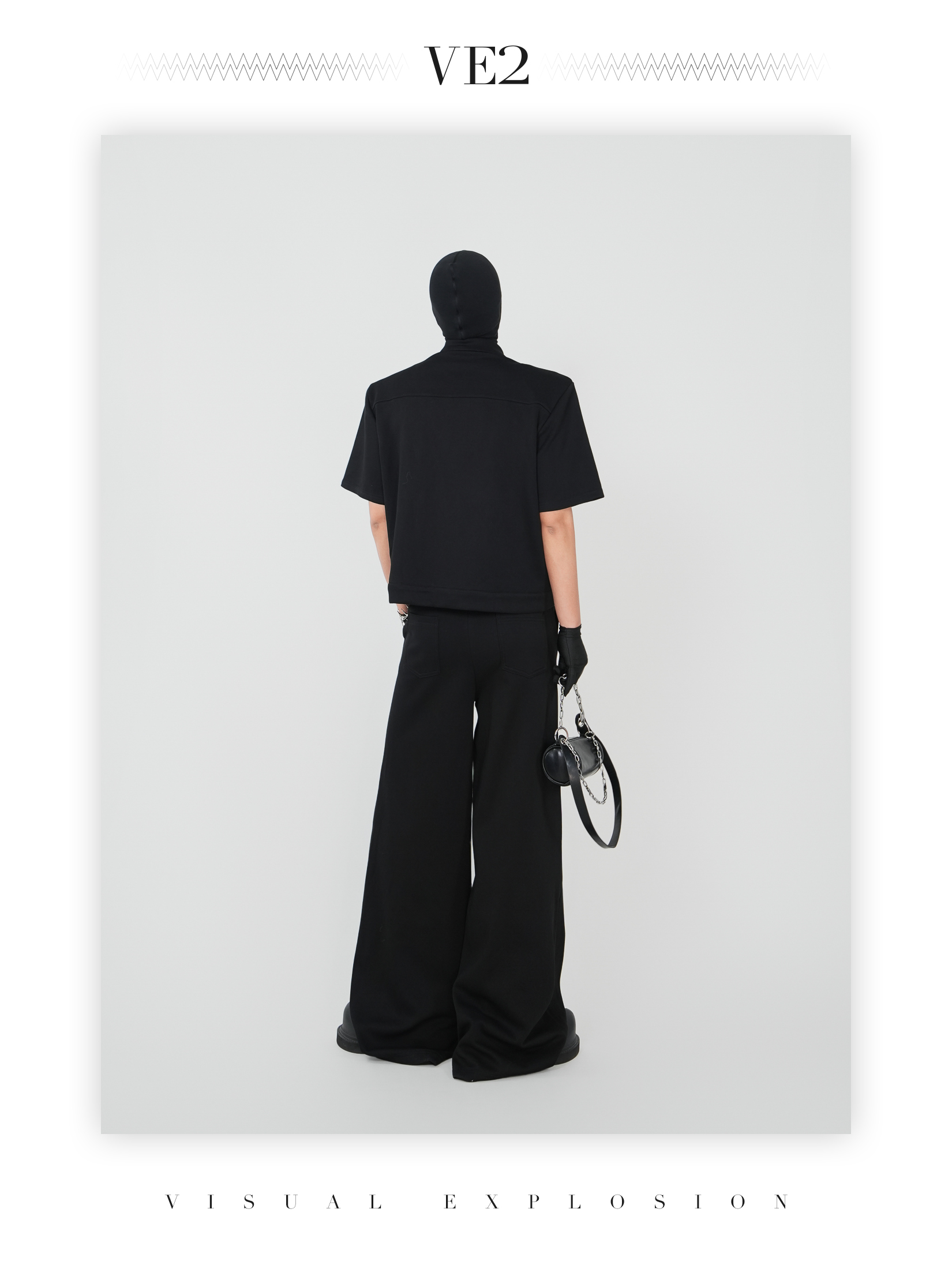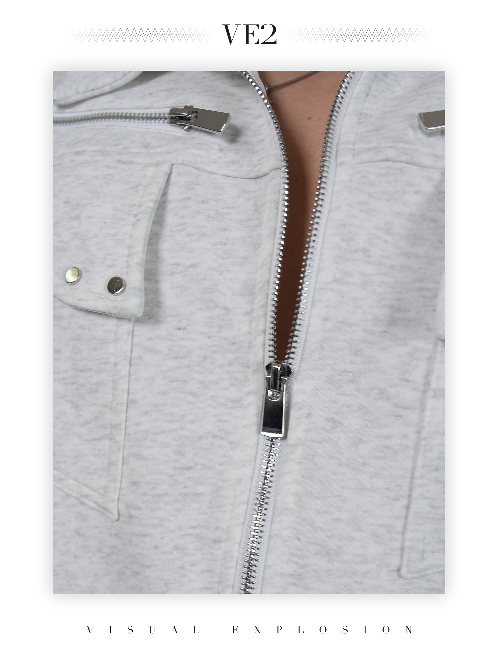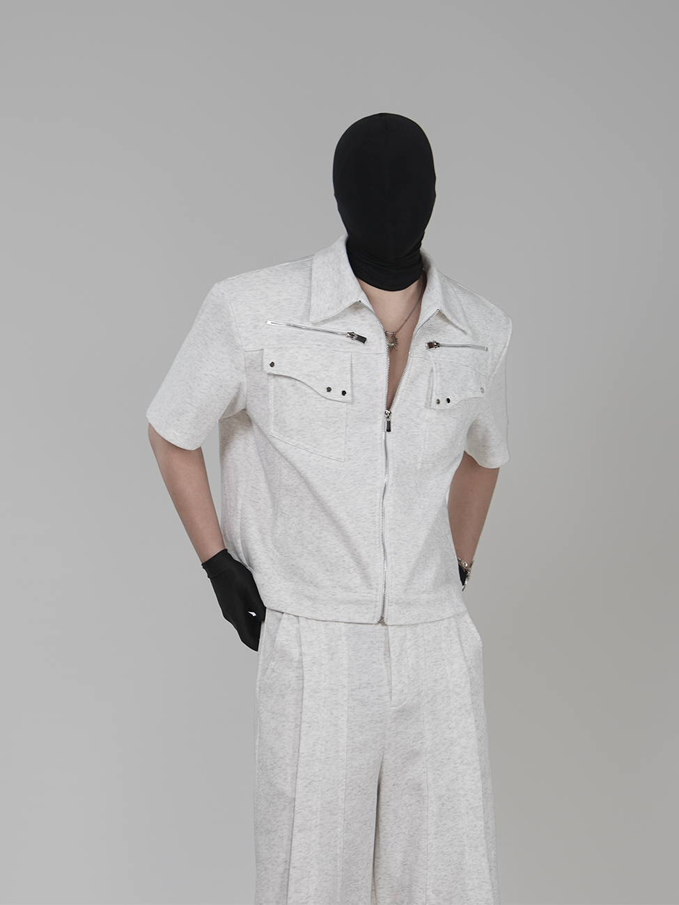 Metal Studs Zipper Jacket & Wide Leg Pants Setup WN17382