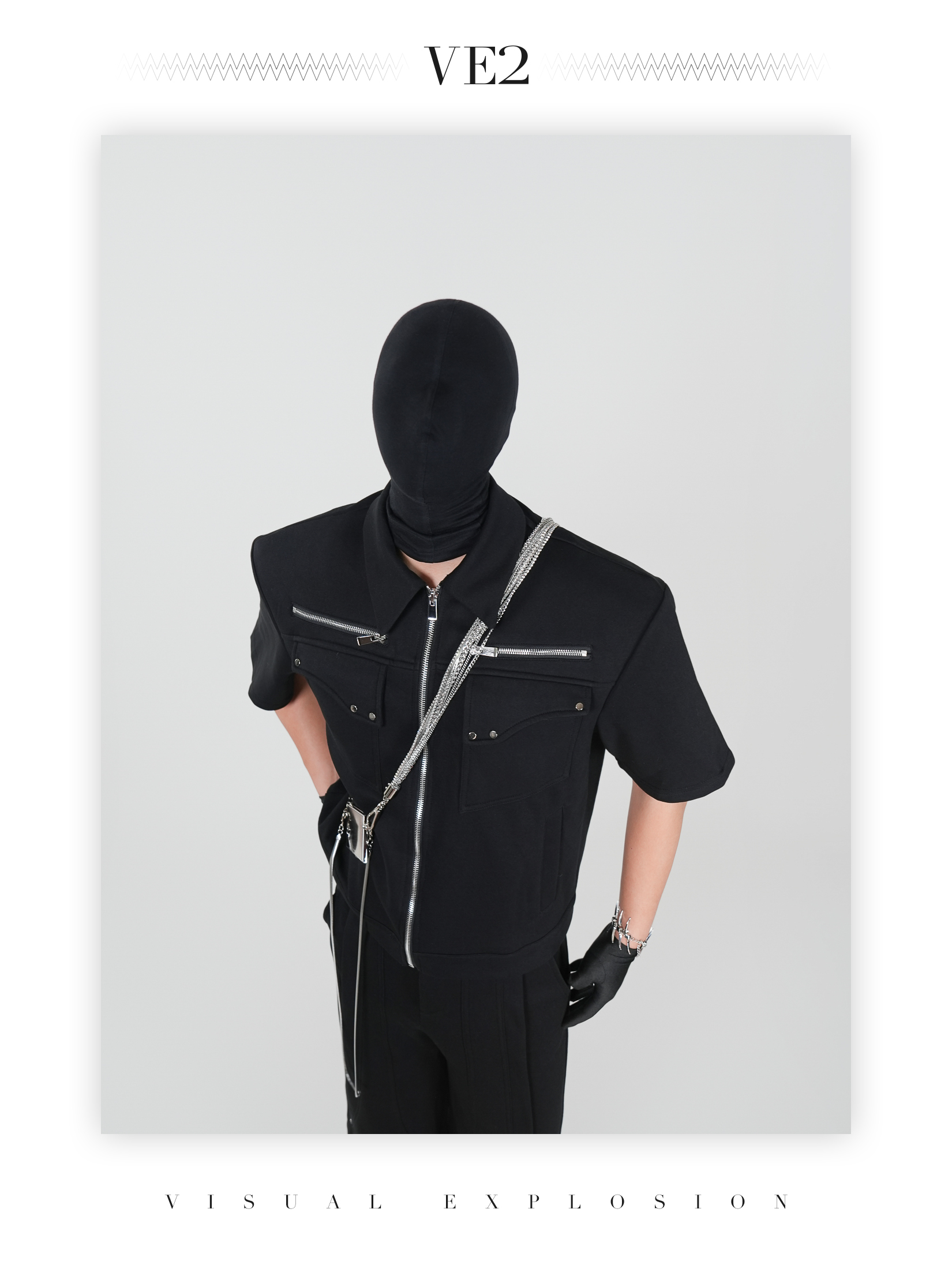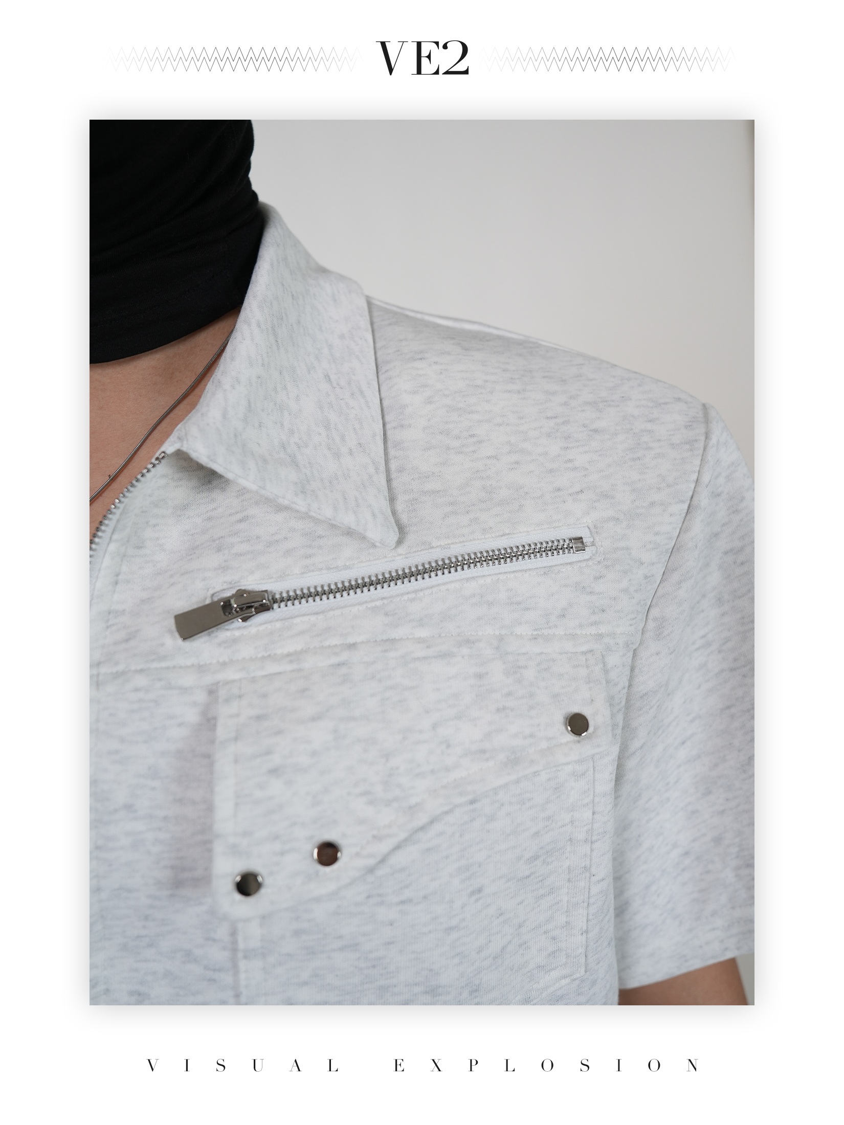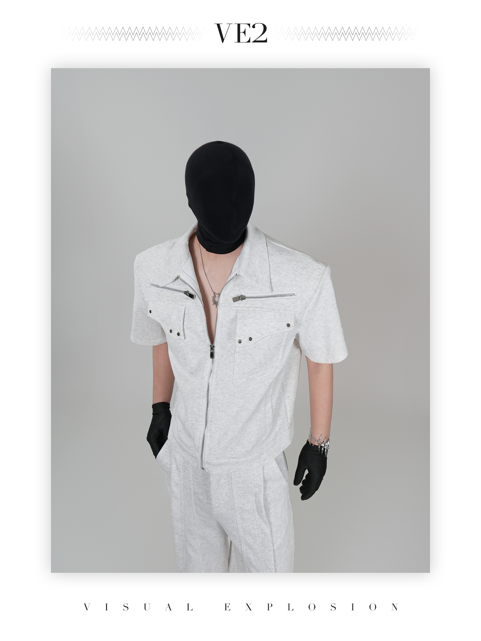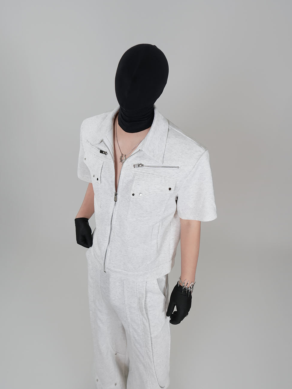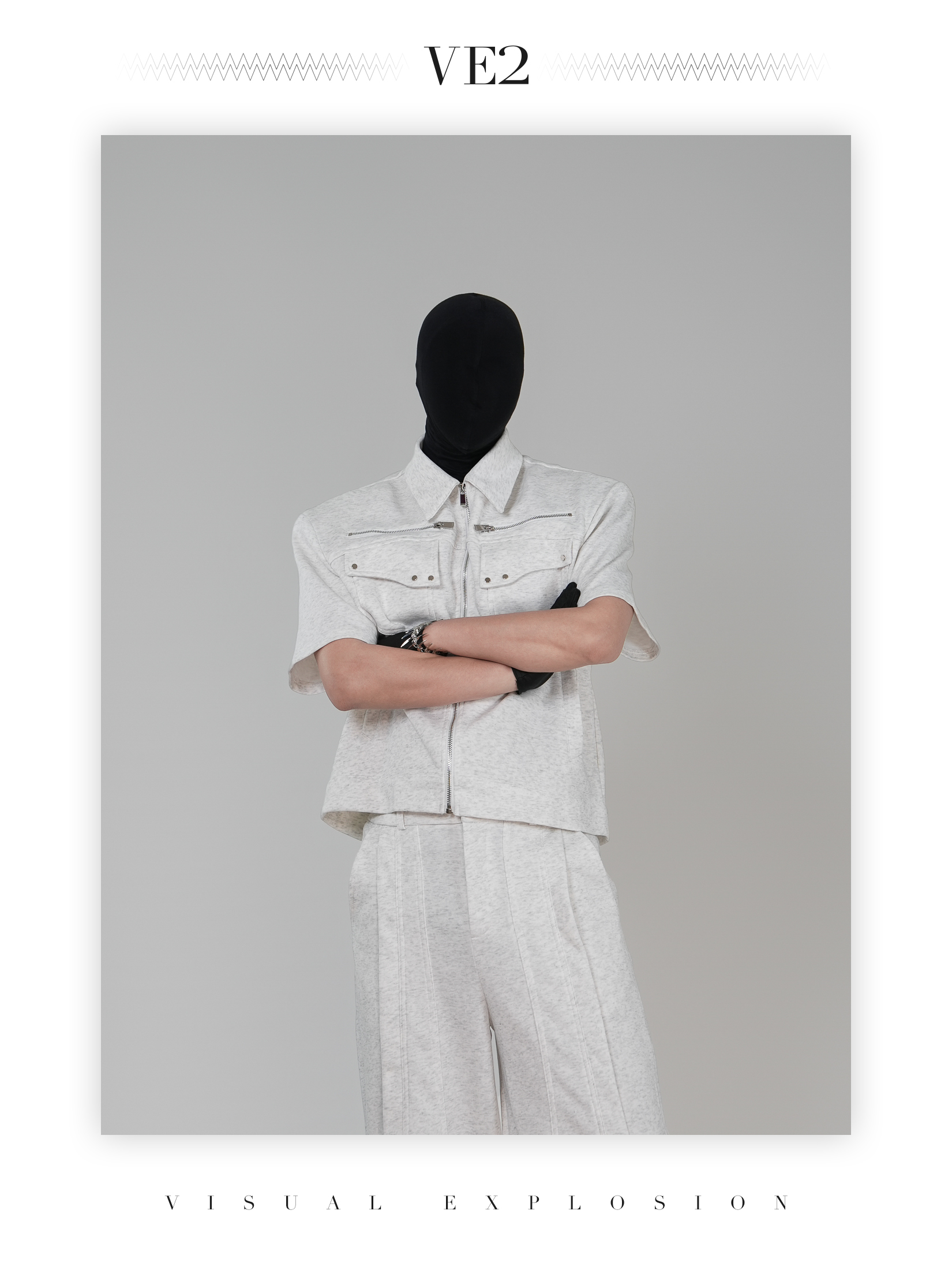 Metal Studs Zipper Jacket & Wide Leg Pants Setup WN17382