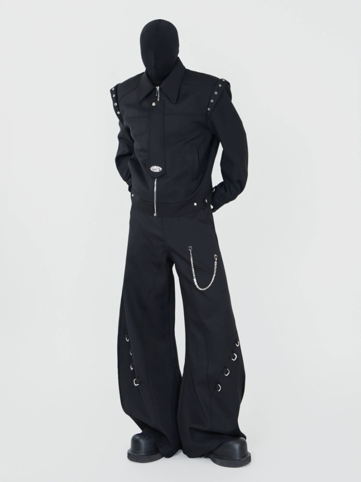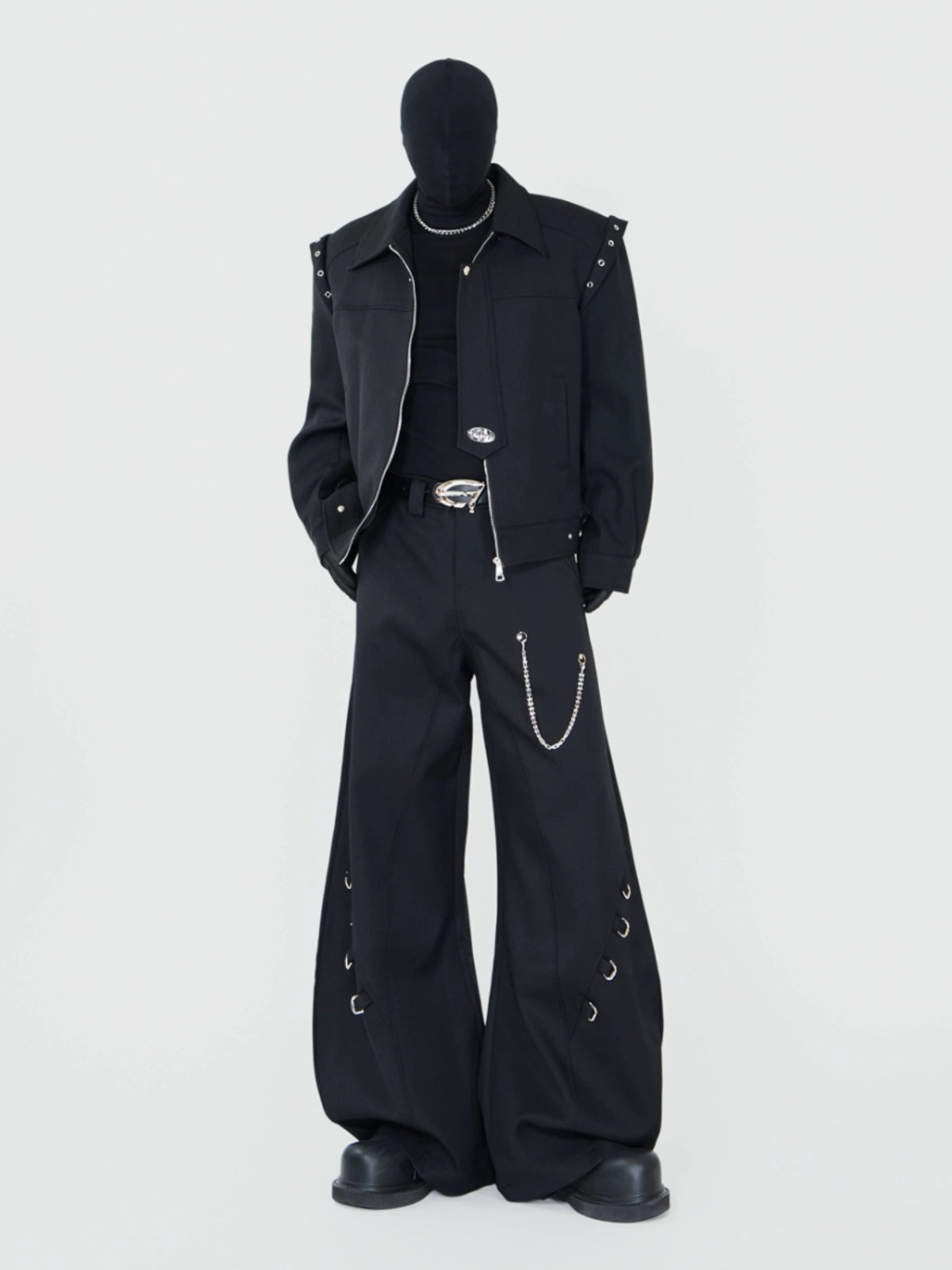 Chain Design Curved Blade Wide Leg Trousers WN17383