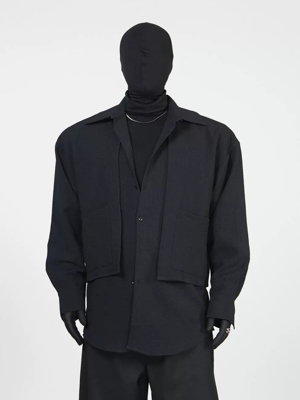 Fake Layered Plain Long Sleeve Shirt WN17407