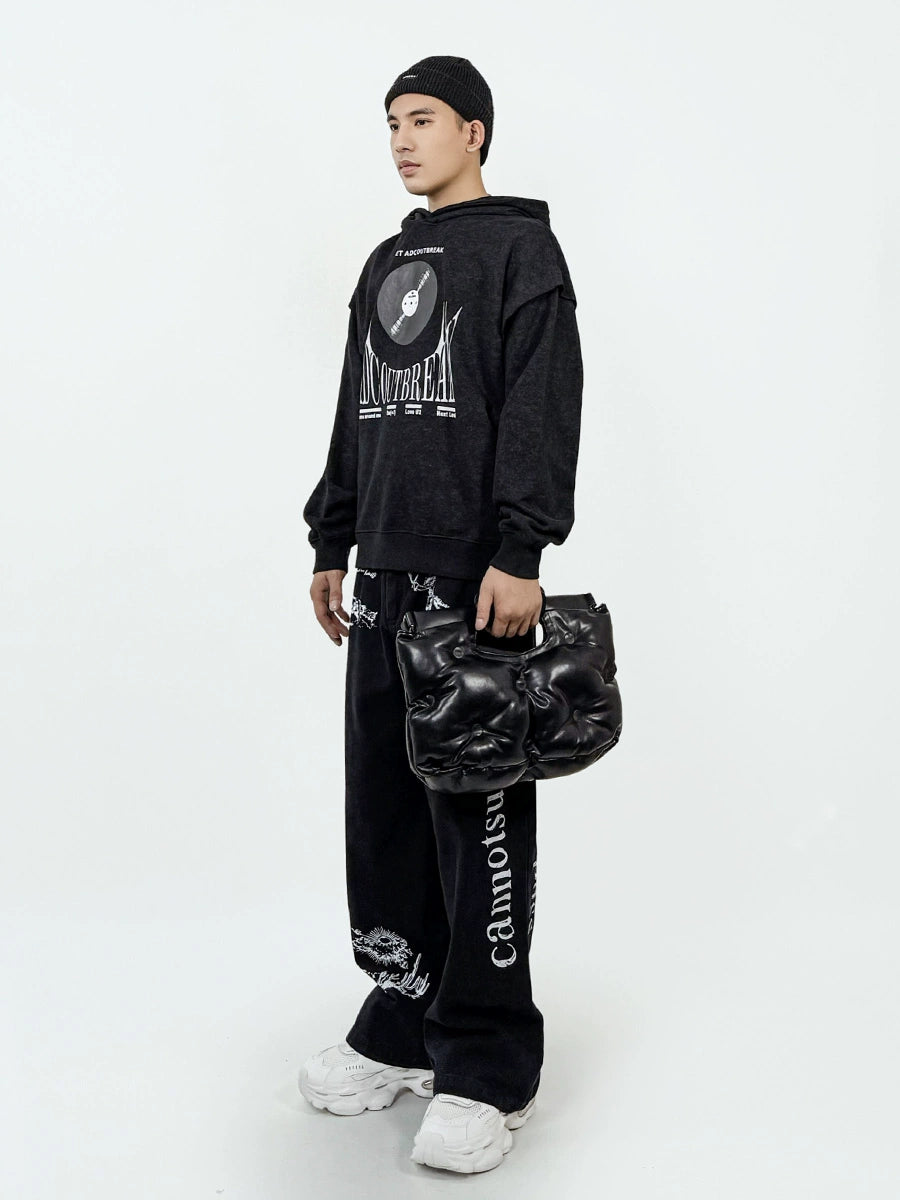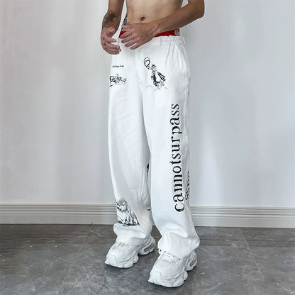 Letter Graffiti Design Drape Straight Denim Jeans WN17450